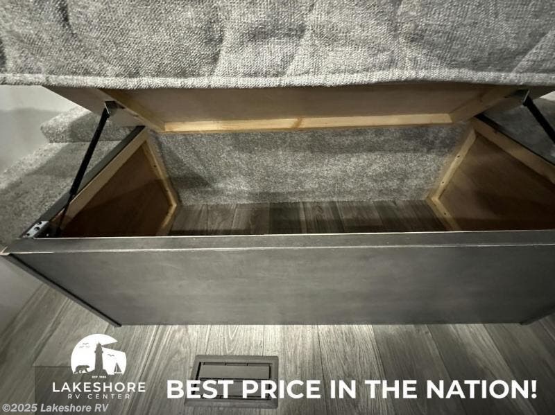 With a king-size bed, this Cougar Half-Ton travel trailer shows that you can still be comfortable even while you're away from home! The bed has wardrobes and nightstands on either side to keep your belongings tidy. There is a convenient shoe cubby right as you enter the unit to keep this space picked up as well. Right next to the booth dinette is the pantry, and next to the pantry is the full bathroom which is certainly one of the most valuable features to any trailer.