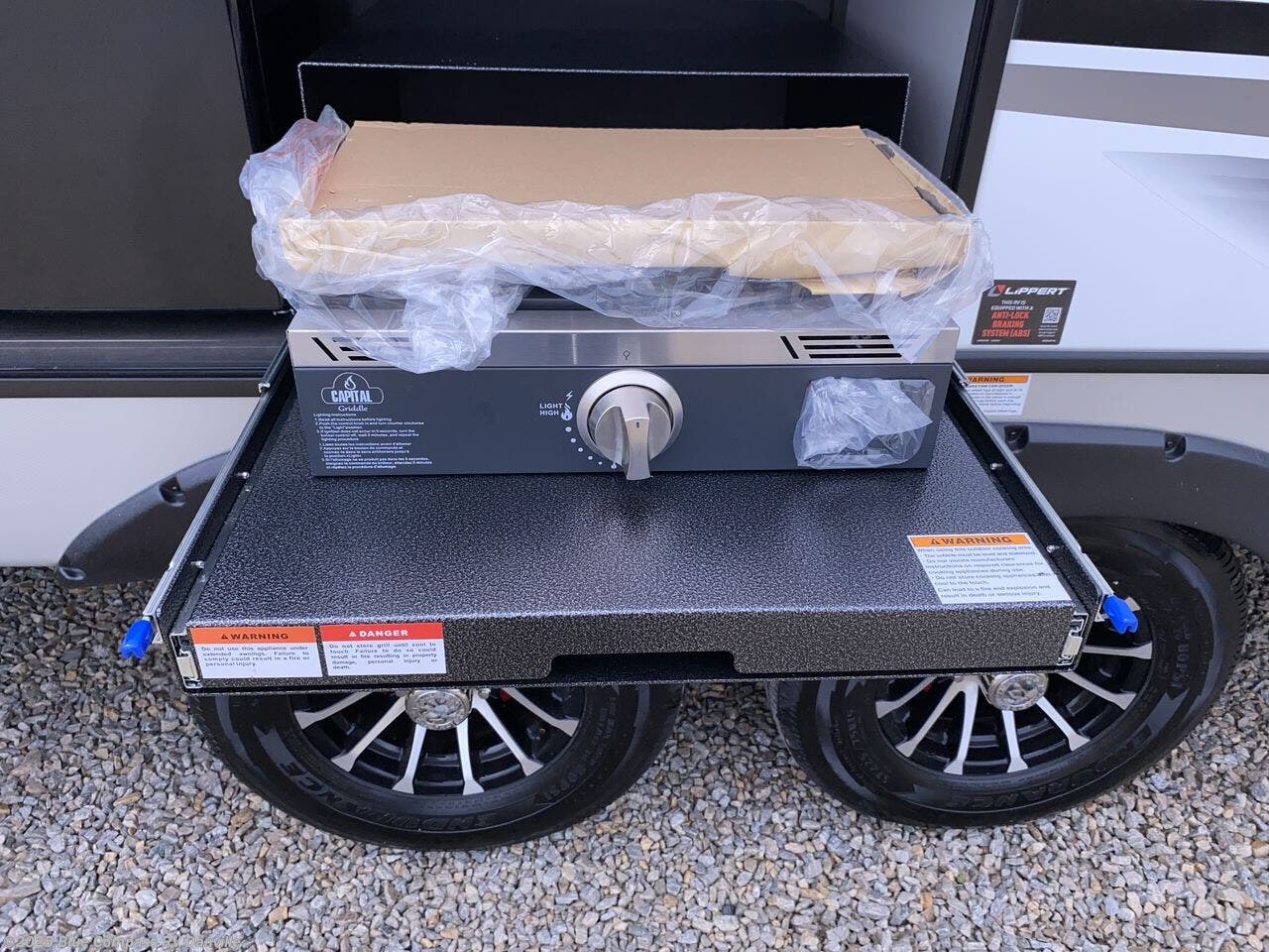 If you could cook outside or inside, which would it be? With this Cougar Half-Ton travel trailer, you get to decide that each time you make a meal. The outdoor grill and mini refrigerator are a great convenience while you play outside, and the interior kitchen pantry is located right next to the main entry door for quick access. You also have a second entry door that is located in the master bedroom, as an added convenience. The main living area offers you plenty of seating and dining space with its 68" tri-fold sleeper sofa and booth dinette. You will surely enjoy sleeping on your own king bed at night and closing the door for privacy when you have overnight guests.