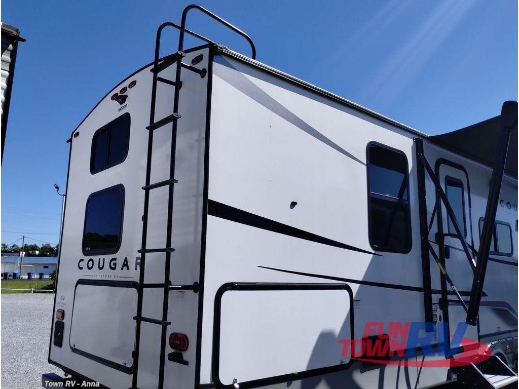 The Keystone Cougar Half-Ton fifth wheel and travel trailers are known as one of America's favorites for a reason! Some of those reasons are the exclusive features that come from Keystone, like the Winegard Air 360+ omni-directional rooftop antenna, the in-floor heating ducts, and the Hyper Deck flooring. The Cougar Half-Ton has a Climate Guard protection package to keep you safe during inclement weather, along with two roof attic vents, PEX plumbing and more. Use the 21" Furrion range with Piezo ignition to create all of those familiar meals from home, and enjoy endless hot showers with the Girard tankless on-demand water heater!