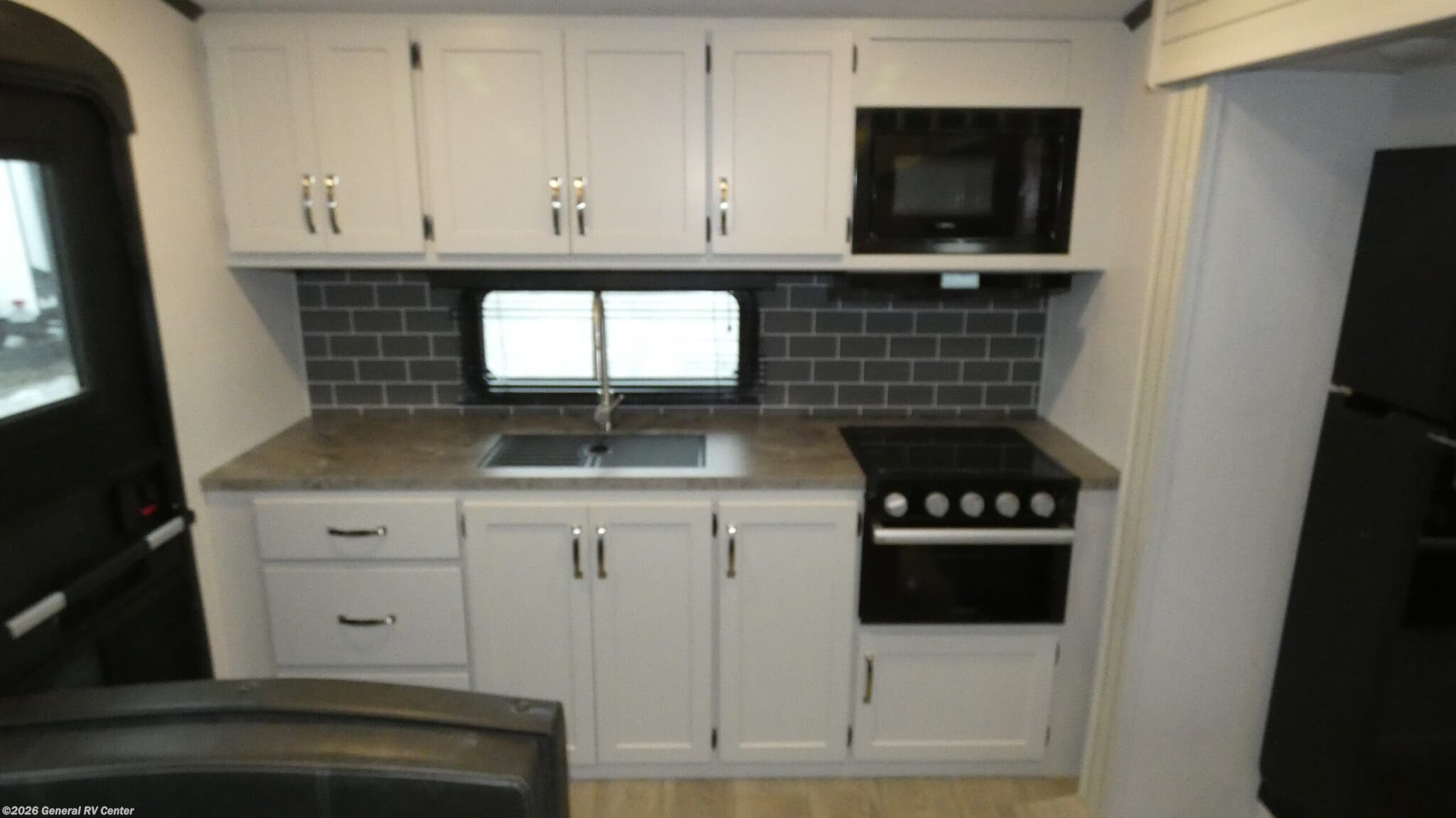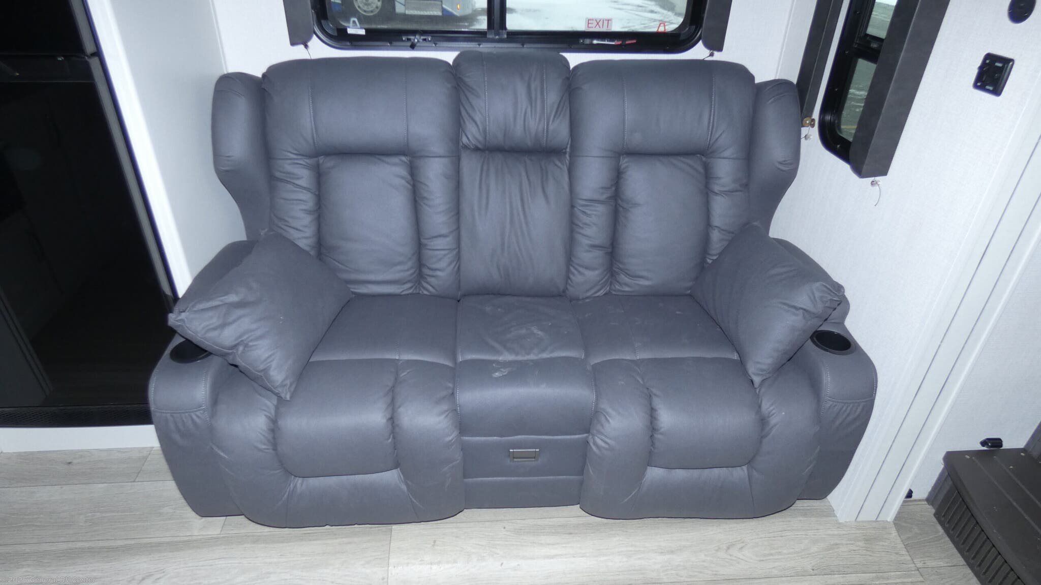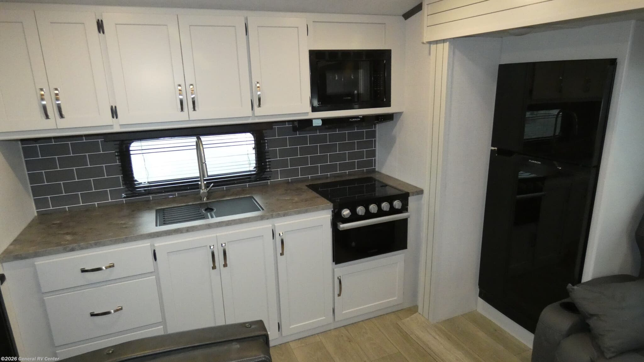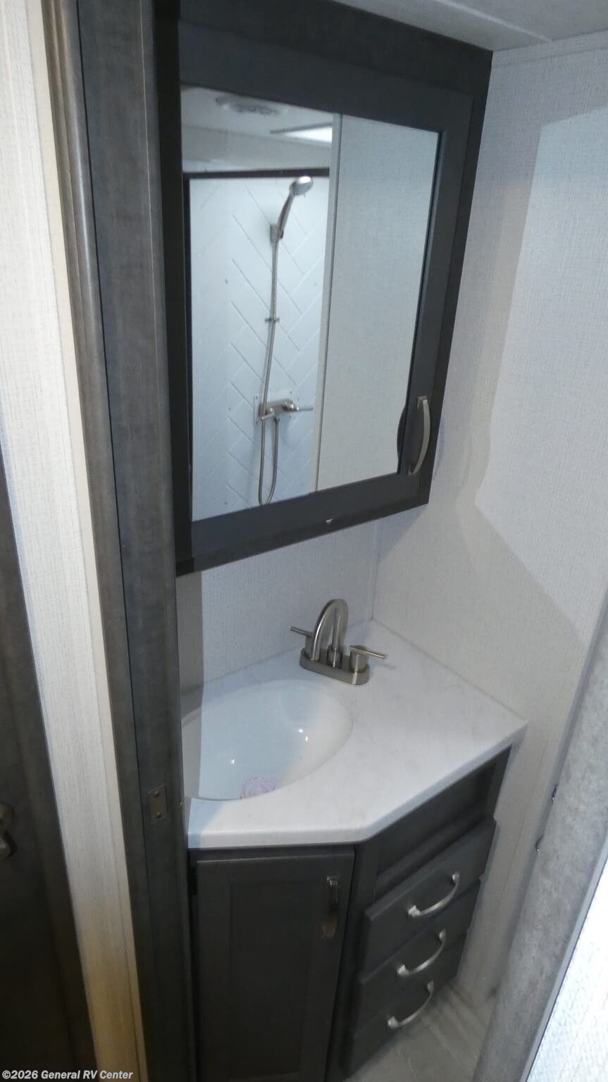 **Keystone Cougar Sport fifth wheel 2100RK highlights:** - Rear Kitchen Layout - Tri-Fold Sofa Sleeper - Private Front Bedroom - 17' Awning - Unobstructed Pass Through Storage Your family of five or six will love traveling in this Cougar Sport lightweight fifth wheel! Enter to find a convenient rear kitchen layout just steps inside the door. Drop your shoes off in the shoe cubby to your right at the door, and relax on either the tri-fold sleeper sofa or at the booth dinette. The sofa and a 12 volt refrigerator are situated within the slide for added roominess. Head up the steps to a complete bath and private front bedroom featuring a queen size bed with dual shirt wardrobes and nightstands on both sides of the bed. There is also a wardrobe off the foot of the bed along the inside wall with two convenient drawers as well. The bathroom offers a shower with a skylight for added headroom and natural lighting. You will also appreciate the medicine cabinet over the sink for your personal items. Back down to the main living and kitchen area, a nice size pantry will hold all of your dry goods and snacks, and there is ample storage in the overhead cabinets above the dinette on either side of the TV, plus in the kitchen area all along the rear wall. Here you can cook your family their camp favorites using either the three burner range with oven, or overhead microwave. Outside, a 17' awning provides added living space protected from the elements! The Cougar Sport structural I-beam frame with stamped steel cross-members and outriggers, plus its laminated sidewalls with five-sided aluminum superstructure and Alpha Super Flex roof membrane are what active RVers love about the construction of the Cougar line. The Cougar Sport models are no exception when it comes to a great package, as well as being smaller and lighter weight than their big brother Cougar models. A one-piece, heated and enclosed polypropylene underbelly means a longer camping season. On the inside, residential shaker style hardwood cabinet doors and decorative crown molding, plus seamless pressed countertops and an on-demand water heater will make your unit feel even more like home. You are also sure to appreciate the shiplap style decorative accent wall behind the bed, a porcelain foot flush toilet in the bathroom, plus residential kitchen hardware, and so much more.