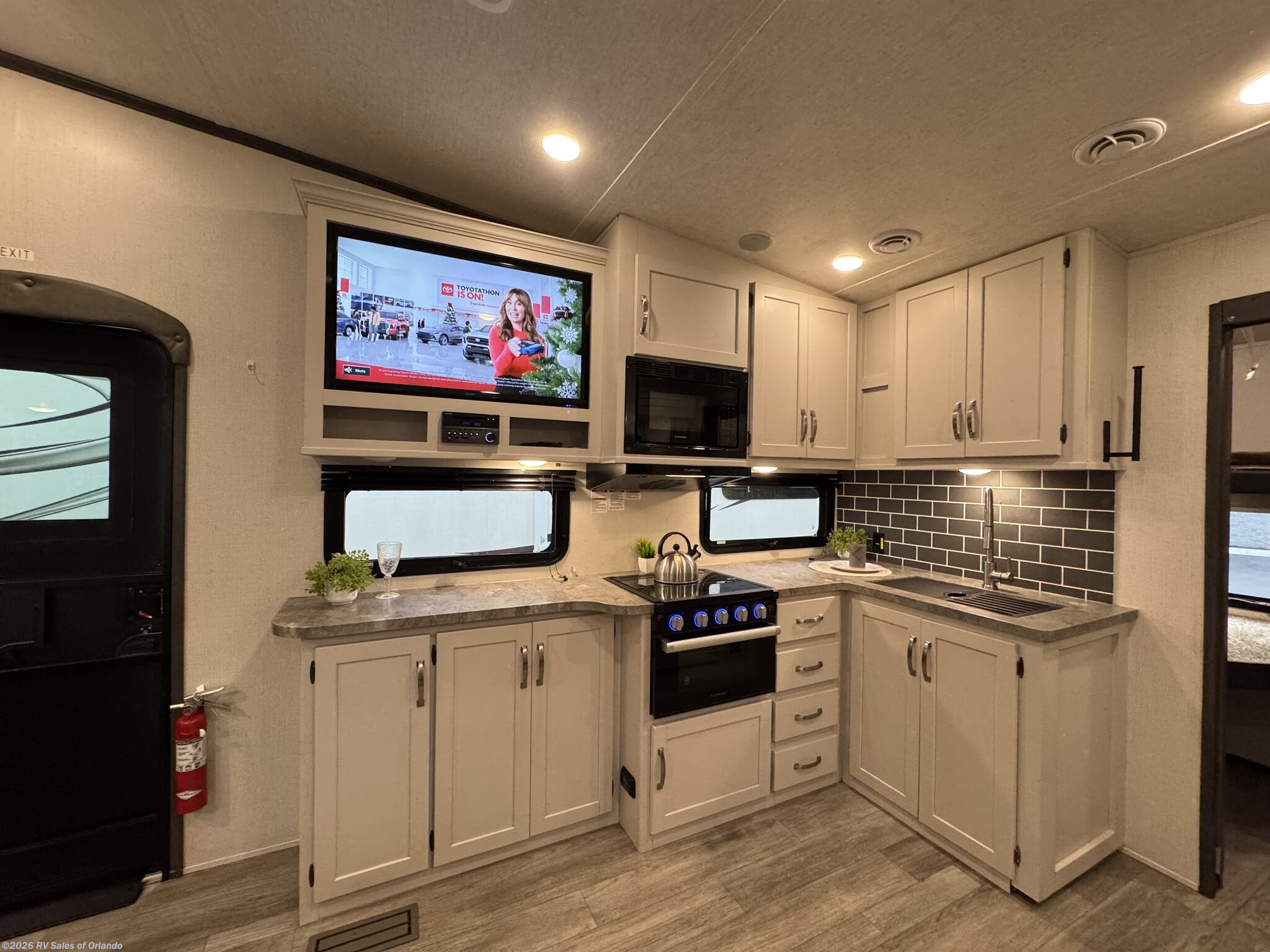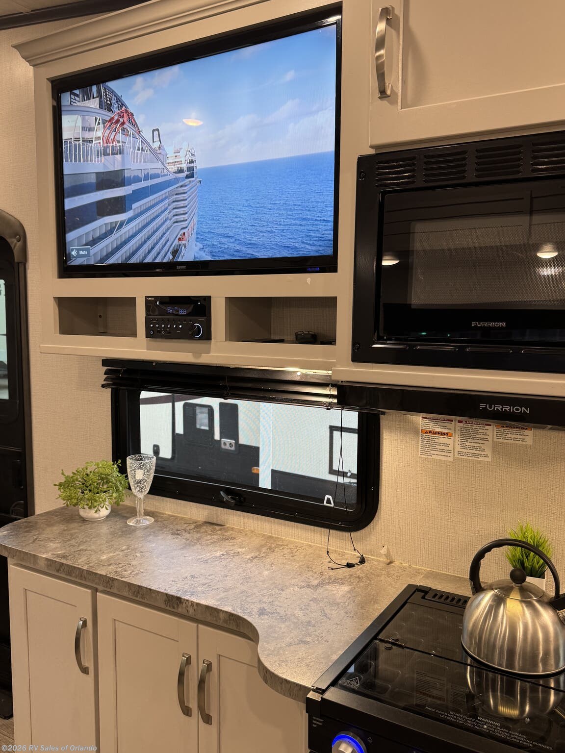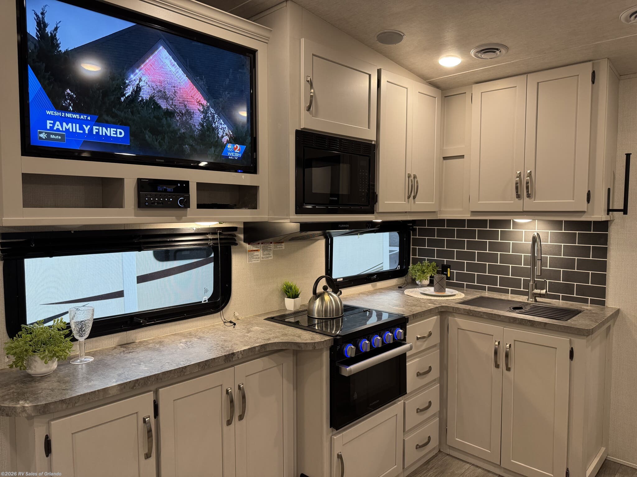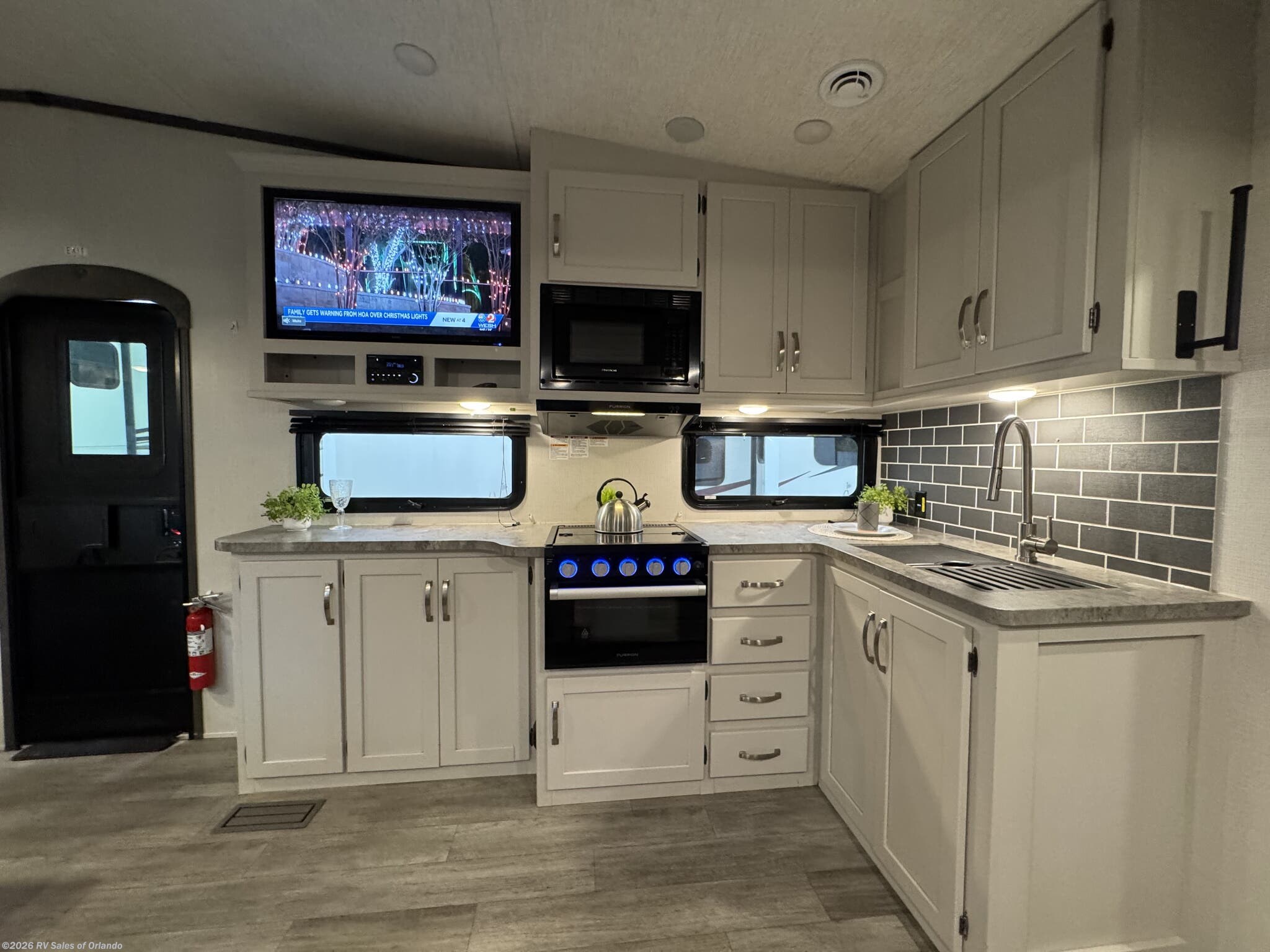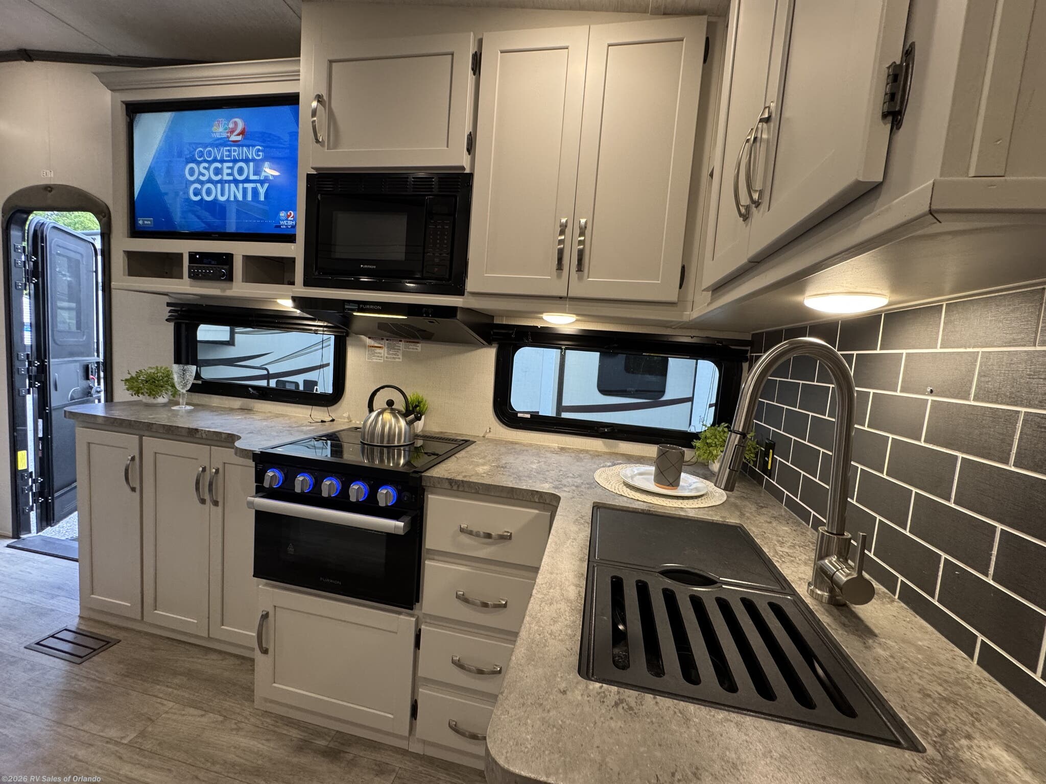 - Outdoor Space: Features a 20-foot electric awning with LED lighting and an outdoor kitchen