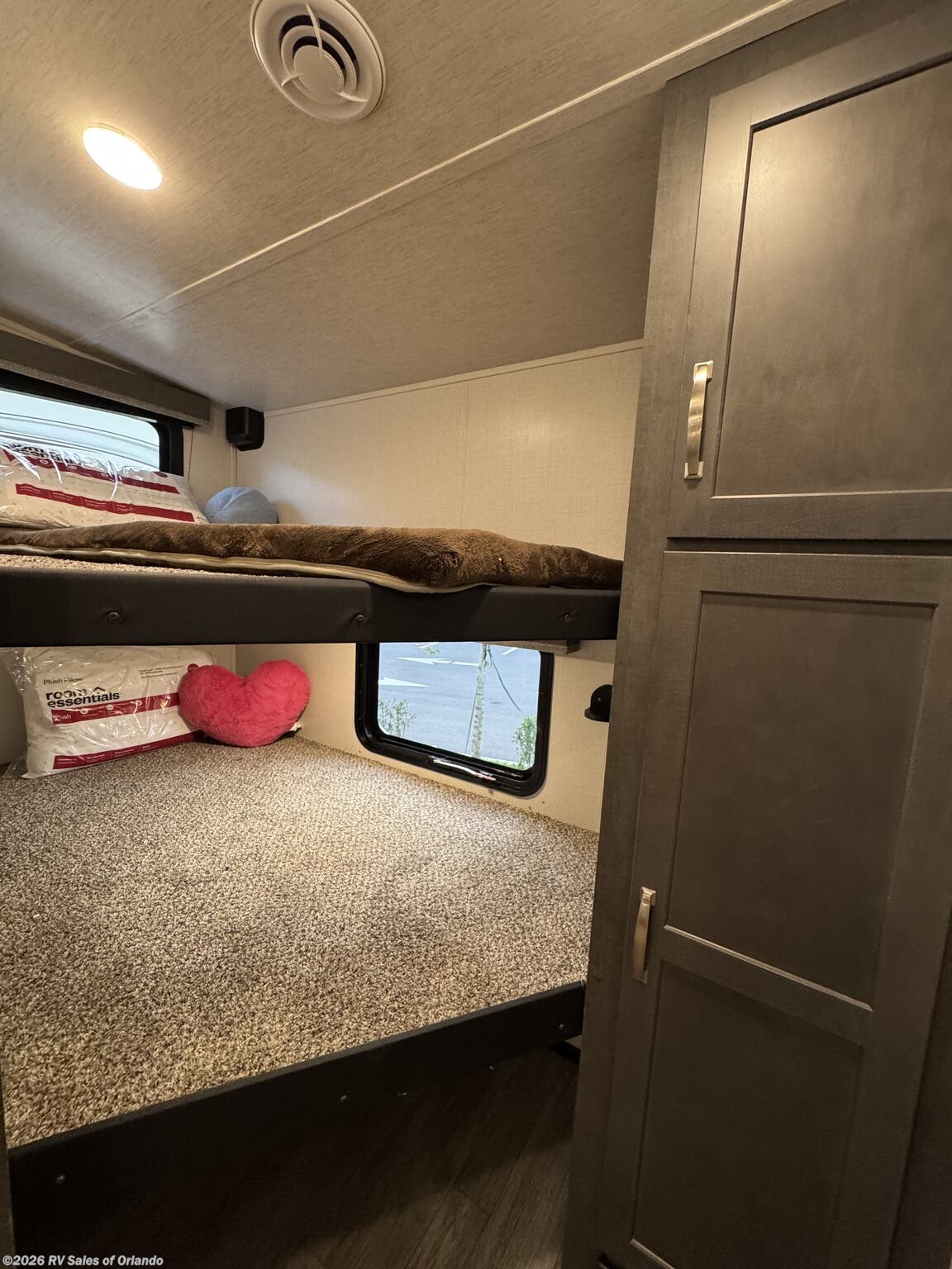 - Bunkhouse: A dedicated rear bunk room featuring triple bunks. Privacy door! Built in closet!
