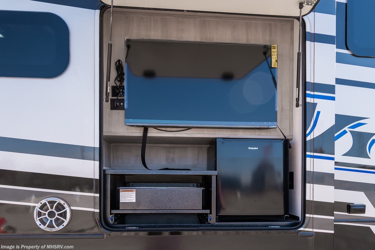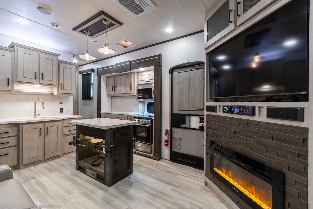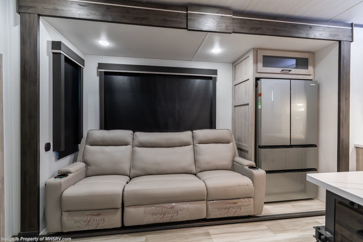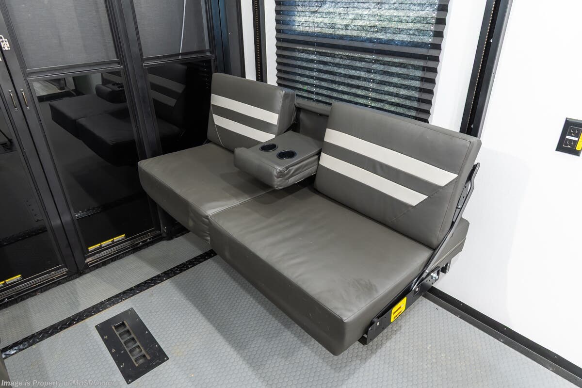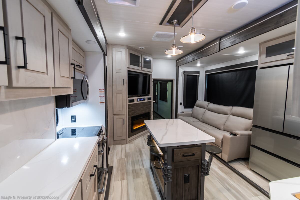 Used Keystone 5th Wheel for sale – 2024 Keystone Fuzion M427 is approximately 45’ 6” feet in length, 3 slides and features lippert hydraulic leveling system, aluminum wheels, full body paint, 3 camera system, 3 A/C's, gas generator, patio awning, door awning, pass through storage, LED running lights, docking lights, black tank flush, water filtration system, exterior shower, exterior TV, ladder, solar, inverter, leather seating, combination washer/dryer, central vacuum, 7 foot ceiling, dual pane windows, fireplace, multi-plex control panel, hardwood cabinets, convection microwave, residential refrigerator with ice maker, 3 burner gas range with oven, bath and a half, theater seats and much more. For more details on this unit, our full inventory, brochures, window stickers, videos, photos, and customer reviews, visit or call 800-335-6054 for the Texas location or 334-288-0331 for our Alabama location. At Motor Home Specialist, we DO NOT charge any prep or orientation fees like you will find at other dealerships. Read Thousands upon Thousands of 5-Star Reviews at and See What They Had to Say About Their Experience at Motor Home Specialist. WHY PAY MORE? WHY SETTLE FOR LESS?
