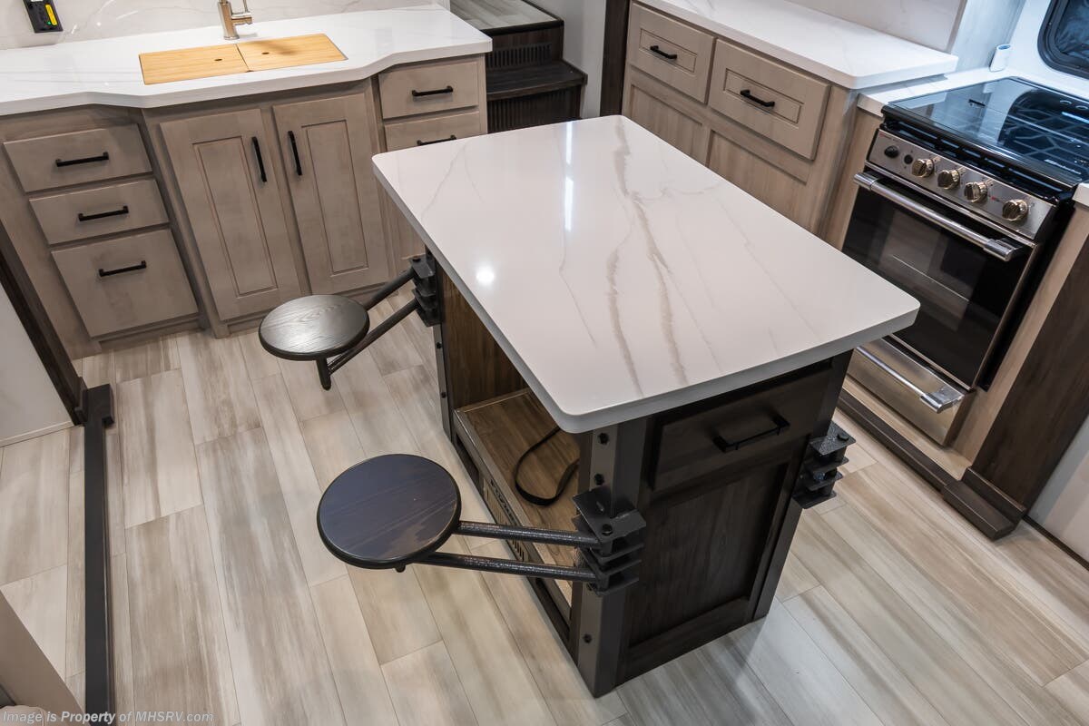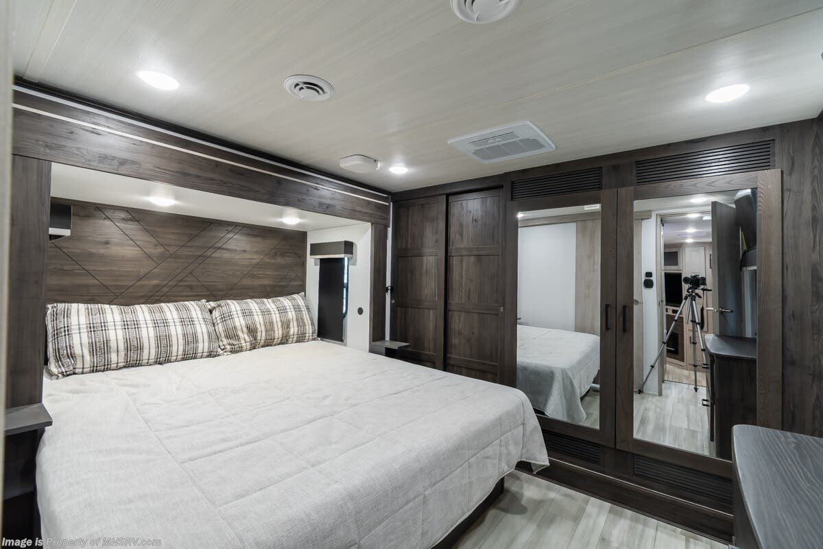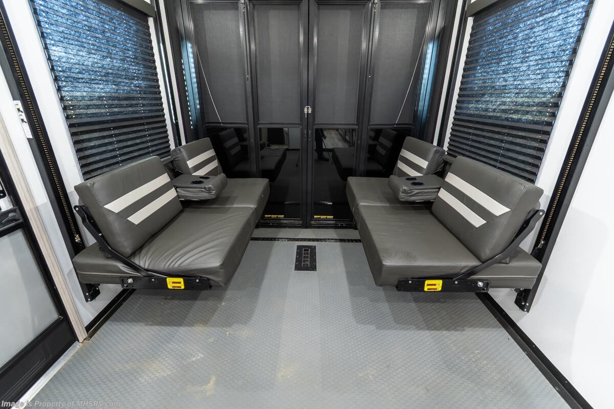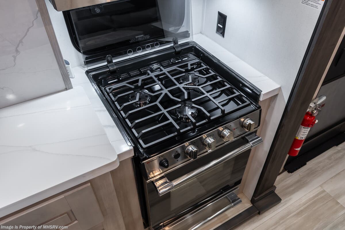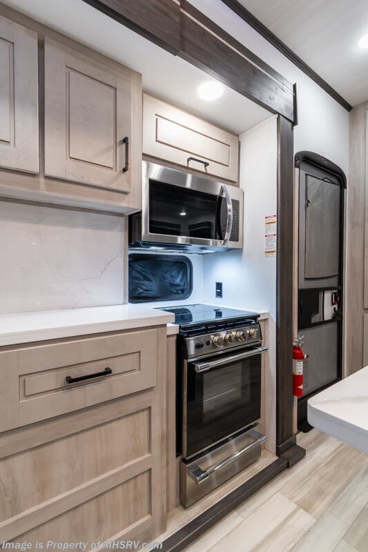 Used Keystone 5th Wheel for sale – 2024 Keystone Fuzion M427 is approximately 45’ 6” feet in length, 3 slides and features lippert hydraulic leveling system, aluminum wheels, full body paint, 3 camera system, 3 A/C's, gas generator, patio awning, door awning, pass through storage, LED running lights, docking lights, black tank flush, water filtration system, exterior shower, exterior TV, ladder, solar, inverter, leather seating, combination washer/dryer, central vacuum, 7 foot ceiling, dual pane windows, fireplace, multi-plex control panel, hardwood cabinets, convection microwave, residential refrigerator with ice maker, 3 burner gas range with oven, bath and a half, theater seats and much more. For more details on this unit, our full inventory, brochures, window stickers, videos, photos, and customer reviews, visit or call 800-335-6054 for the Texas location or 334-288-0331 for our Alabama location. At Motor Home Specialist, we DO NOT charge any prep or orientation fees like you will find at other dealerships. Read Thousands upon Thousands of 5-Star Reviews at and See What They Had to Say About Their Experience at Motor Home Specialist. WHY PAY MORE? WHY SETTLE FOR LESS?