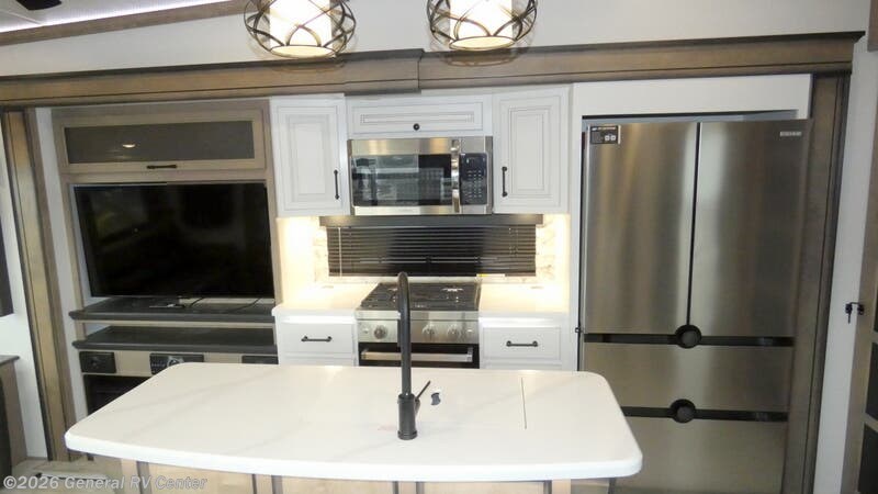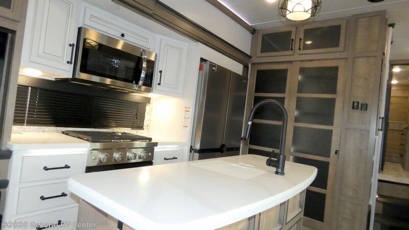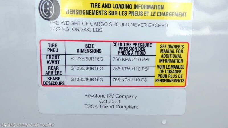 Experience the ultimate in luxury and comfort with the 2024 Keystone Montana 3123RL. This fifth wheel is designed to be your home away from home, offering a spacious and inviting environment for your adventures. With a length of just over 35 feet, the Montana 3123RL provides ample space for relaxation and entertainment. The rear living area is perfect for unwinding with its cozy power theatre seating and an inviting fireplace, making it an ideal spot to enjoy the evening after a day of exploration. The center kitchen is a chef's delight, featuring a full-size electric refrigerator, convection microwave, and a three-burner cooktop, ensuring you can whip up your favorite meals with ease. The front bedroom is a sanctuary of comfort, equipped with a king-sized bed and plenty of storage options, including a dresser and a closet. It's also prepped for a washer and dryer, adding convenience to extended stays. The dual awnings provide generous outdoor living space, perfect for enjoying the fresh air or hosting gatherings. With a substantial fresh water capacity of 70 gallons and a powerful 50-amp electrical service, this RV is ready for any adventure you throw its way. Visit your nearest General RV dealership to explore the 2024 Keystone Montana 3123RL and elevate your travel experience.