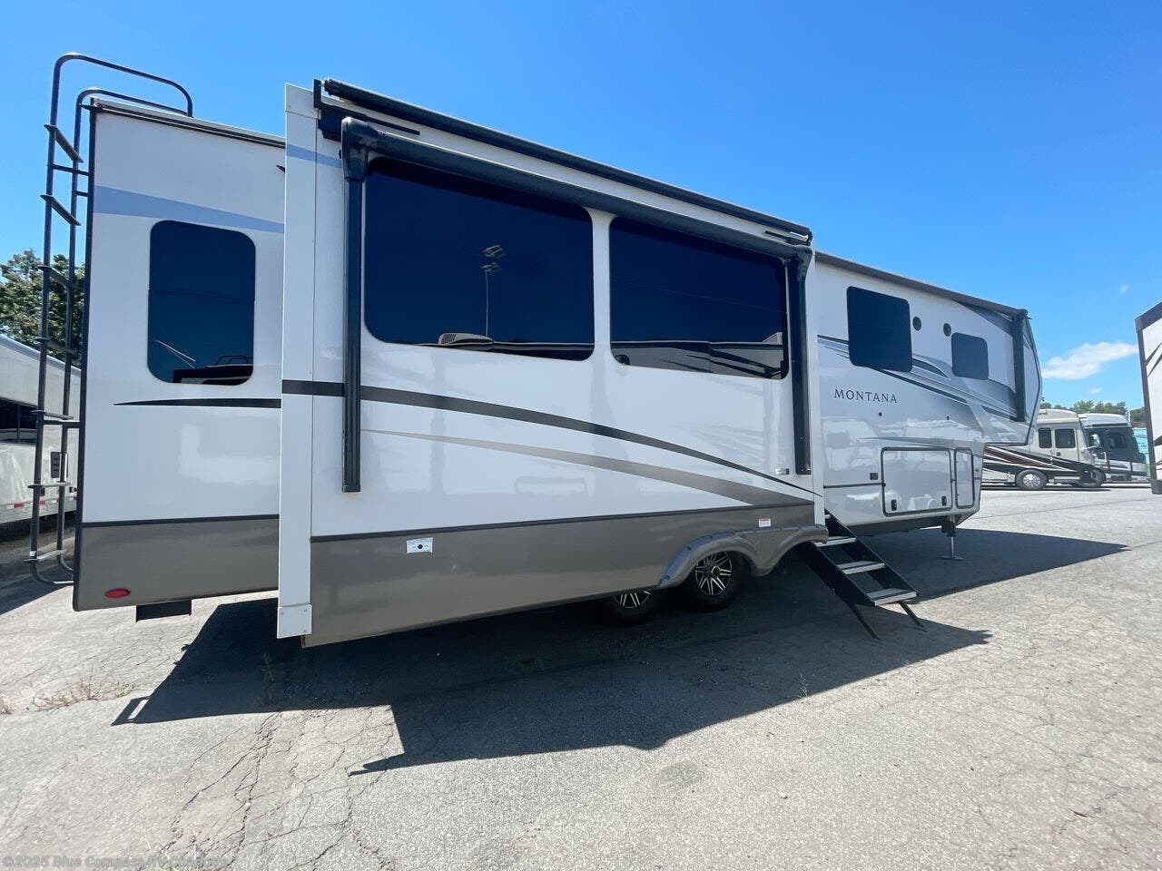 Enjoy luxury, innovation, and the outdoors in any one of Montana's finest fifth wheels. Each set the standard with exceptional features, and exciting factory installed options to provide you a great home on the road. Keystone's exclusive 12" I-beam chassis with z-frame technology has been reengineered to be stronger, lighter and built for "the long haul". A few other construction features you will appreciate include a Road Armor suspension, 2" thick, dual-layered lauan high gloss fiberglass sidewalls, a MaxTurn front cap with KeyShield automotive-grade paint, and a fully walkable roof with an Alpha seamless TPO membrane system. Each feature stylish interiors with two new decor choices paired with beautiful hand-glazed hardwood cabinetry, vinyl flooring throughout, central vacuum, plus a Blade Pure airflow system for clean, quite, and cool air!
