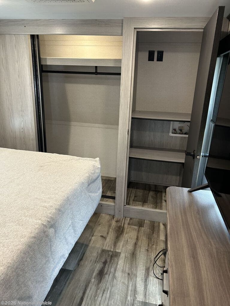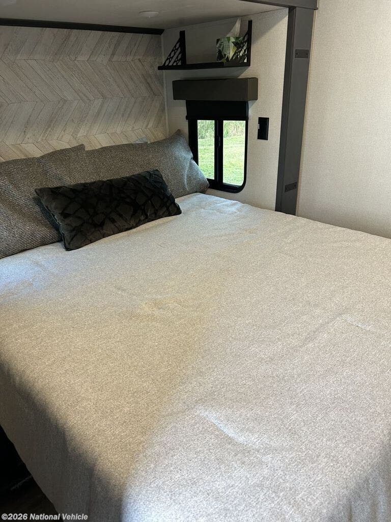 The primary bedroom offers a true retreat with a king bed and memory foam topper, USB charging ports, CPAP shelves, and washer/dryer prep. The second bedroom provides additional sleeping space and privacy, making this floorplan ideal for families or guests.