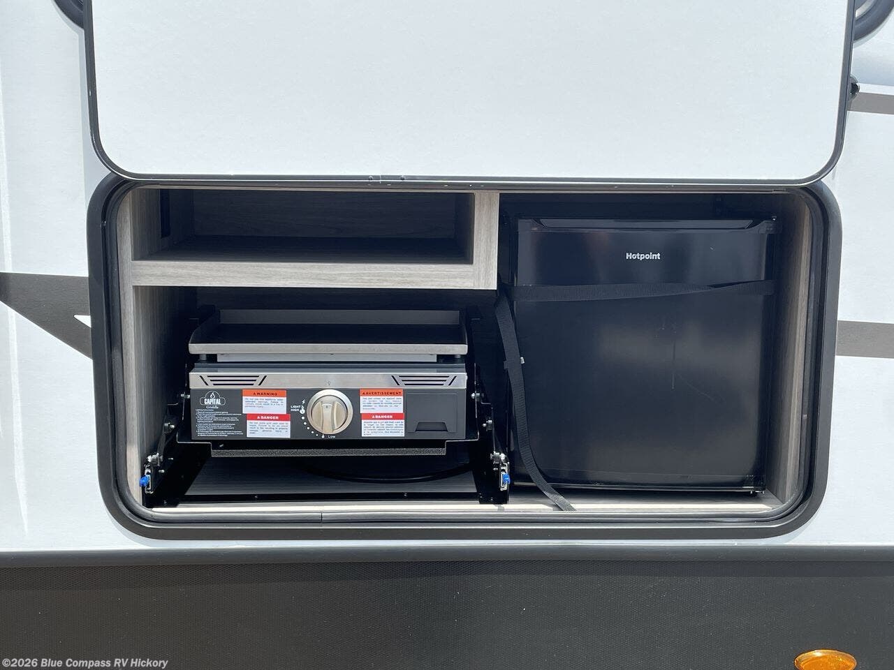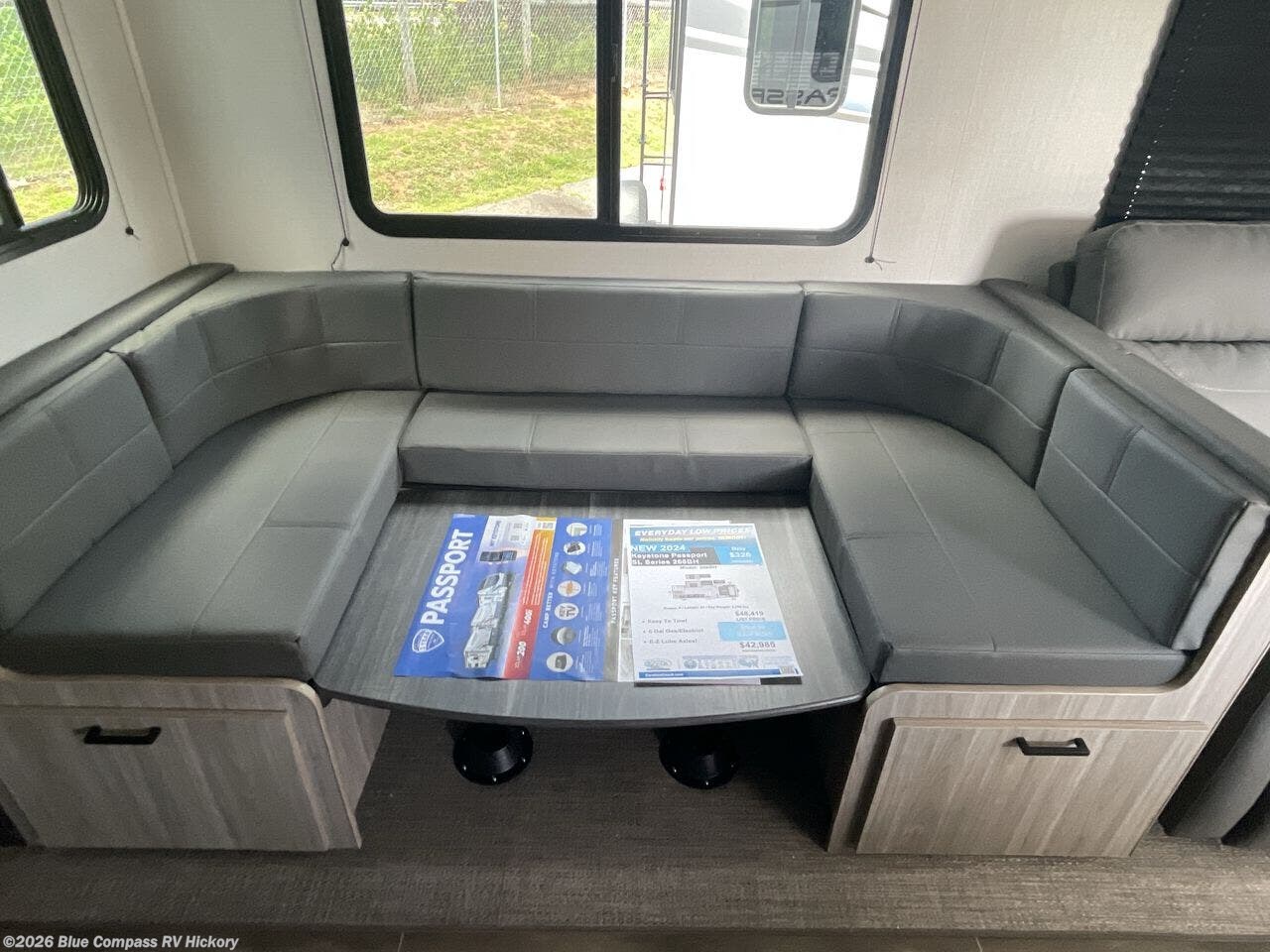 Let your days turn into weeks and your weeks turn into months with this Passport SL travel trailer! You can keep all of your gear stored effortlessly in the rear cargo door and the front pass-through storage compartment, and the interior also offers some storage space with the bedside wardrobes and large kitchen pantry or utilize this space as a wardrobe. You also have plenty of space to keep your perishable foods from spoiling with the interior 10 cu. ft. 12V refrigerator and in the exterior refrigerator in the outside kitchen. The tri-fold sofa sleeper and U-shaped dinette will provide you with some extra sleeping space so that you can invite friends or family to join you, and the full bathroom is going to keep everyone clean.