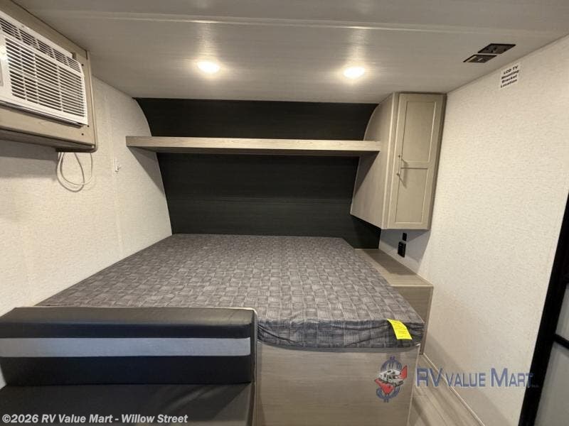 Get ready for outdoor fun with your favorite people when you have this trailer in tow! Once at your campsite, you can easily setup the 10' power awning, grab your camping chairs from the pass-through storage, and relax or start playing. The cook will love the galley kitchen with the two burner cooktop and microwave oven, plus a refrigerator for cold items. If you like, you can eat inside at the booth dinette which doubles as sleeping space, and of course the kids will love the bunk beds next to the full bathroom. And you will sleep soundly on the front queen bed.