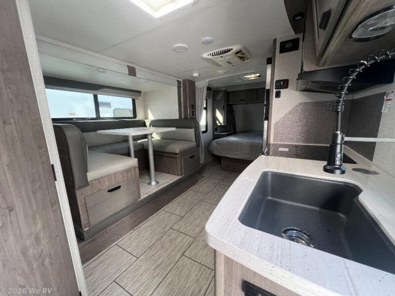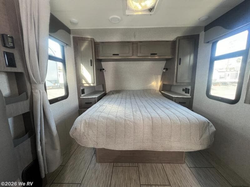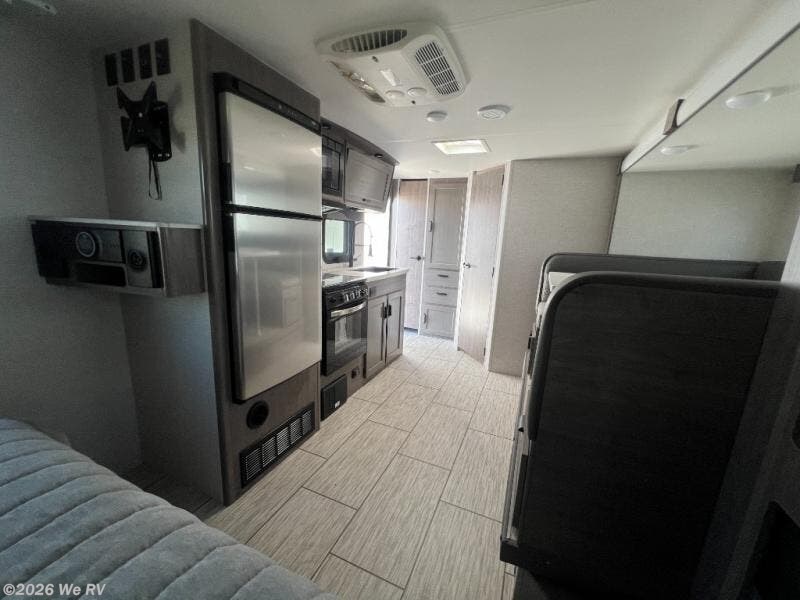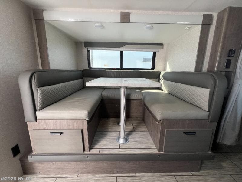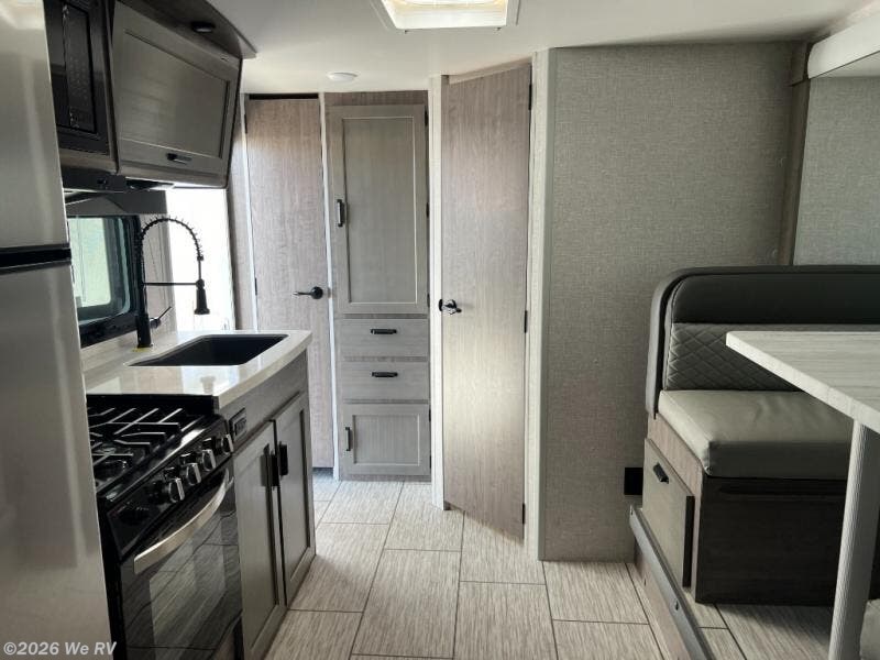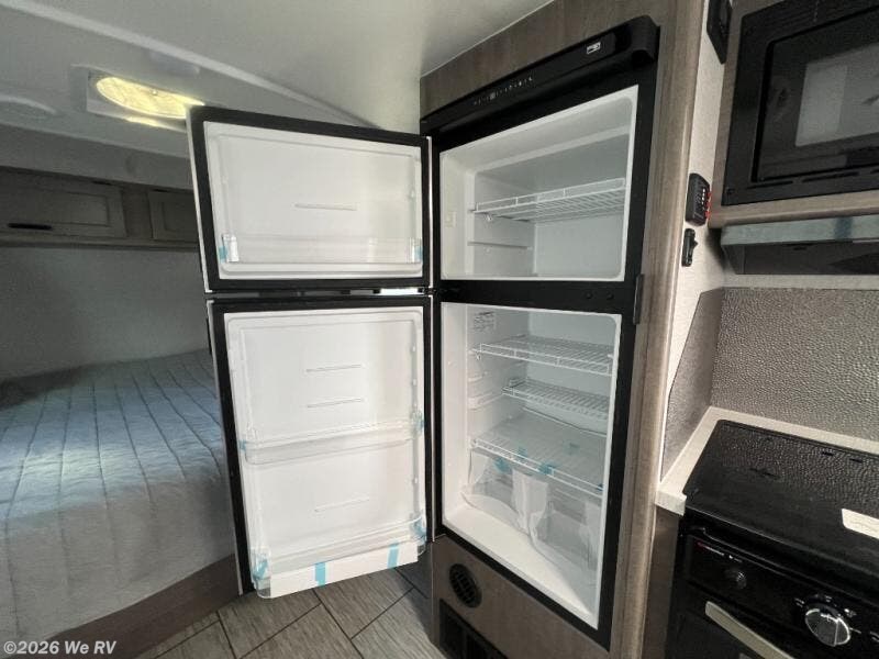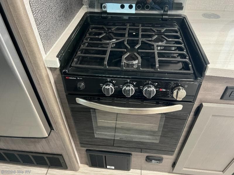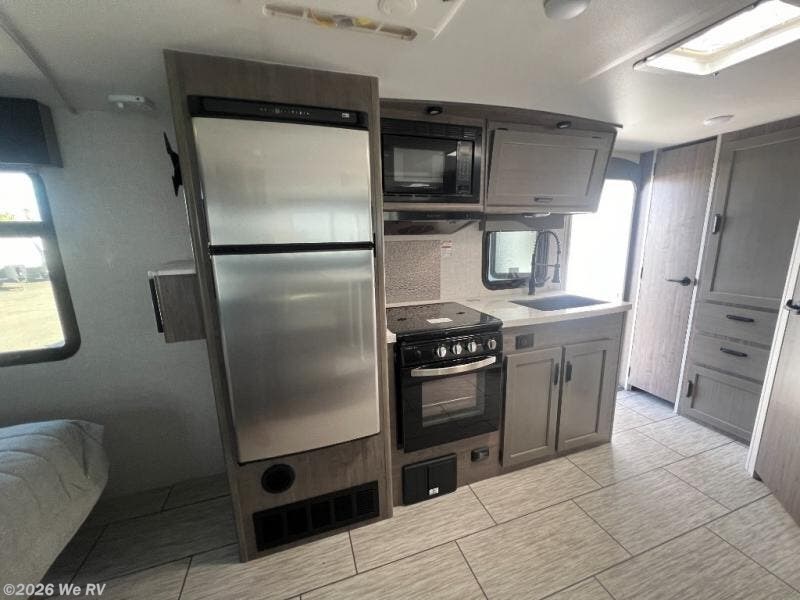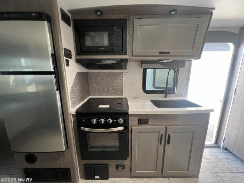 This travel trailer will be perfect for all your many camping excursions. You will enjoy having a walk-around queen bed up front with dual bedroom wardrobes on either side of the bed plus LED reading lights so you can stay up late with your book. A U-shaped dinette slide provides a place to dine and play games, and this can also double as sleeping space for guests. Having a full bath onboard means you won't have to use the camp's facilities at night, and the dual pane bath skylight will provide more natural light and extra headroom. When you've worked up an appetite, the galley includes a stainless steel three burner range with a black glass cover to cook meals and an 8 cu. ft. 12V refrigerator to keep leftovers fresh.