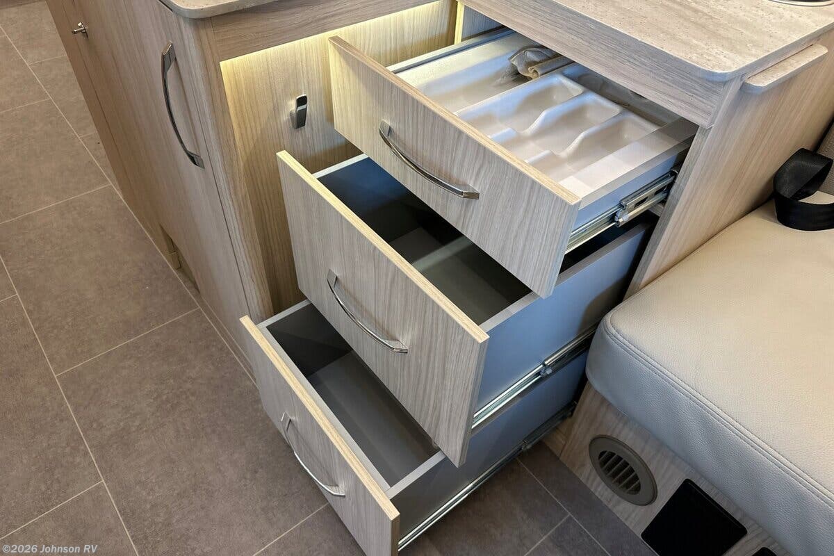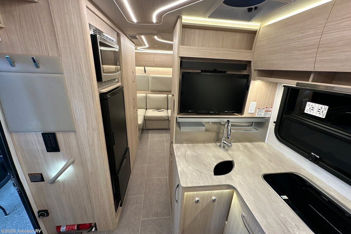Introducing the 2024 Leisure Travel Vans Unity 24RL – a versatile and stylish Class C RV that combines luxury, comfort, and advanced technology for the ultimate travel experience. ?? Built on the dependable Mercedes-Benz Sprinter 3500 chassis, this RV boasts a sturdy design with dual rear wheels and a 170-inch wheelbase, powered by a robust MB 2.0L I-4 Turbo Diesel Engine delivering 208 HP and 332 lb-ft of torque. The 9G-Tronic automatic transmission and electronic stability control ensure a smooth and reliable drive. Safety and security features include: - Active Braking Assist - Adaptive Cruise Control - Collision Prevention Assist - Crosswind Assist - Lane Keeping Assist - LED Headlamps with High Beam Assist - Rain Sensing Wiper Assist - Traffic Sign Assist Inside the cab, you'll find a range of high-end amenities: - Power heated Ultra-Fabrics seats with lumbar support - MBUX touchscreen multimedia system with smart phone integration - Leather wrapped multi-function steering wheel - Rear-view camera and digital rearview mirror for enhanced visibility The living quarters are designed for comfort and relaxation: - Tile-look vinyl flooring and soft vinyl ceiling headliner - A full power wind sensor awning with LED lights and a retractable entry step - Rear sofa with two recliners and soft-close hidden catch cabinet doors - Ample overhead storage with curved cabinets and recessed LED strip lighting The kitchen and dining areas are equipped with: - Booth Dinette and the Leisure Lounge System Dinette - Contoured Corian countertops with an extension - Stainless steel undermount sink and backsplash - 6.2 cubic feet compressor refrigerator/freezer and LP cooktop - Convection microwave oven and power fan Explore technology and entertainment with: - Multiplex wiring control system and satellite dish pre-wiring - USB-A and USB-C outlets, TV antenna, and mobile data/WiFi extender The bathroom is thoughtfully designed with practicality and style: - Curved glass shower door and shower skylight - Ceramic toilet with foot flush and macerator - Medicine cabinet and integrated shower storage Mechanically, the Unity 24RL is built for efficiency and convenience: - 3000w pure sine inverter and 150-amp battery charger - Truma Aventa Eco AC and Truma AquaGo Comfort Plus hot water system - Black tank flush and outdoor shower for an enhanced outdoor experience Finally, the Unity 24RL's coach build offers: - Vacuum-bonded aluminum framed and fiberglass exterior and roof - Lighted storage compartments and pass-through storage - Slide topper awning and contoured fiberglass cargo doors This 2024 Leisure Travel Vans Unity 24RL is perfect for those who seek both adventure and luxury on the road, providing a seamless blend of technology, style, and comfort. ???