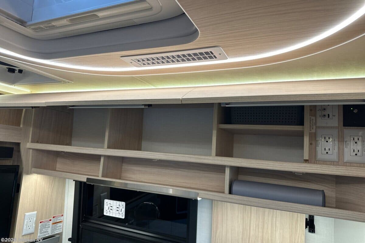 Features Include: 170-inch Wheelbase, 250-Amp Alternator, Wheel Simulators, Dual Rear Wheels, Crosswind Assist, Lane Keeping Assist, Recline, Swivel, Rear-View Camera, Awning LED Lights, Entry Screen Door, LED Aisle Lighting, Awning-Style Windows, Roller Shades, Booth Dinette (CB), Pull-Out Pantry, Garbage Can (vbm), 120v GFCI Outlet, Power Fan, USB-A, USB-C Outlets, Medicine Cabinet, 120v GFCI Outlet, Shower Skylight, Flip-Down Towel Bar, Ceramic Toilet, Surge Protector, 19k Furnace (RL, RTB), Water Heater Bypass, Black Tank Flush, Fiberglass Exterior, MBL)