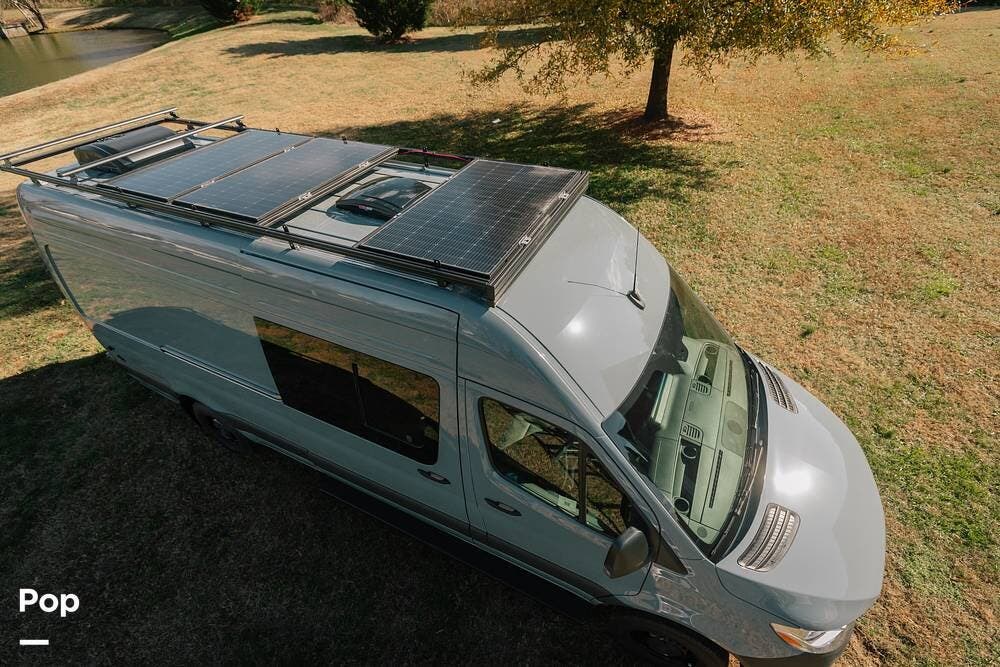 This custom Mercedes is road-ready and outfitted with solar panels on the roof for off-grid adventures.