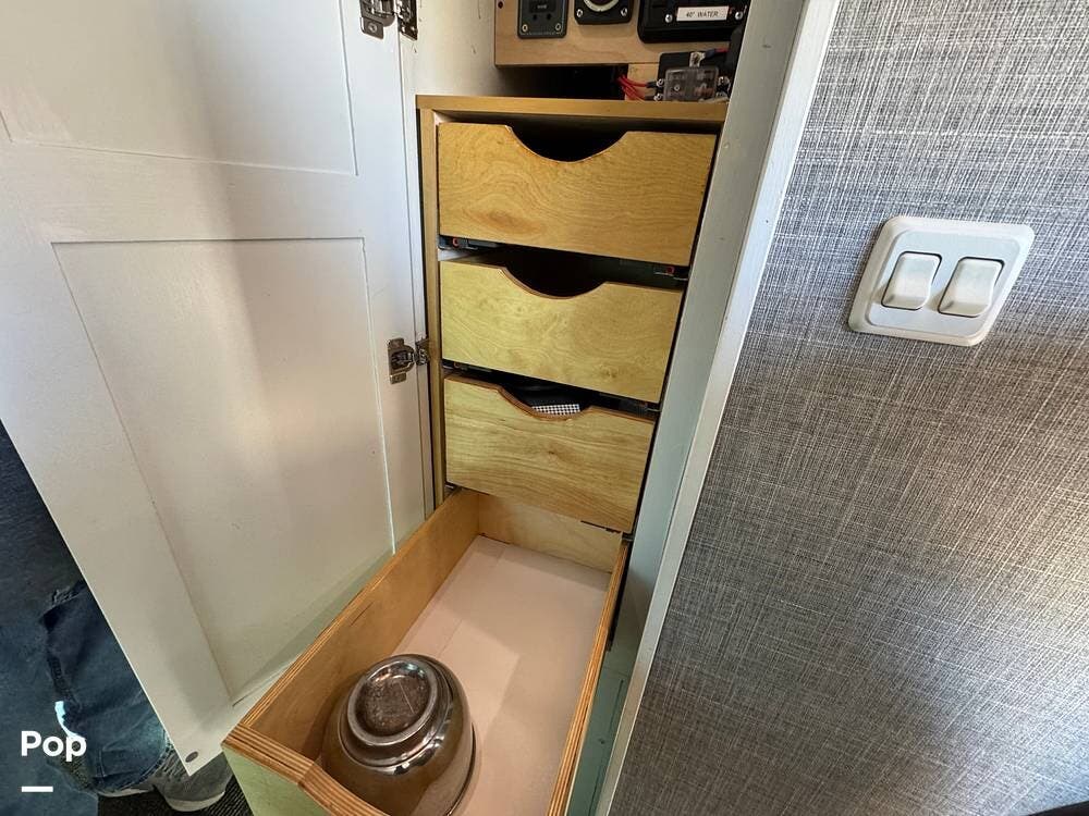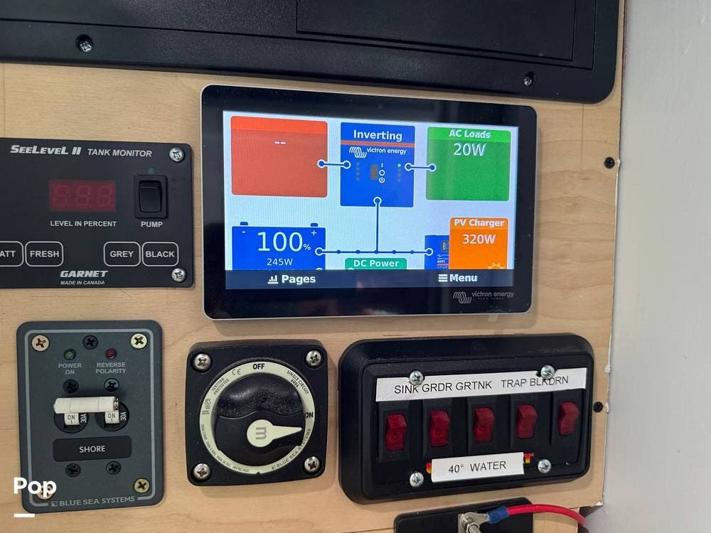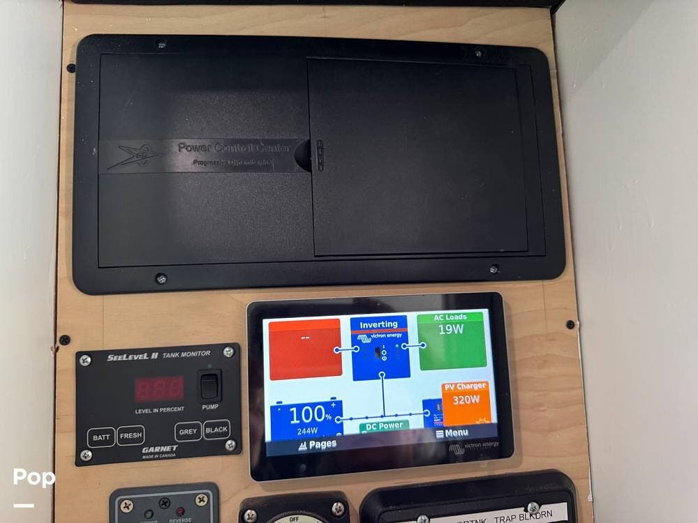 Fresh water 30 gal, gray water 22 gal, and 18 gal black tank. 13500 Houghton Ac with Rixen's MCS7 hydronic furnace and hot water.