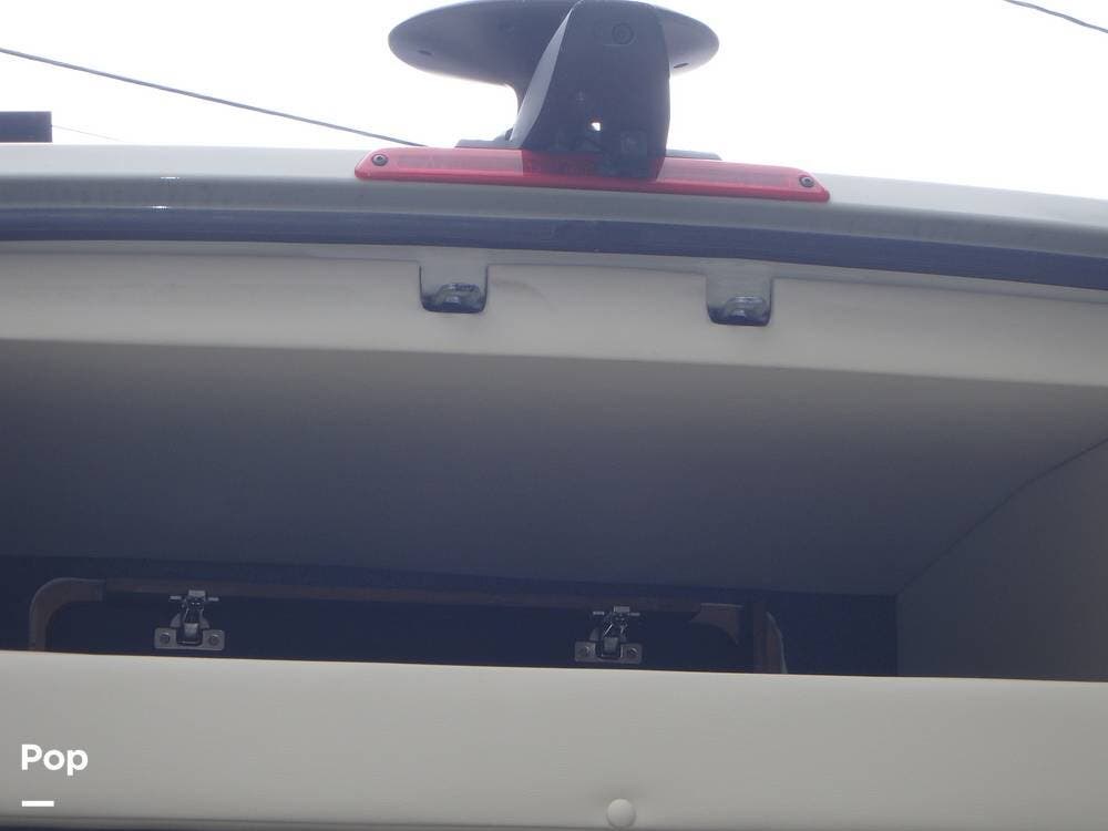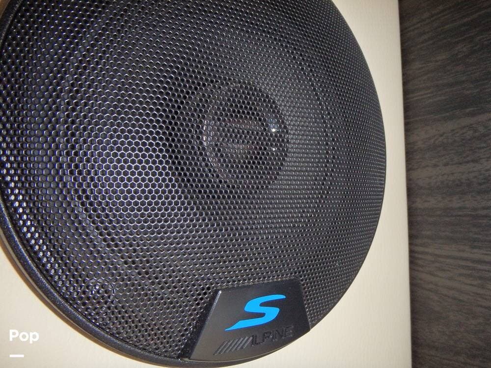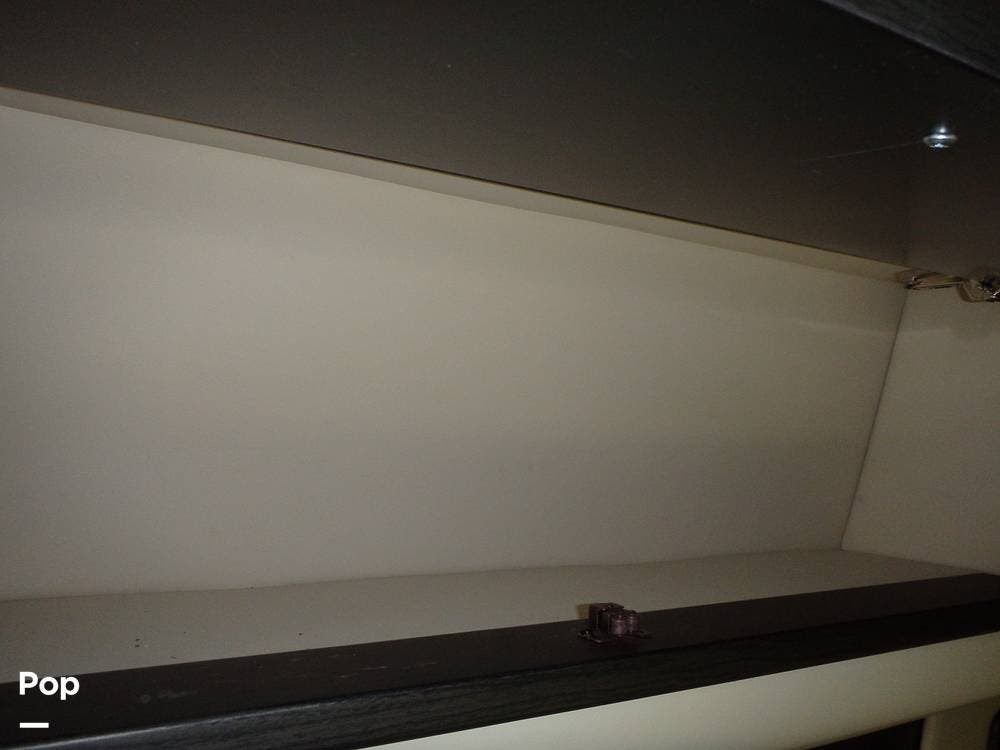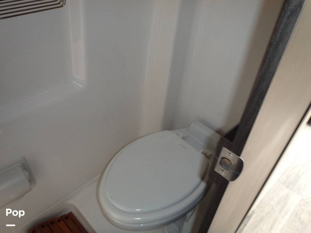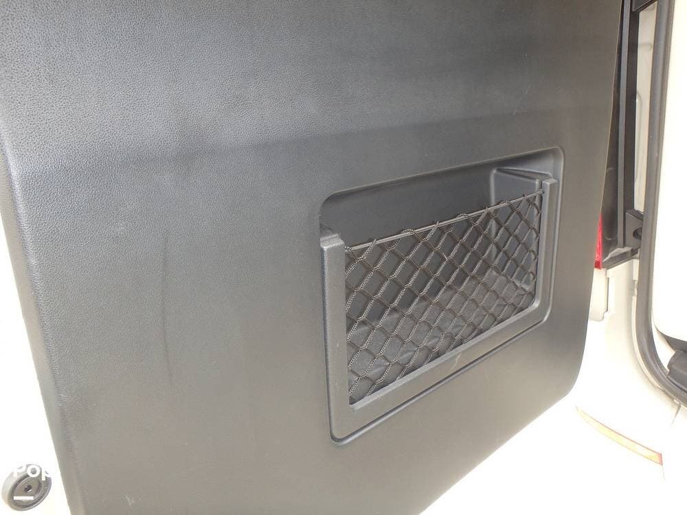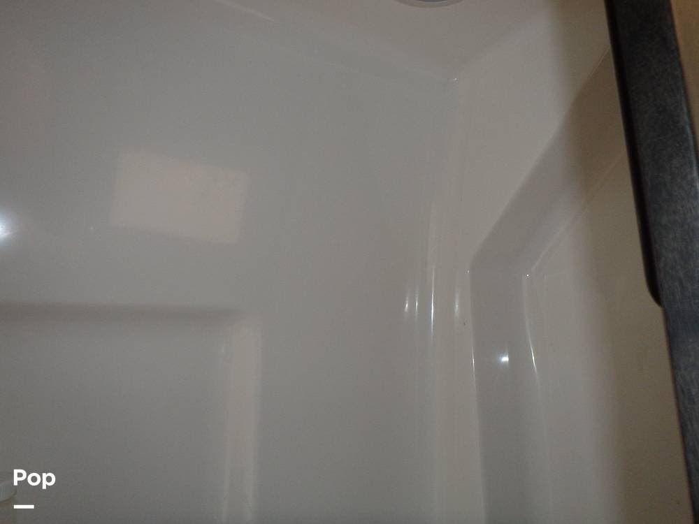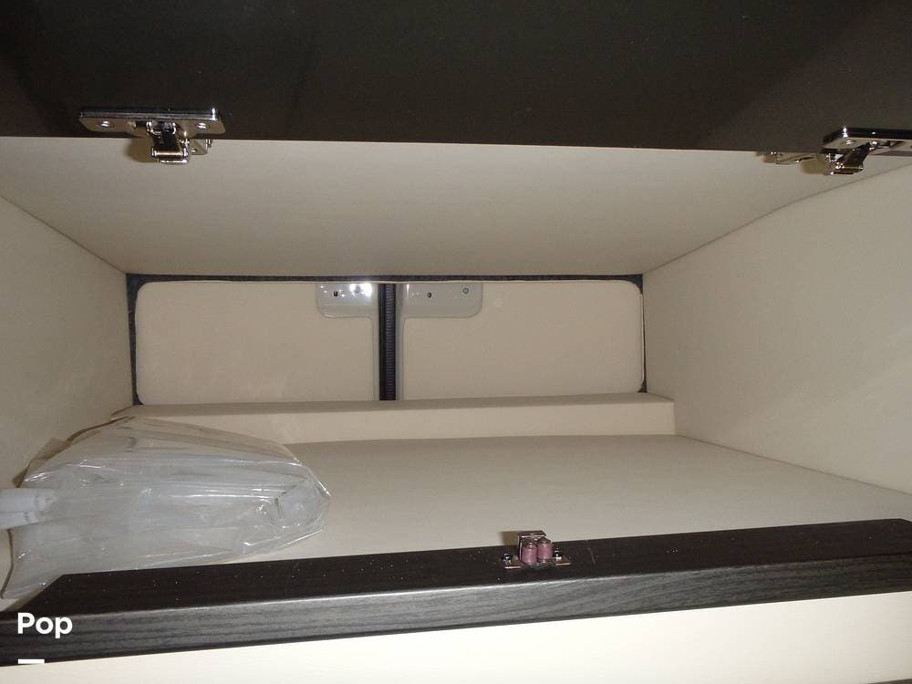 The interior finishes are upscale: solid surface countertops, composite seamless flooring, wood cabinetry (hydro-graphed wood finishes), soft-touch walls, coordinated accents, and custom seating. There are four touchscreen control centers for added convenience. The front cabin area has Weather Tec flooring.