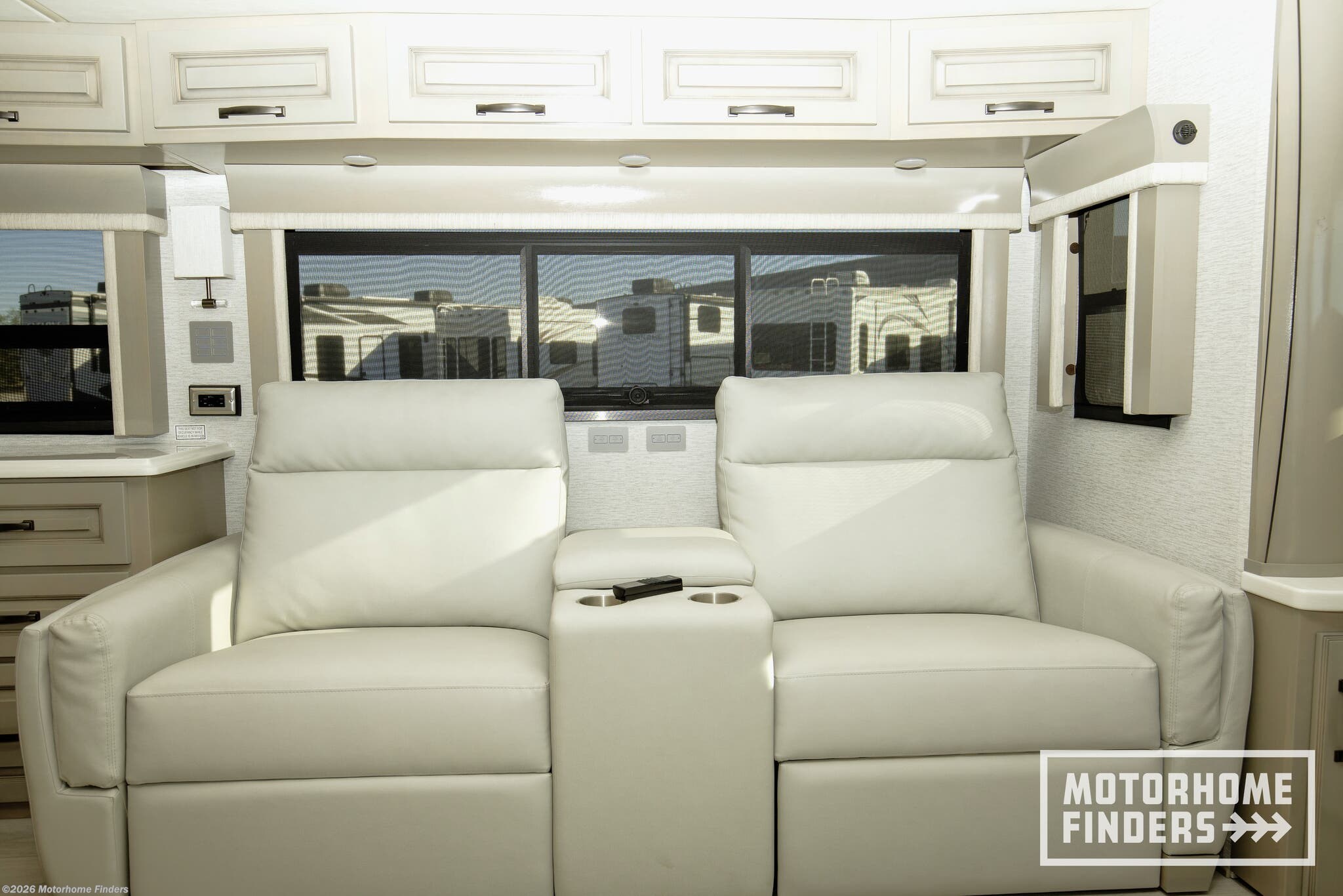 6-Way Power Driver's Seat, Bath & 1/2, Built-In Safe, Central Vacuum, Day/Night Shades, Free Standing Dinette w/Chairs, Heated Floor, King Size Bed, Leather Furniture, Medicine Cabinet, Non-Smoking Unit, Power Seats, Roof Vents, Self Contained, Shower, Theater Seating, Toilet