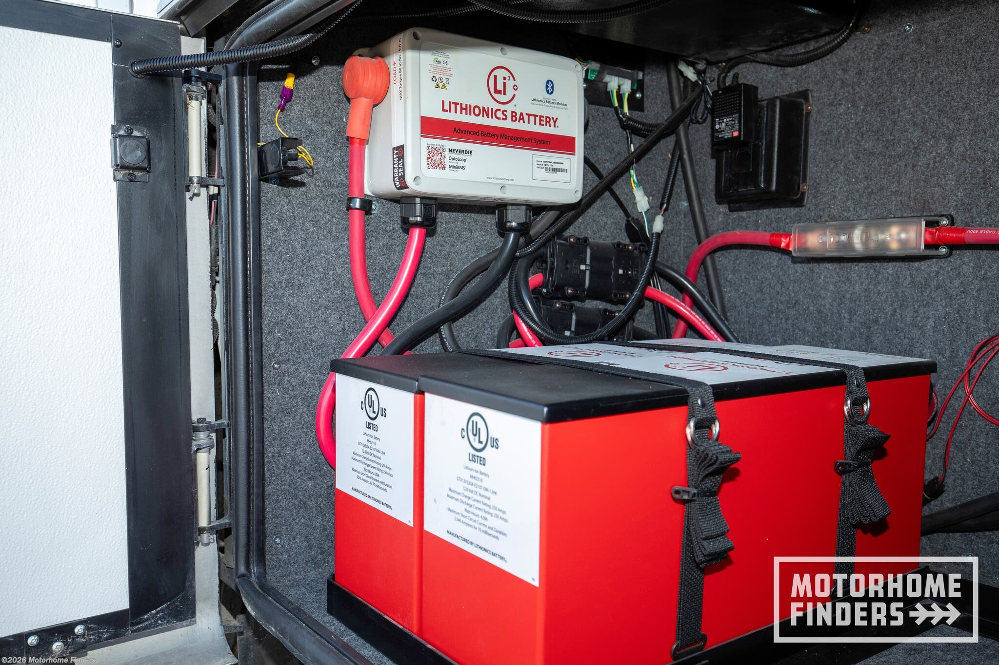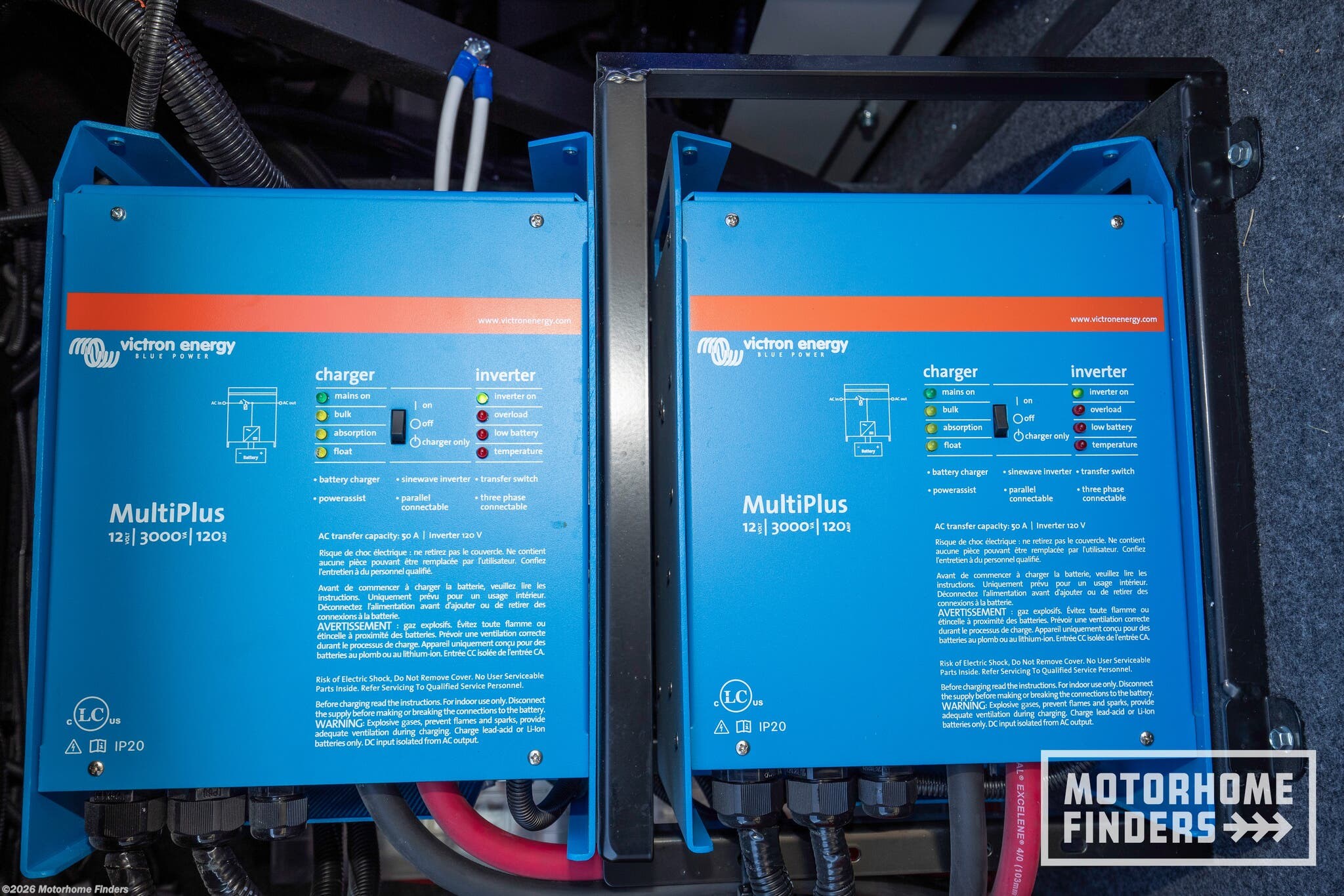 All-Electric Coach (No LP) – Powered by Lithium-Ion 640Ah battery system with dual 3,000W inverters for efficient, silent operation.