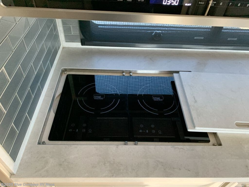 Traveling with friends and family is easier than ever in this coach with a bath and a half plus sleeping space for five to six! There is a hide-a-bed sofa across from a TV on power lift to make movie nights fun and a booth dinette to dine at or sleep an extra guest or two. The chef of your crew will love the spacious kitchen with an all-electric flush mount induction cooktop and a countertop extension for more prep space. There is also a pantry and a 19.7 cu. ft. refrigerator that provides tons of food storage space. The mid-ship half bath is centrally located for easy use, and the full rear bath includes a wardrobe with washer and dryer prep if you want the option to make wash day easier. When you're ready for some shut-eye, the queen bed slide out in the master bedroom is sure to bring a great night's rest!