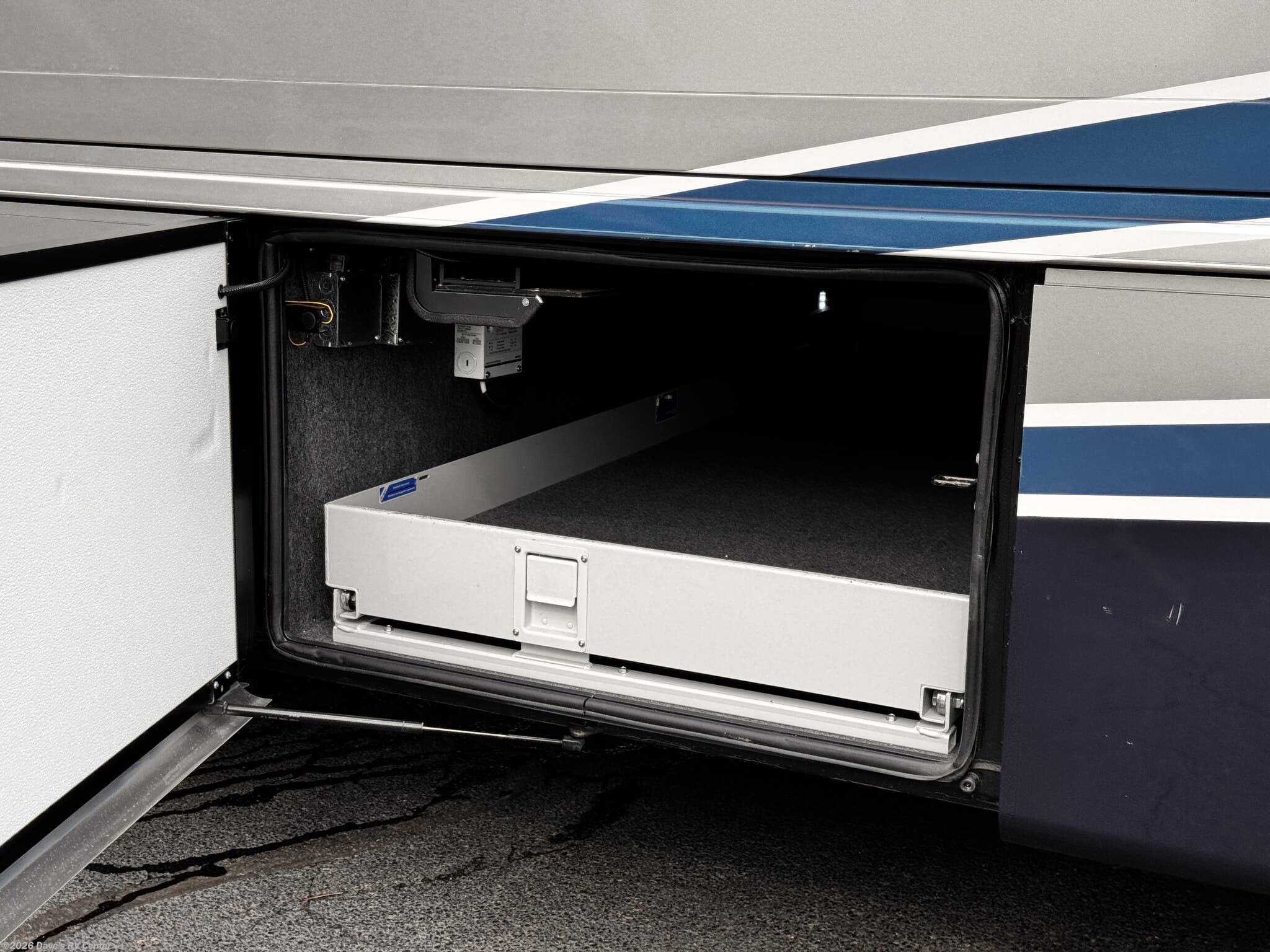 Air Assist Suspension, Alloy Wheels, Automatic Leveling Jacks, Backup Monitor, Black Tank Flush, Enclosed Underbelly, External Shower, Full Body Paint, Heated Underbelly, Hitch, Keyless Entry, Ladder, Leveling Jacks, Outside Entertainment Center, Pass Thru Storage, Power Awning, Power Entrance Step, Power Roof Vent, Roof Vent, Screen Door, Second Roof A/C, Skylight, Slam Latch Baggage Doors, Slideout, Slide-out Awning, Spare Tire Kit, Tinted Windows -