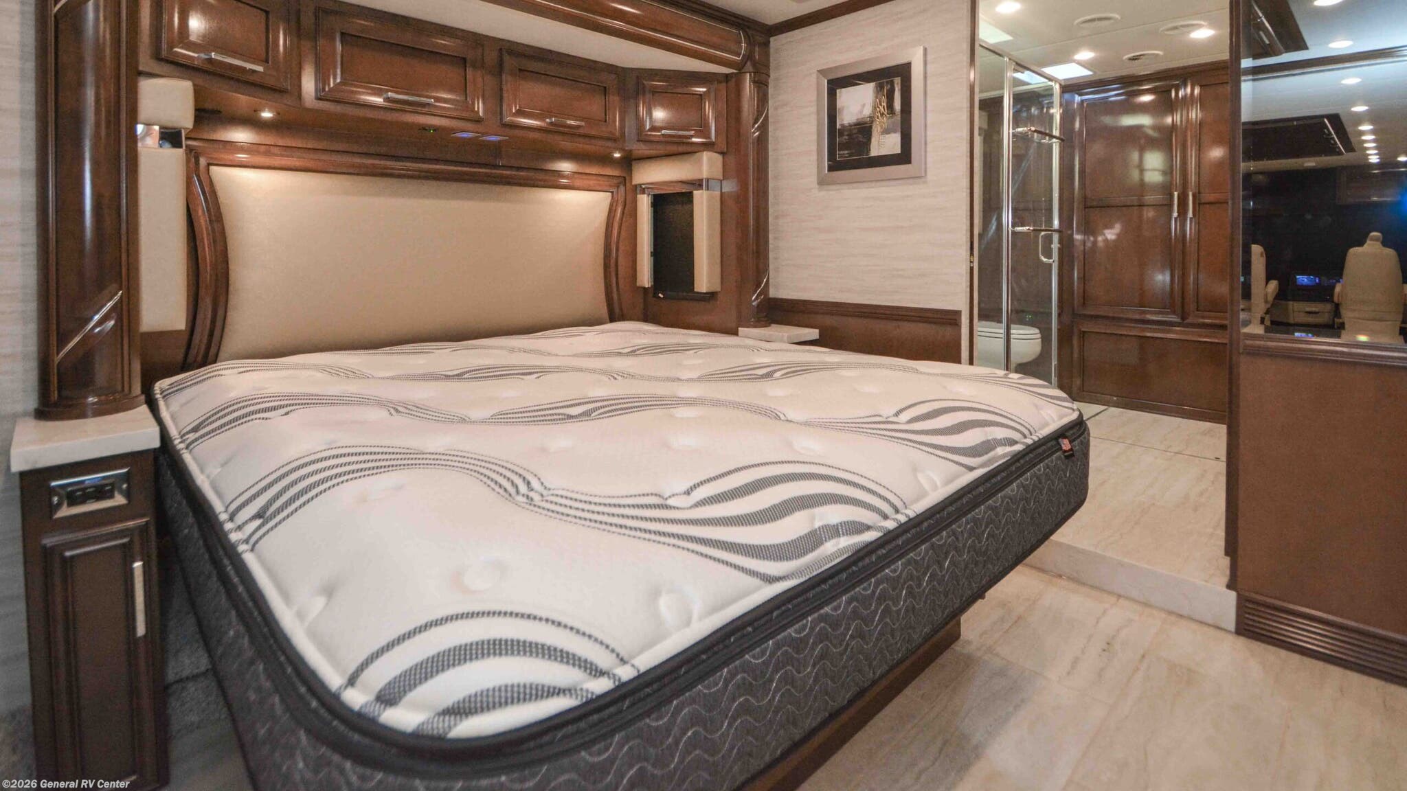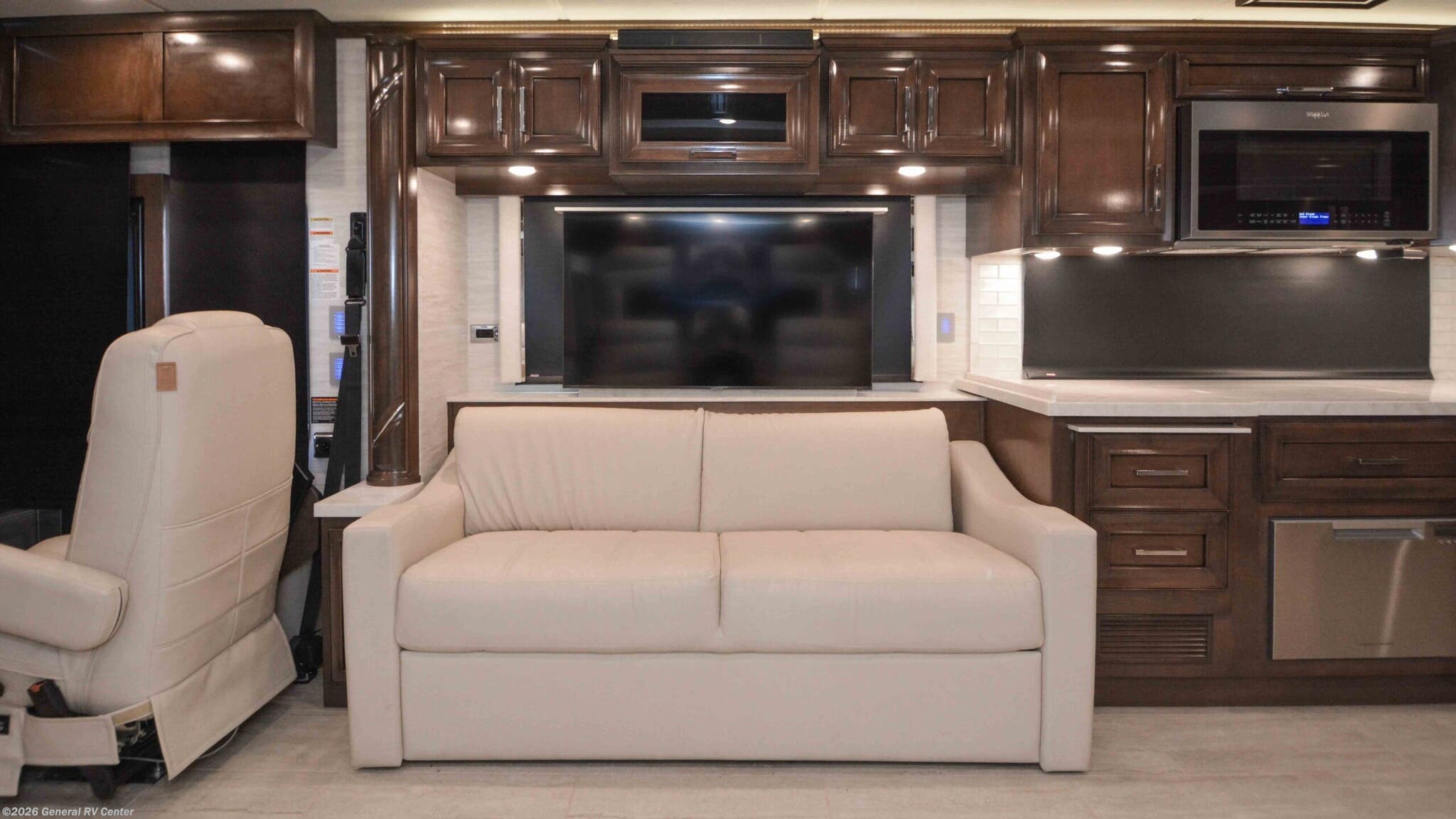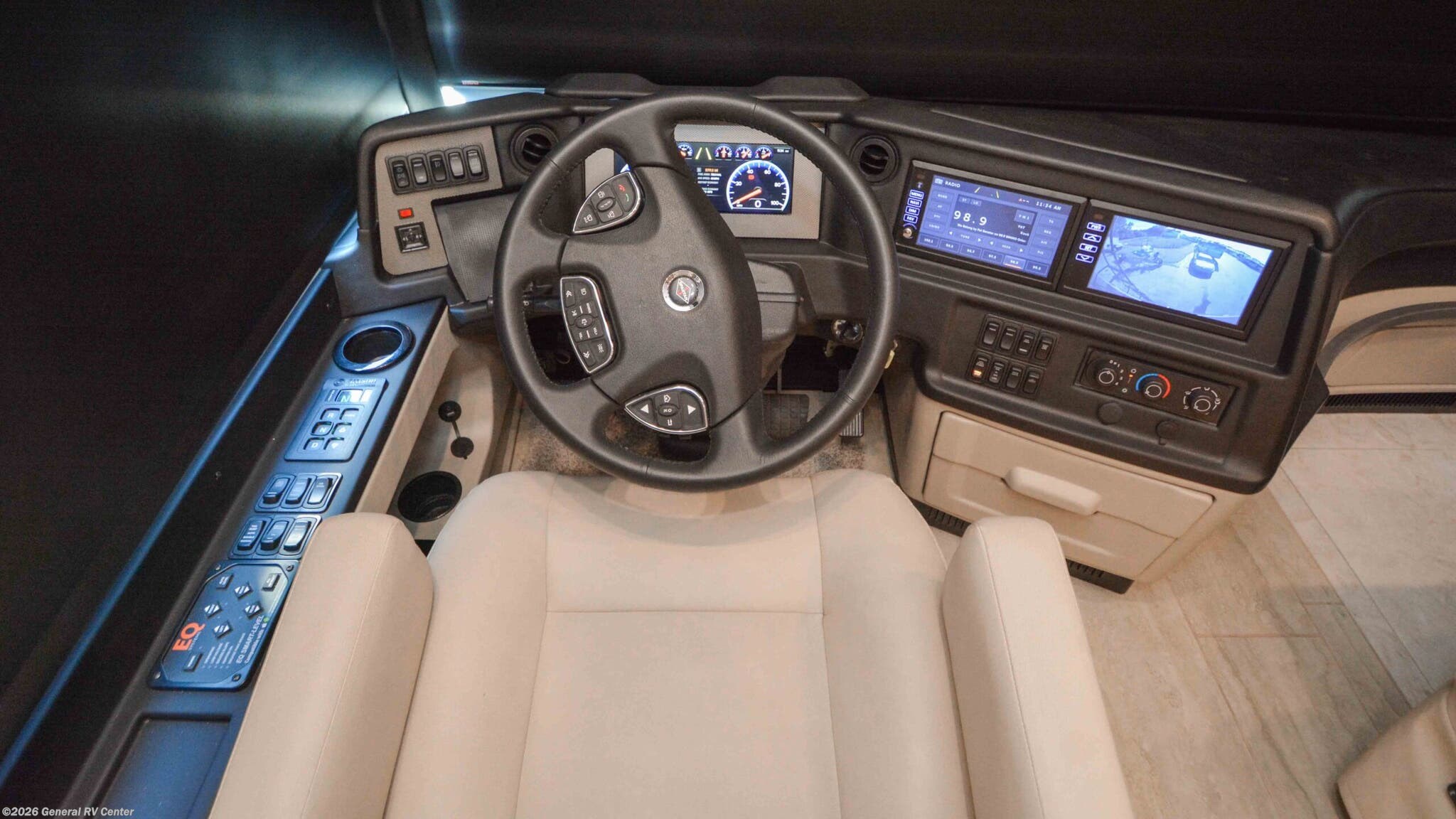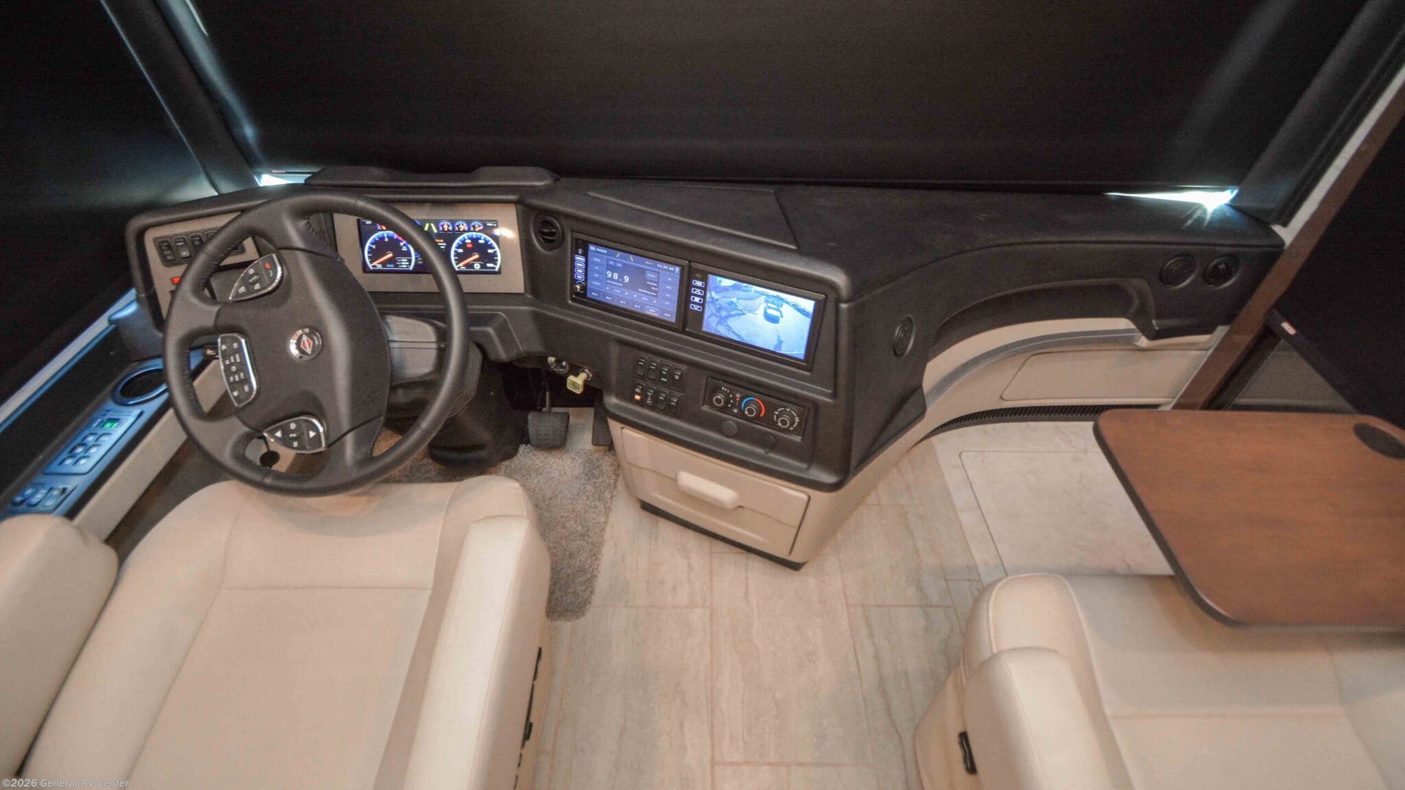 Discover the epitome of luxury and innovation with the 2024 Newmar Ventana 4369. Designed for those who crave adventure without sacrificing comfort, this magnificent diesel pusher offers a harmonious blend of style and functionality. With a spacious floor plan that sleeps up to nine, you'll find a king-sized bed in the master suite and convertible sleeping areas that ensure everyone has a cozy place to rest. The center kitchen is a chef's dream, equipped with a full-size electric refrigerator and convection cooking, perfect for preparing gourmet meals on the road. The Ventana 4369 boasts a front living area that invites relaxation, featuring a plush jack-knife sofa and a side hide-a-bed sofa. Enjoy entertainment on the go with the TV on a power lift, seamlessly integrated into the elegant design. The rear bath offers a touch of spa-like luxury with a roomy shower, while the washer/dryer prep ensures you're ready for extended adventures. With a powerful Cummins I6 Diesel Pusher engine, Freightliner XC-Series chassis, and a tow capacity of 15,000 lbs, your journey will be smooth and powerful. Experience the open road like never before with the Newmar Ventana 4369, and for more details, visit your nearest General RV Dealership.