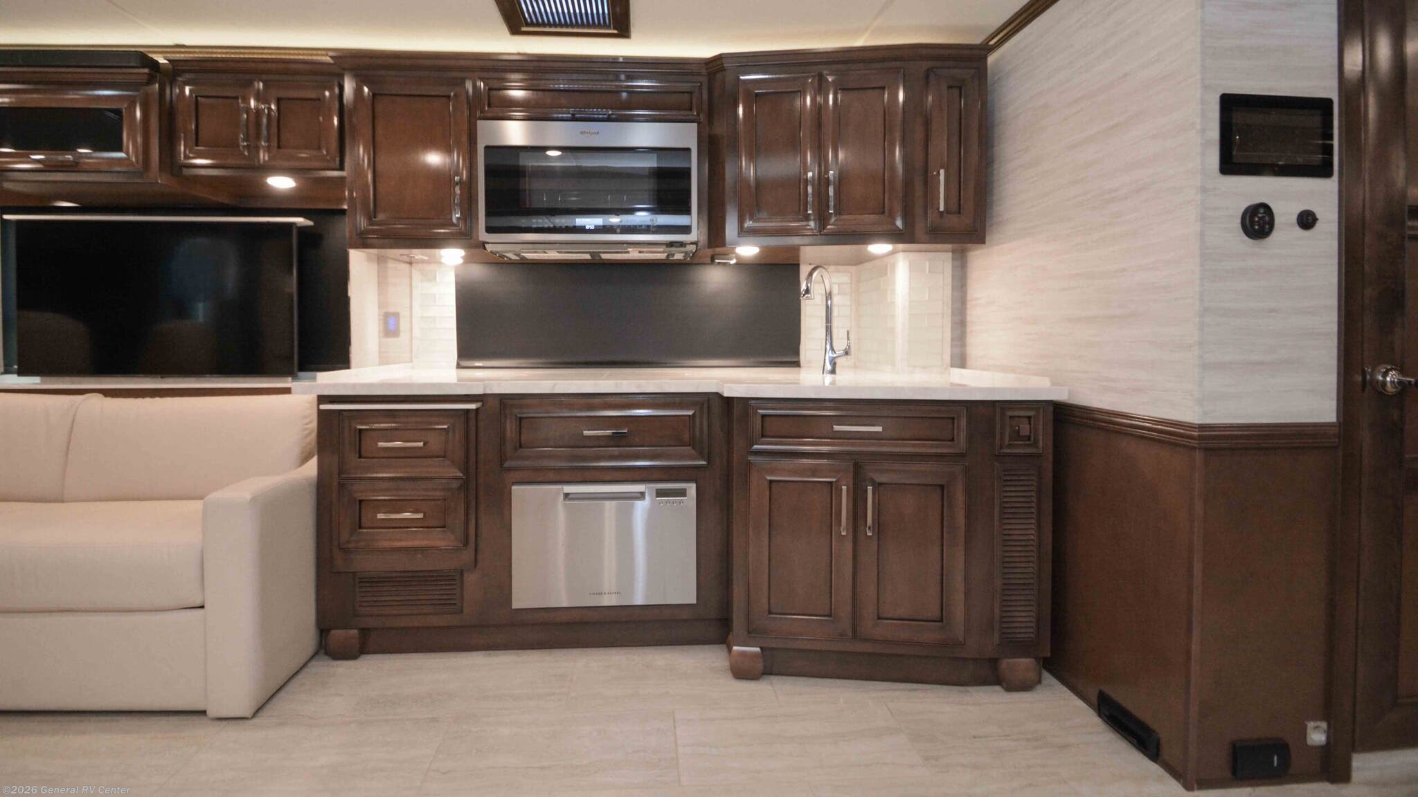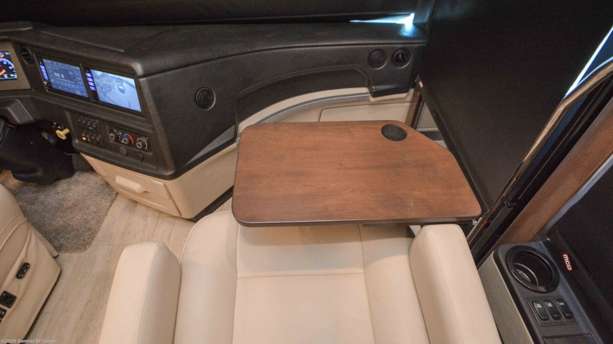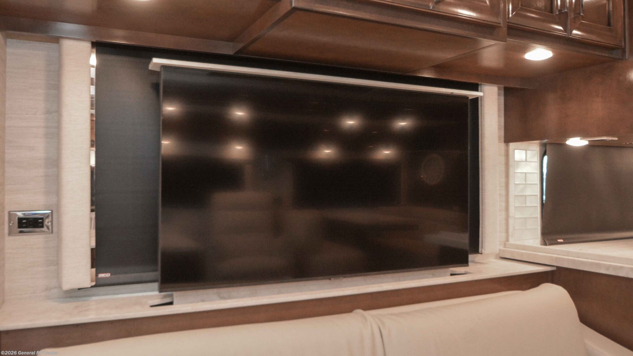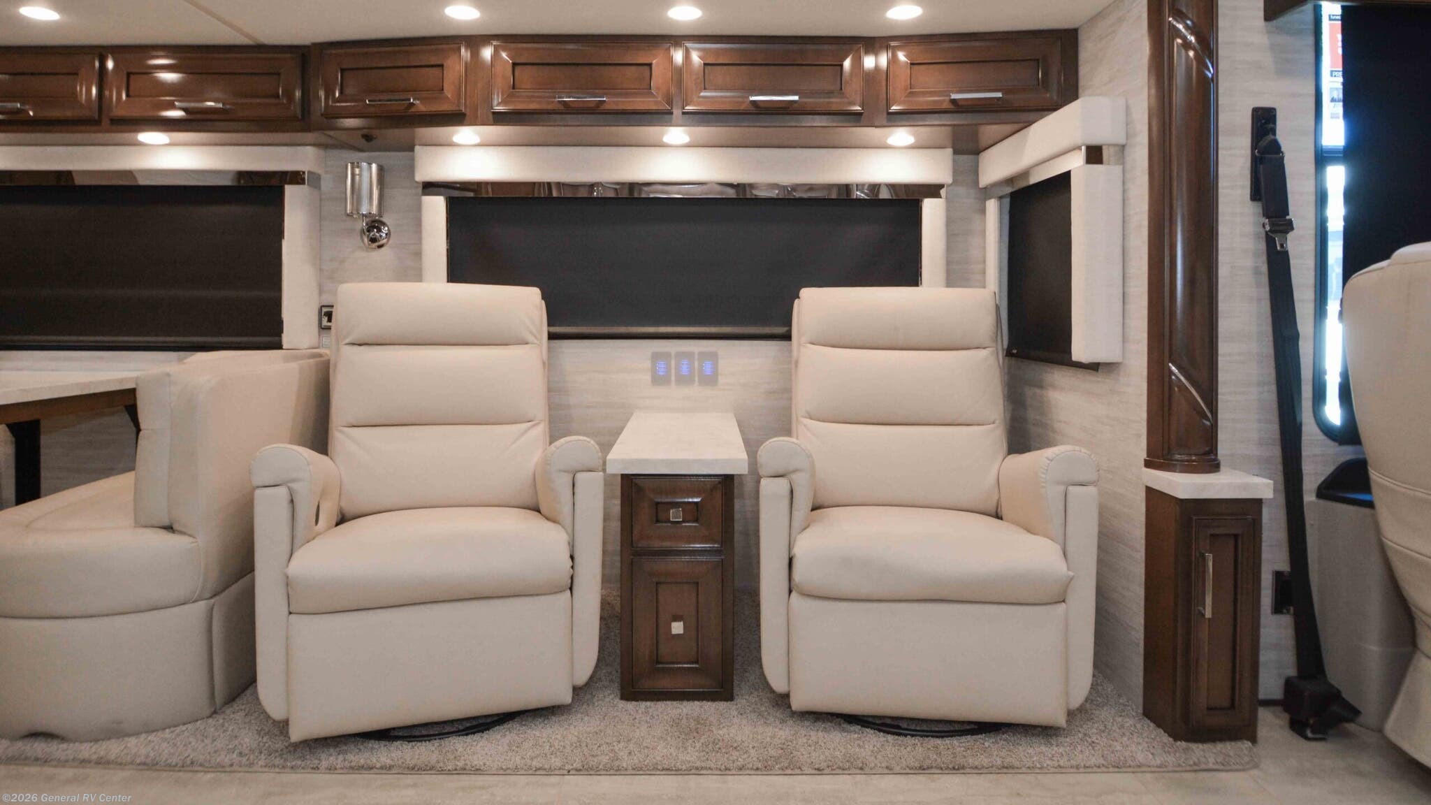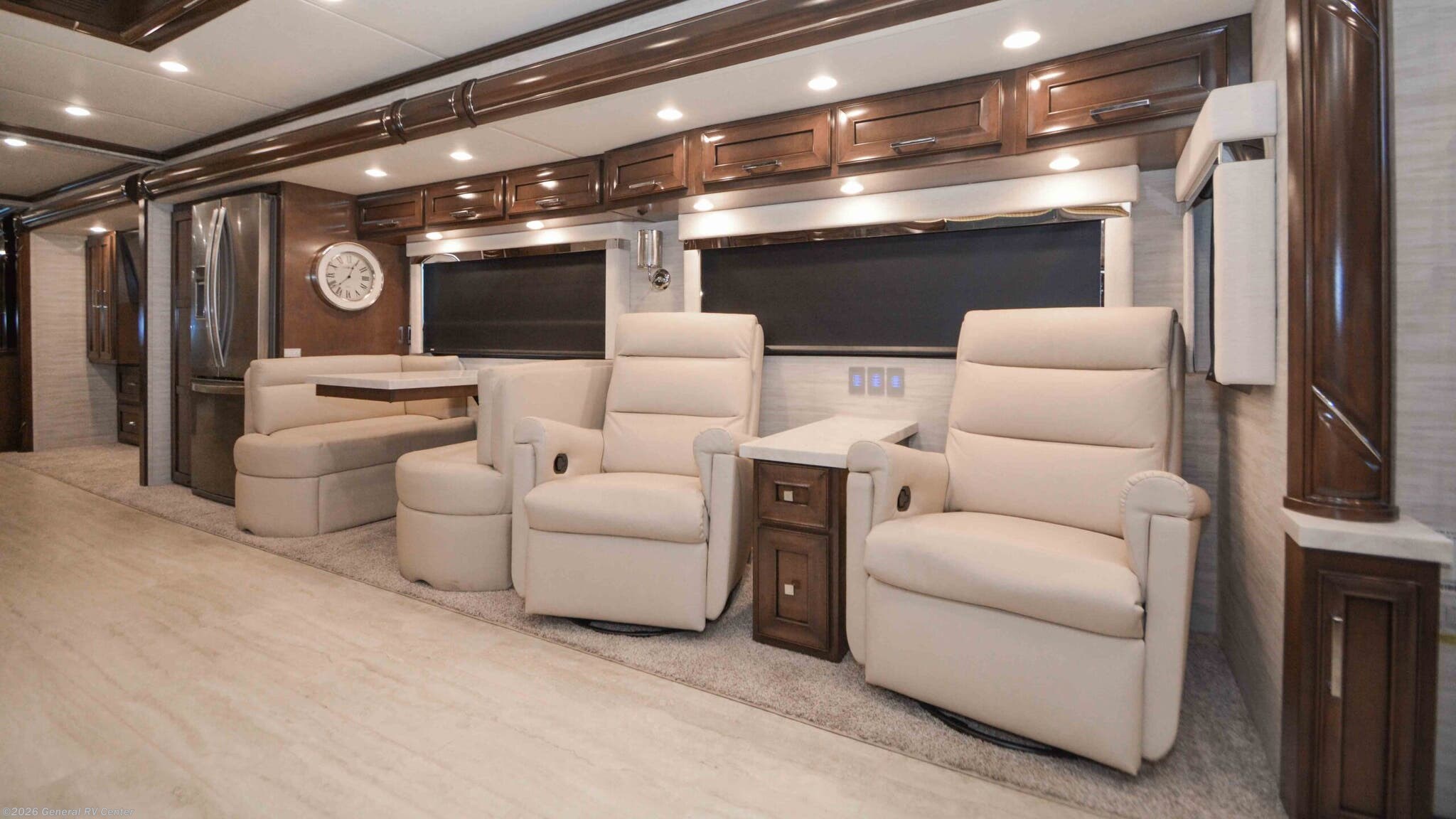 Discover the epitome of luxury and innovation with the 2024 Newmar Ventana 4369. Designed for those who crave adventure without sacrificing comfort, this magnificent diesel pusher offers a harmonious blend of style and functionality. With a spacious floor plan that sleeps up to nine, you'll find a king-sized bed in the master suite and convertible sleeping areas that ensure everyone has a cozy place to rest. The center kitchen is a chef's dream, equipped with a full-size electric refrigerator and convection cooking, perfect for preparing gourmet meals on the road. The Ventana 4369 boasts a front living area that invites relaxation, featuring a plush jack-knife sofa and a side hide-a-bed sofa. Enjoy entertainment on the go with the TV on a power lift, seamlessly integrated into the elegant design. The rear bath offers a touch of spa-like luxury with a roomy shower, while the washer/dryer prep ensures you're ready for extended adventures. With a powerful Cummins I6 Diesel Pusher engine, Freightliner XC-Series chassis, and a tow capacity of 15,000 lbs, your journey will be smooth and powerful. Experience the open road like never before with the Newmar Ventana 4369, and for more details, visit your nearest General RV Dealership.