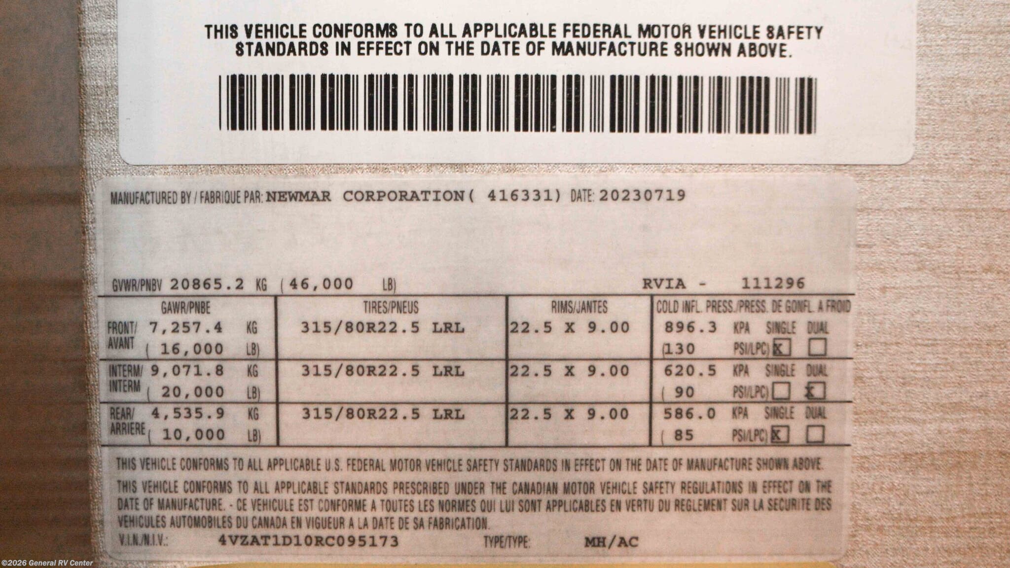 - VIN4VZAT1D10RC095173