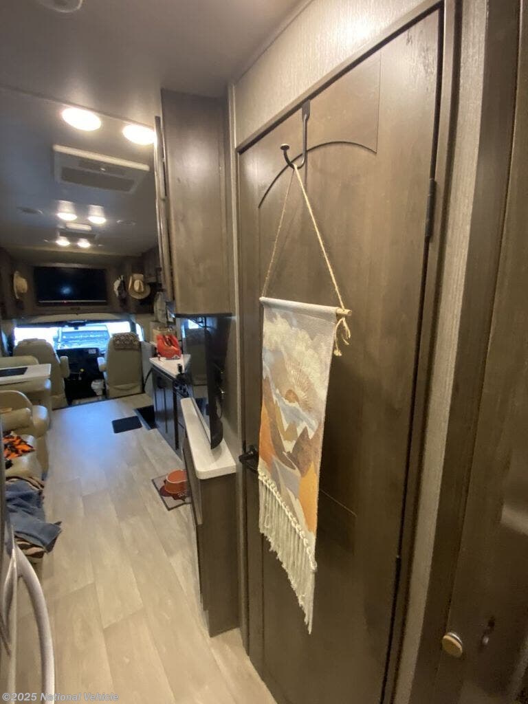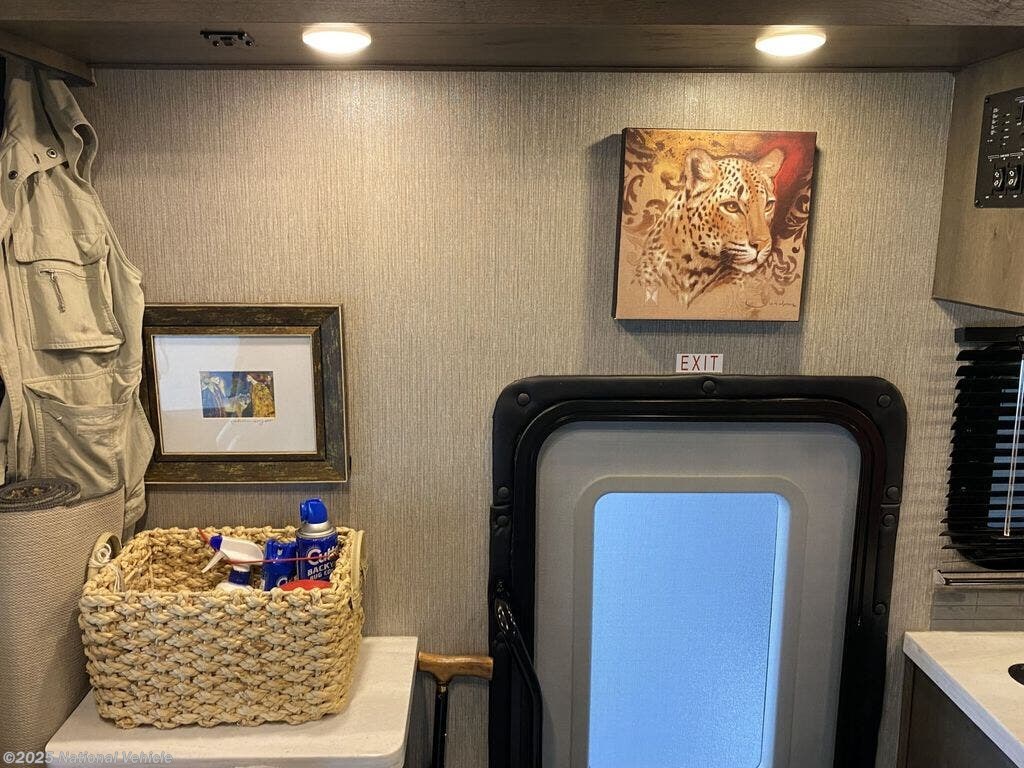 Beyond the interior, this model emphasizes durability and convenience. Seamless fiberglass sidewalls, a wrap-around fiberglass roof, heated and enclosed holding tanks, and high-strength steel framing ensure it?s built to last. Add in auto-leveling jacks, electric patio awning with LED lighting, and advanced driver aids like side-view and backup cameras, and you have a motorhome that combines elegance, utility, and serious performance.