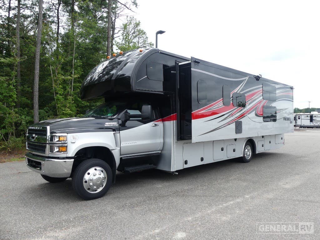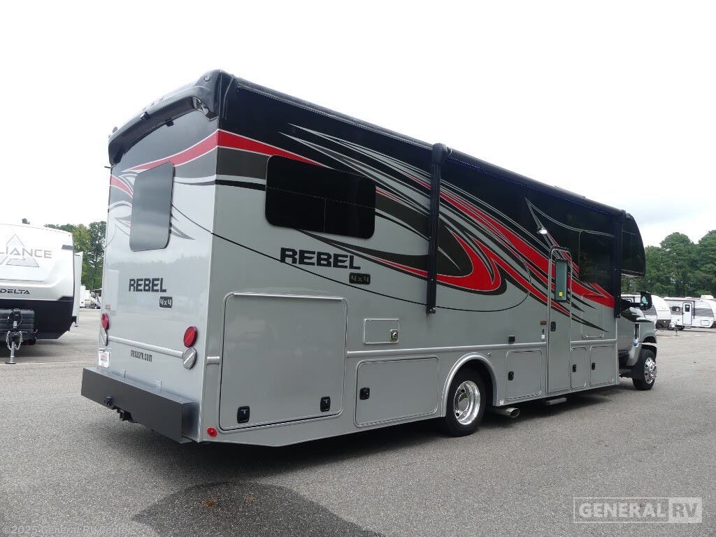 Experience the perfect blend of adventure and comfort with the 2024 NeXus RV Rebel 35R. Designed with families in mind, this RV offers ample sleeping space for up to 10 people, featuring a full-size bed, a queen bed, and two convertible beds, along with cozy bunks. The front living area is an inviting space where you can unwind after a day of exploration. The center kitchen is equipped with a three-burner cooktop and convection cooking, ensuring you can prepare delicious meals on the go. The full-size electric refrigerator keeps your ingredients fresh, while the powered retractable awning provides a shaded outdoor retreat. This RV is built on the robust International CV Series chassis, powered by a Duramax V8 engine offering 350 horsepower and 700 lb-ft of torque. With a towing capacity of 12,000 pounds, it’s ready for any adventure you have in mind. The rear bedroom provides a private sanctuary, while the center bath ensures convenience with its curtain shower. Despite its luxurious features, the Rebel 35R is rugged and ready for the road, with a diesel fuel capacity of 65 gallons, making it perfect for extended journeys. For more details or to see this RV in person, visit your nearest General RV Dealership.