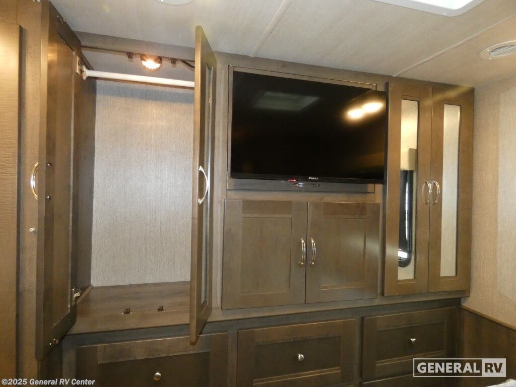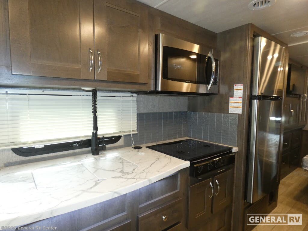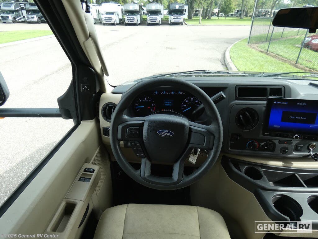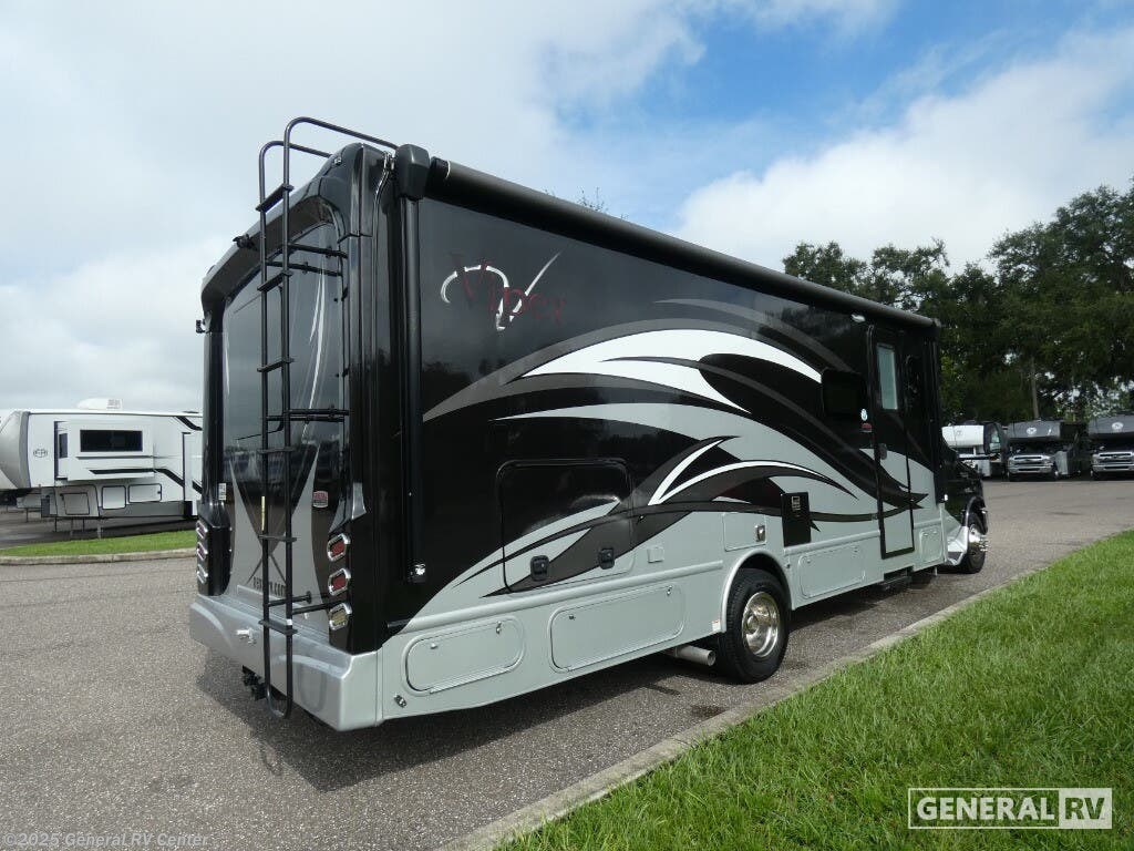 Step into the 2024 NeXus RV Viper 27V and discover a world where comfort meets adventure. This sleek motorhome is built on the robust Ford E450 chassis, boasting 300 horsepower and 425 lb-ft of torque, ensuring a smooth and powerful drive. With a length of just over 28 feet, it's compact enough for easy maneuverability while offering ample space for relaxation and entertainment. The Viper 27V features two slides, creating a spacious interior that houses a front living area with an entertainment center that invites you to unwind after a day of exploration. The center kitchen is equipped with a full-size electric refrigerator and a three-burner cooktop, making meal prep a breeze. Retreat to the rear bedroom, where a cozy queen bed awaits, complemented by overhead cabinets and a wardrobe for all your storage needs. The center bath, featuring a shower with a curtain, ensures convenience and privacy. With the ability to sleep up to four people, thanks to the convertible dinette, this RV is perfect for families or couples seeking a getaway. Enjoy outdoor living under the powered retractable awning, and with a towing capacity of 7,500 lbs, bring along your favorite toys for added fun. For more details or to experience the Viper 27V in person, visit your nearest General RV dealership.