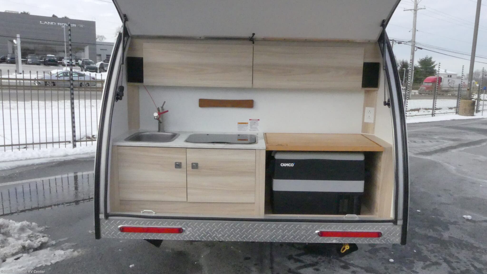 nüCamp RV TAB 320 teardrop trailer S highlights: Wet Bath Expandable Split Bed Interior Kitchen Stainless Steel Sink Bluetooth Media Center Whether you make plans or enjoy last-minute trips, this trailer offers all the essentials for a perfect weekend! There is an interior kitchen, wet bath, and U-shaped dinette that offers seating and sleeping space. And the wet bath or the external shower will keep you clean and refreshed while camping. If you enjoy more off-road type camping, consider the optional Boondock package and Lithium battery option which will allow you to go off-grid. The Lithium battery upgrade includes 400 Ah 12V lithium battery bank with internal heat and a 3000 watt multi-pus inverter/charger. Please note: The model specs. shown are for the classic TAB 320. With the Boondock optional package the length is increased by 3" making it 15' 6", the height will be 8' 2", dry tongue weight will be 172 lbs. and total gross dry weight will be 2,043 lbs. The dimensions on the Black Canyon optional package are the same as the Boondock, but total gross dry weight will be 2,081 lbs. and dry tongue weight will be 159 lbs. With any TAB 320 teardrop trailer by nüCamp RV, the interior offers premium soft-close cabinetry, a front window, plus a wet bath with a cassette toilet and a molded sink. The iconic teardrop design offers an easy-to-tow unit with amenities found in much bigger trailers. Some other highlights include the Alde heating/hot water system, the central air conditioner, 180 watt solar panel, and the Nautilus water system with an external shower. The Boondock package includes an additional 310 watt solar panel, holding tank heaters, and under-glow lights. With these upgrades your tow length increases by 3" and hitch and gross weight will be higher as well!