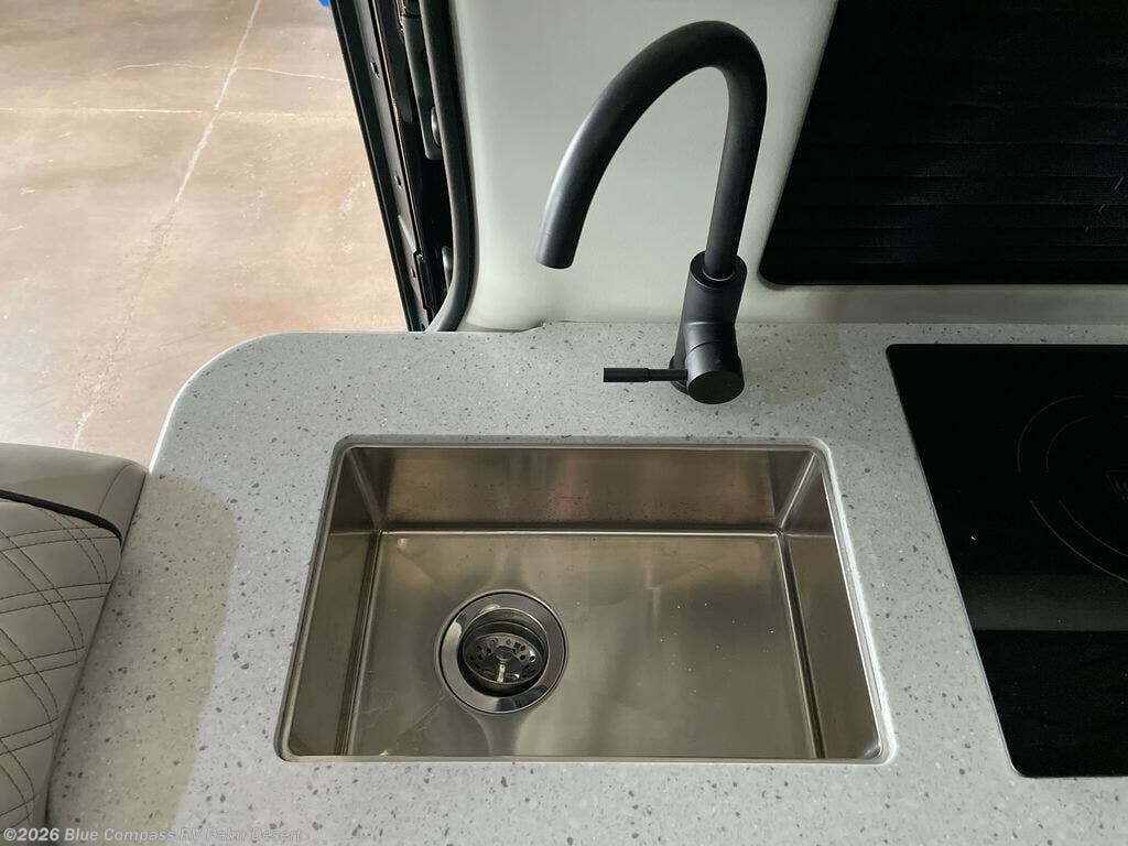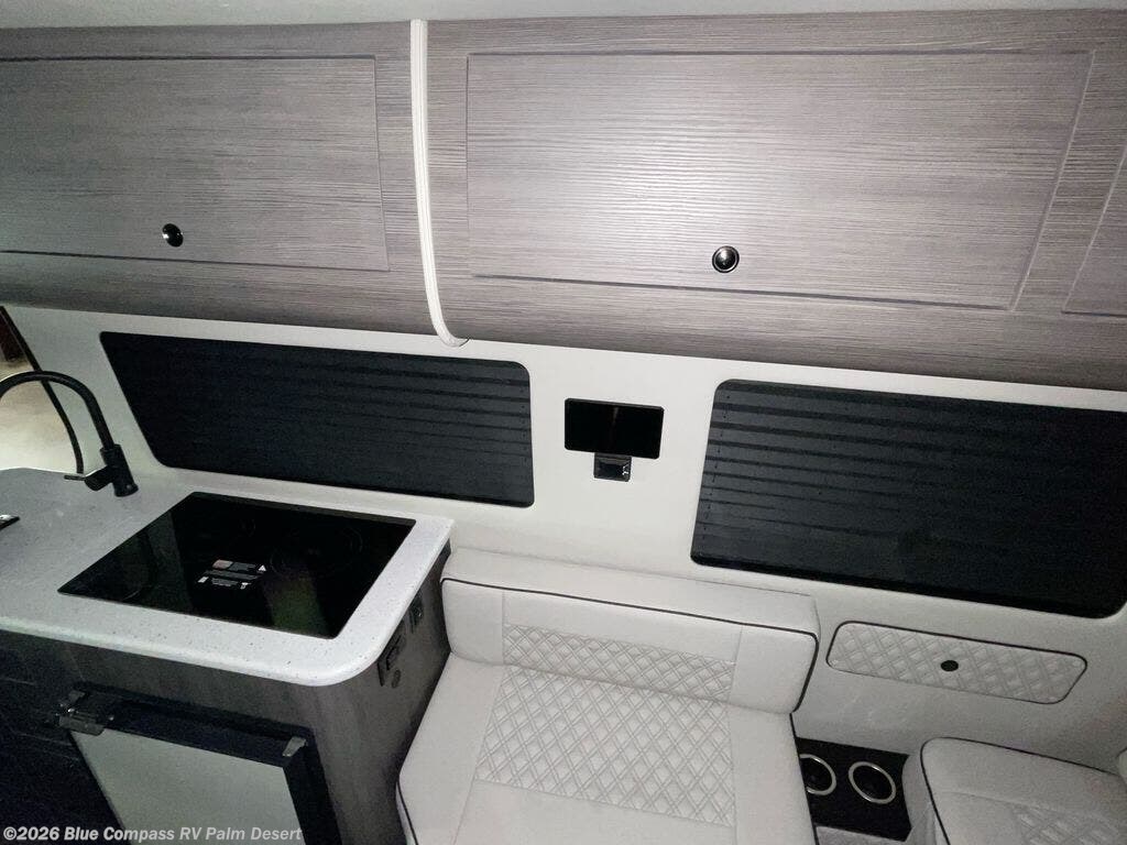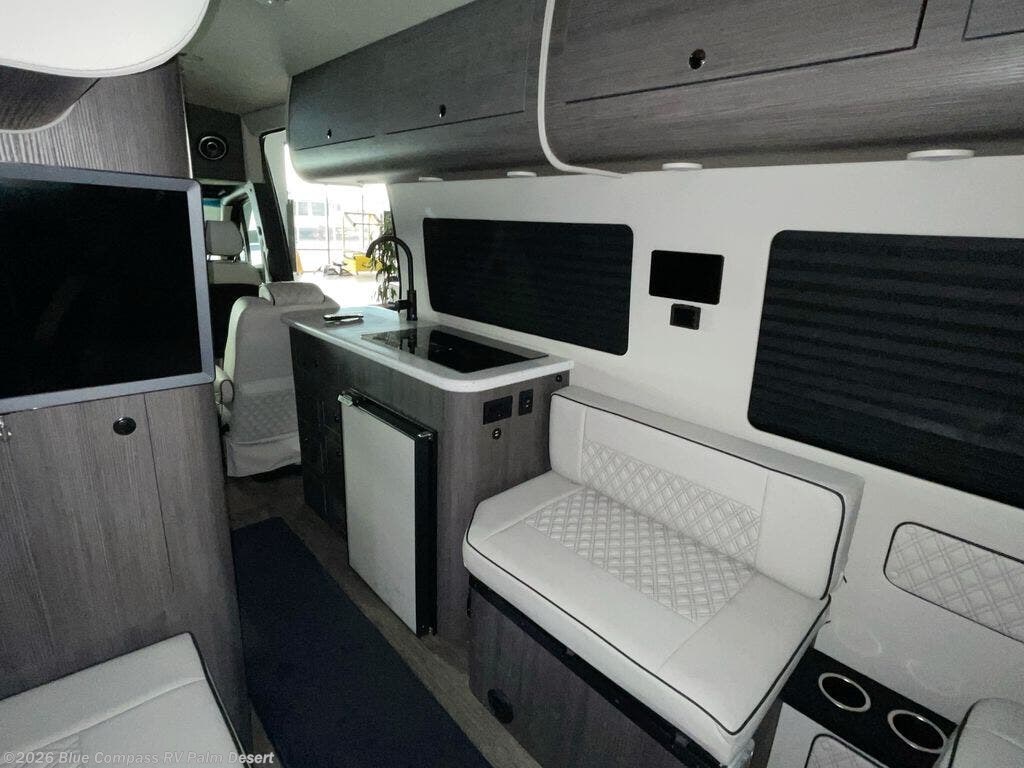 With any V-RV Class B diesel motorhome by OGV Luxury Coach, you will enjoy a smooth drive and innovative features to make van life easier than you think. They are constructed with the industry's best insulation package, including hush matts on all surfaces except the windows. The Anywhere Package comes with a 1080 Ah lithium battery, 3,000 watt inverter, 340 watts of auxiliary solar power, and a dual alternator with a Wakespeed Charge controller for endless power. You will also appreciate the Mercedes-Benz suspension bundle (RV1) with Sumo Springs, added safety features, and a rear view camera system for hassle-free parking. Automotive grade fabrics come standard inside, along with side and rear screen doors, custom woodwork with satin finish, multiple 110V dual outlets, and a rear JL audio entertainment system to ensure you'll never go bored. Each model is also available with AWD, which will be perfect if you plan to travel tougher terrain; see dealer for more details!