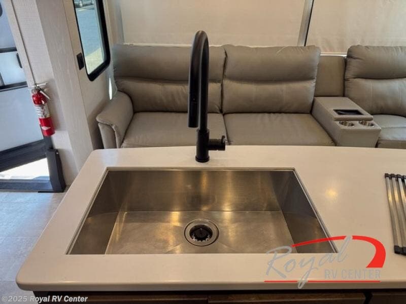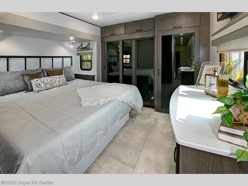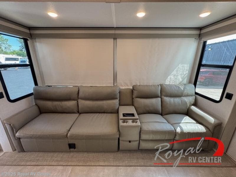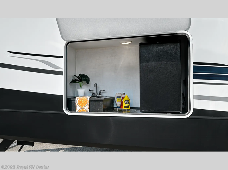 Experience a different camping life with residential furnishings and high end features in each one of these Palomino Columbus fifth wheels! The 101" wide body lets you walk around more throughout and the all-welded aluminum-frame superstructure has a snap-in ceiling molding to hold up through every adventure. Don't leave any of your gear behind either when you can easily store it in the climate controlled drop frame storage area. On the exterior, you'll find a heated utility convenience center, an outside sprayer to keep the dirt outside where it belongs, and magnetic compartment door holds to keep them from falling on you as you grab your items. Plus, there are some modern features that will really seal the deal like the Wi-Fi Booster with 4G LTE capability prep, upgraded true solid-surface countertops, power theater seating with USB charging, and a 260W solar panel for off-grid camping!