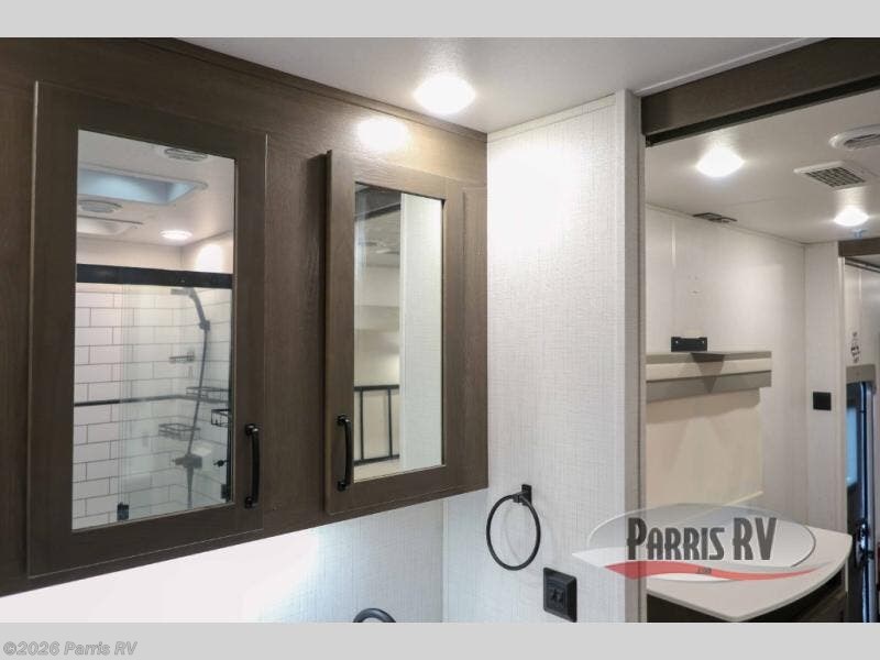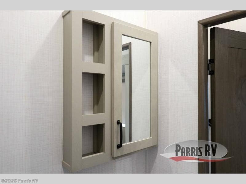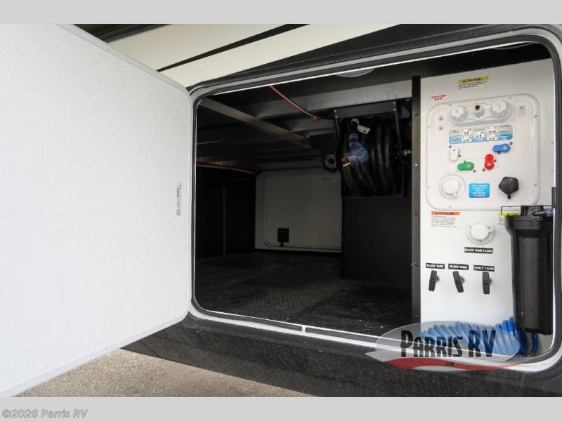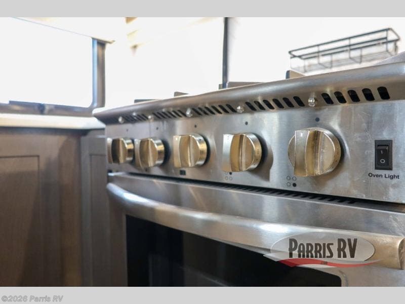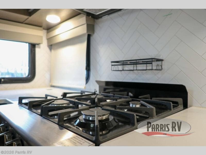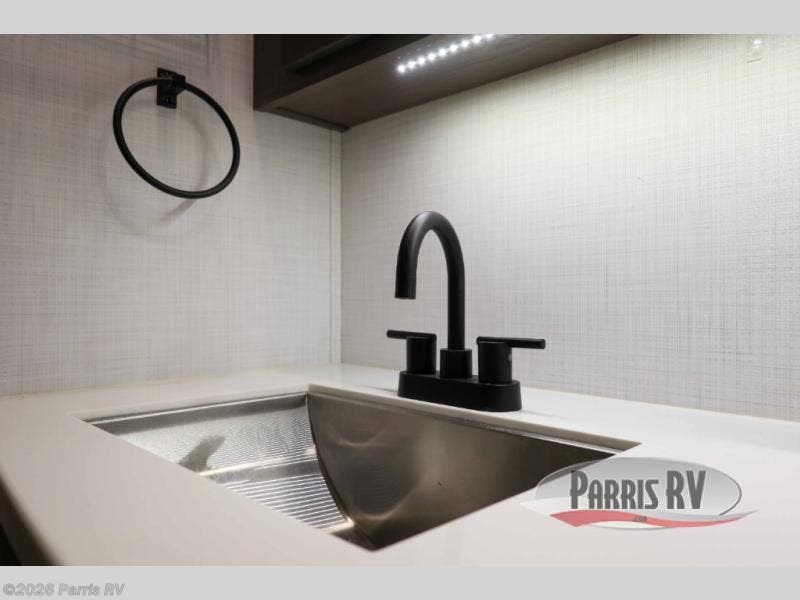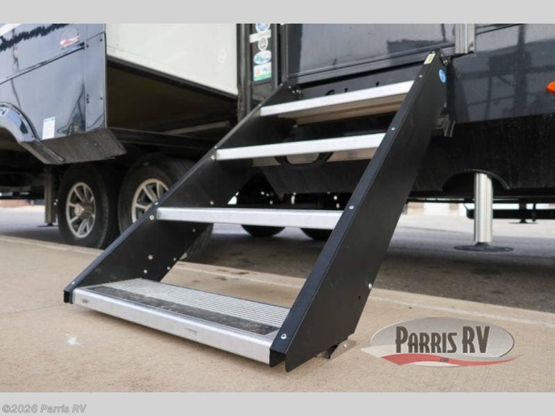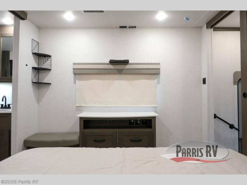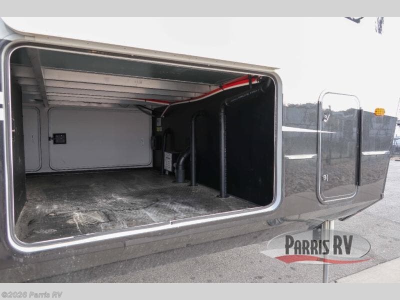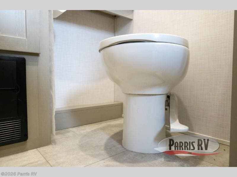 You won't believe all that this fifth wheel has to offer! Starting with the rear kitchen which has plenty of countertop space to prepare your delicious meals, a four burner cooktop with an Insignia 24" residential oven to cook them, and a large single bowl stainless steel sink for easy clean up. The living area has opposing tri-fold sofas and a 54" theater seat with USB charging and storage across from an entertainment center with 50" Smart TV. The half bathroom is close to the living area so you can get back to watching your movie faster. You will feel right at home sleeping in the master suite on a slide out king bed across from a dresser and bench where you can sit while you put on your shoes, plus entrance into the front full bathroom. Inside the bathroom, you will find a vanity with dual sinks for two to get ready at once, a large signature spa shower with a seat, and a walk-in closet with a second dresser plus washer and dryer prep!