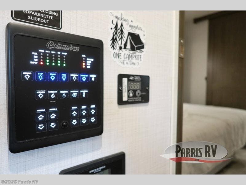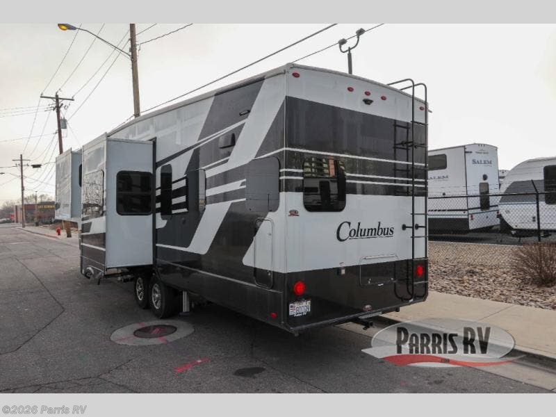 Experience a different camping life with residential furnishings and high end features in each one of these Palomino Columbus fifth wheels! The 101" wide body lets you walk around more throughout and the all-welded aluminum-frame superstructure has a snap-in ceiling molding to hold up through every adventure. Don't leave any of your gear behind either when you can easily store it in the climate controlled drop frame storage area. On the exterior, you'll find a heated utility convenience center, an outside sprayer to keep the dirt outside where it belongs, and magnetic compartment door holds to keep them from falling on you as you grab your items. Plus, there are some modern features that will really seal the deal like the Wi-Fi Booster with 4G LTE capability prep, upgraded true solid-surface countertops, power theater seating with USB charging, and a 260W solar panel for off-grid camping!