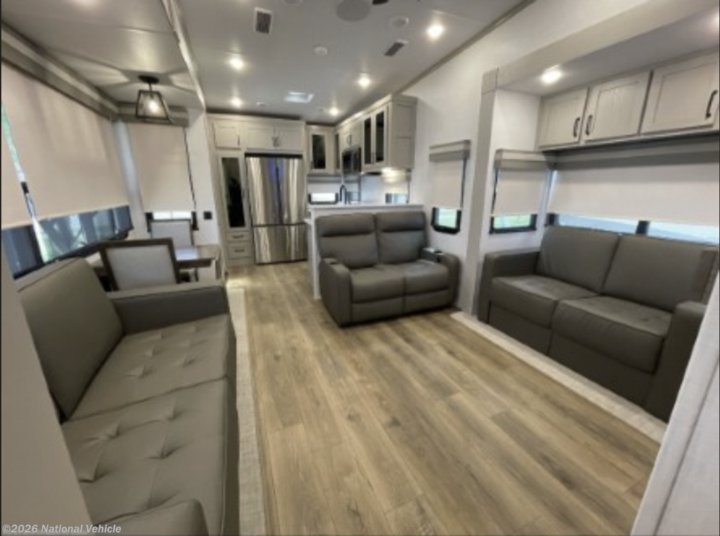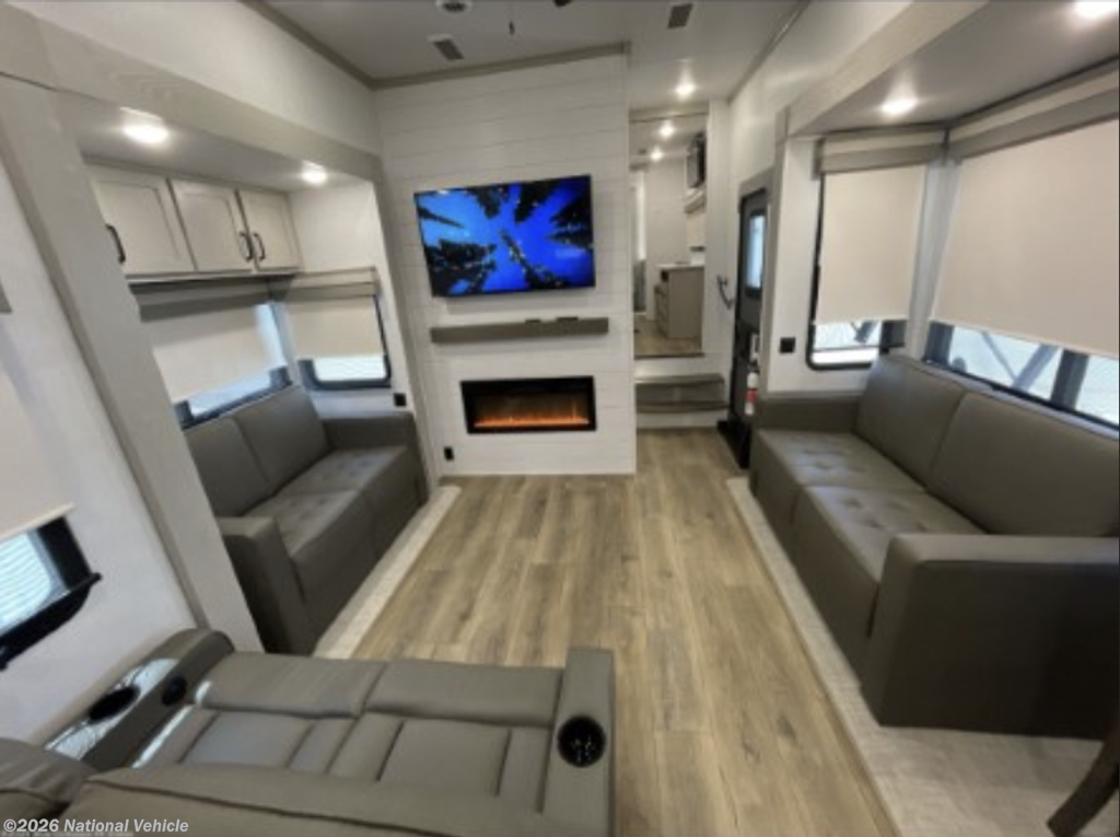 Luxury meets functionality in the 2024 Palomino Columbus 384RK, a 42' 2" fifth wheel designed to deliver the ultimate residential feel for extended stays or full-time living. This rear kitchen floorplan offers a unique blend of upscale design, spacious living, and smart storage solutions, making it a standout choice for discerning RV travelers.
