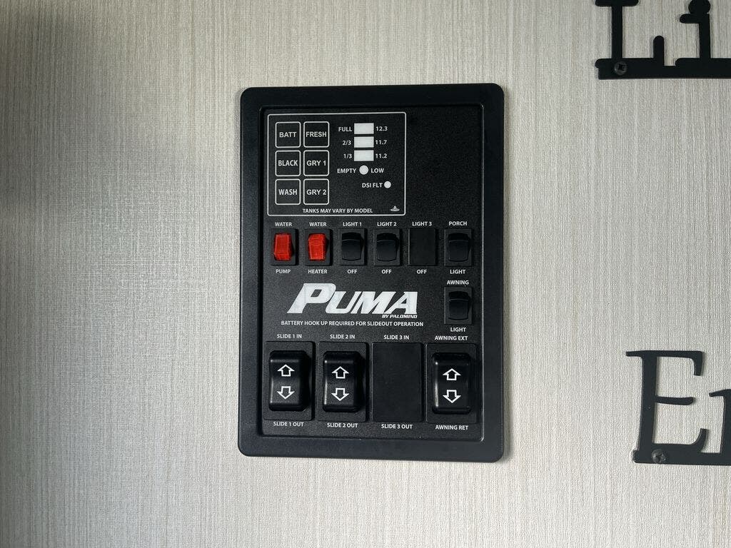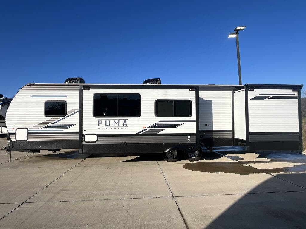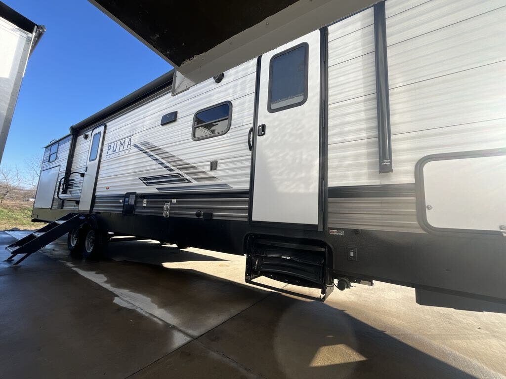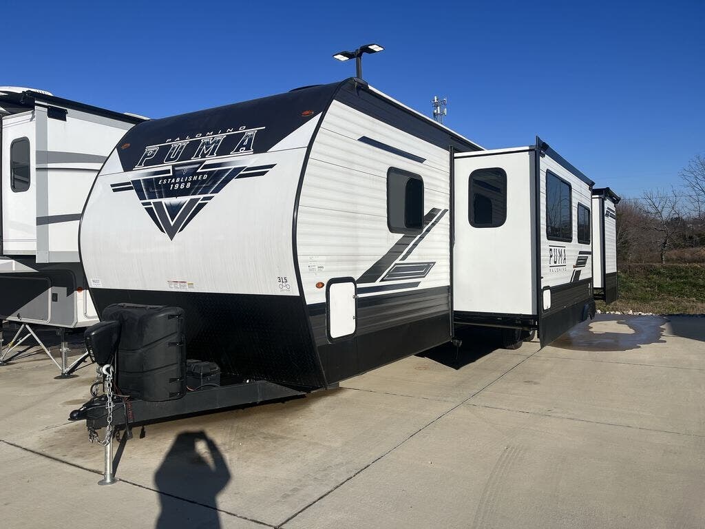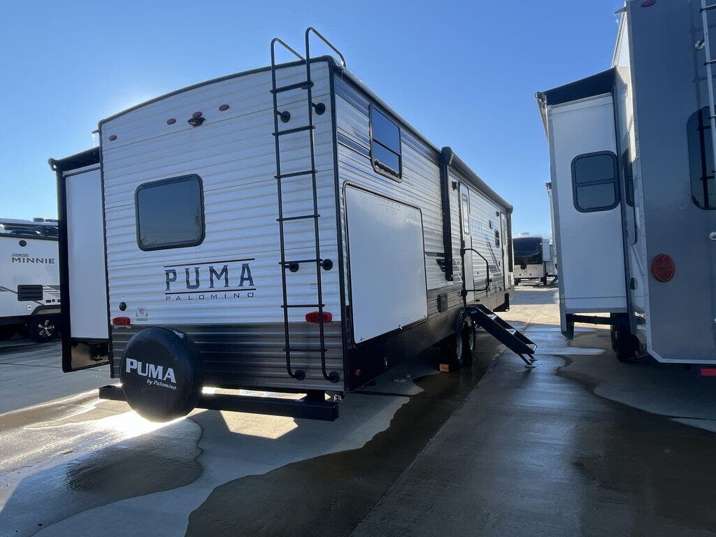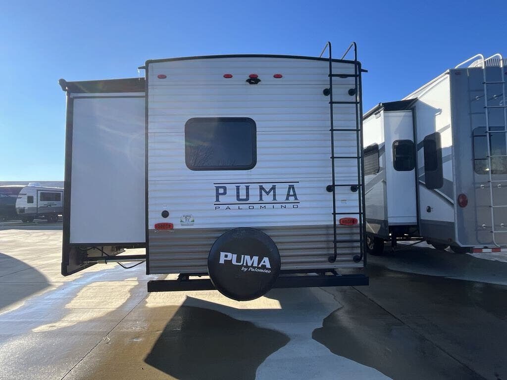 If you're looking for family-fun adventure then you need one of these Palomino Puma fifth wheels or travel trailers! They are built rugged, easy to tow, and jam packed with features. The Darco wrapped underbelly will protect your units vitals through every season and the AlphaPly roofing membrane covers it. They also have super lube axles and a powder coated frame. Their luxurious interiors feature a spice rack and built-in knife rack in the kitchen, USB charging ports to keep your electronics at 100%, and high density foam mattresses for a good night's rest. The required Advantage package comes with night roller shades for privacy at night, two outside speakers to crank up the tunes while you play cornhole, and an outside shower to keep the dirt outside where it belongs, plus so much more!