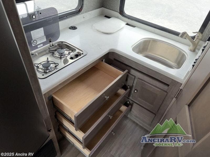 With any Phoenix TRX Class B+ gas motorhome by Phoenix USA, you will love the aerodynamic body styling with curved walls and roof, the smooth gel-coat fiberglass exterior, the Top Grade 3 Diamond shield installed on critical areas on the painted surfaces for protection, and the frameless automotive style windows. The Ford cab floor has added double heat and sound insulation for a quieter ride, and each coach has front end alignment, plus the One Key single key system for the coach and storage compartments. The interior offers a power tower pop-up electrical outlet and USB ports beside the kitchen sink to keep everything charged, shaker cabinet doors and drawer fronts, solid wood table tops and counter extension, plus luxury vinyl flooring for style and easy care. Make your selection today, and start traveling in style and comfort!