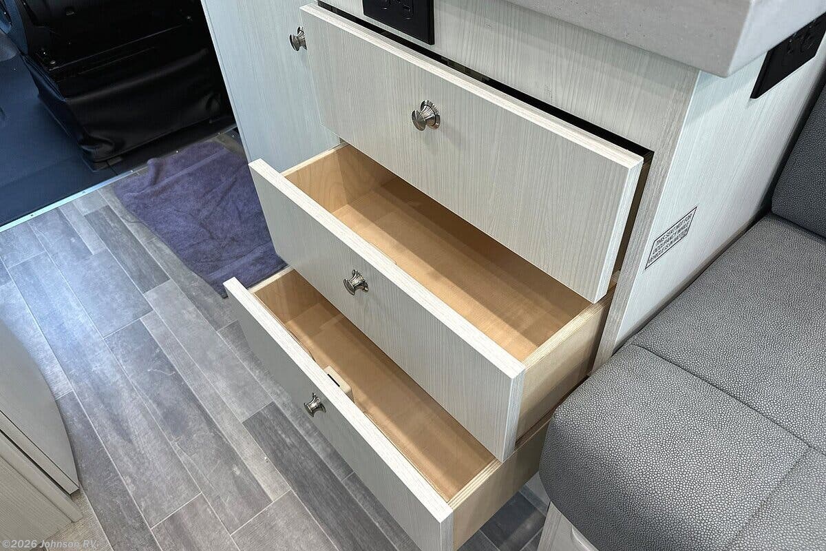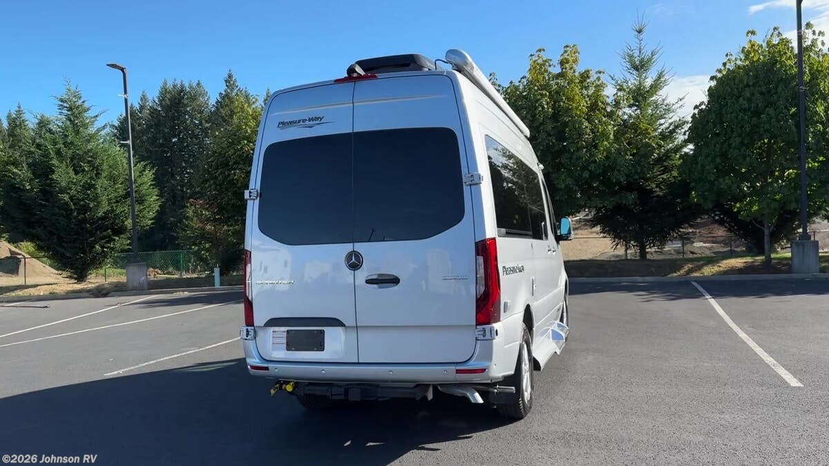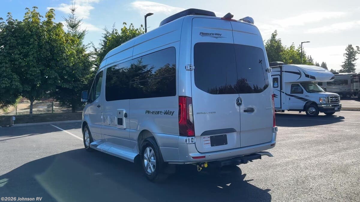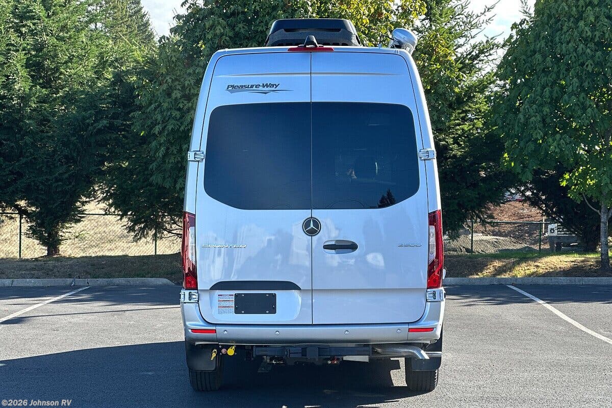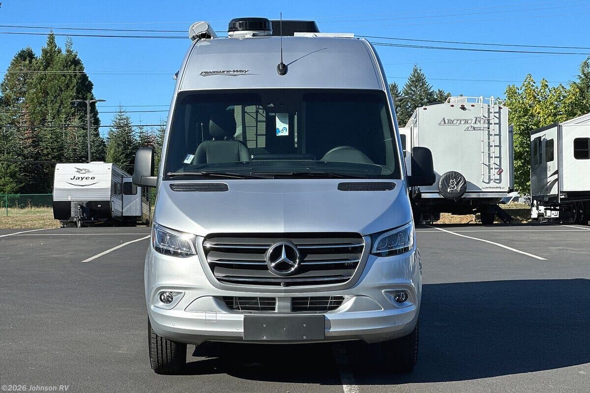Introducing the 2024 Pleasure-Way Ascent TS, an expertly crafted Class B RV known for its sleek design and exceptional functionality. Built on the reliable Mercedes-Benz Sprinter 2500 chassis with a 144-inch wheelbase, this RV is powered by a 4-cylinder high-output diesel engine, delivering 211 horsepower. Its robust capabilities are further supported by a 9G-Tronic automatic transmission, four-wheel disc brakes with ABS, and adaptive stability and traction control systems. For convenience and safety, the Pleasure-Way Ascent TS is equipped with a suite of advanced features, including: - 4 seat belts for added security - Active Brake Assist and Lane Keeping Assist - Driver and passenger airbags - Attention and Blind Spot Assist - Crosswind and Distronic Active Distance Assist - LED headlamps and multifunction steering wheel - Rear view camera system and power side-mirrors The cab area boasts: - Power door locks and windows - Ultraleather, power, memory, swivel, and heated seats - MBUX 10-inch touchscreen multimedia system with navigation - Smartphone and Bluetooth streaming connectivity Inside the living space, enjoy comfort and elegance with: - Fiamma Power Awning with LED lights and fiberglass running boards - Vinyl flooring and acoustic wall paneling - 75-inch high ceiling with soft-touch vinyl headliner - Frameless awning style windows with blackout privacy shades For dining needs, this RV includes: - Lagun swivel table with dual mount positions - Corian solid surface countertop and undermount stainless steel sink - 12v 3.2cf refrigerator freezer and portable induction cooktop - Microwave convection oven and outdoor LP quick connect Entertainment and electronics are seamlessly integrated with: - Dual 10-inch touchscreen control panels - USB-A and USB-C charging ports - 24-inch LED Smart TV on a swing mount and Bose Bluetooth soundbar Sleeping arrangements are flexible, featuring: - A power sofa that converts to single beds (24x70, 24x72) or a queen bed (70x72) The enclosed private bathroom offers: - A mirror, shower curtain, and Moen handheld showerhead - Ceramic bowl foot flush toilet Reliable mechanical and utility systems include: - LP tank electric shutoff switch and battery disconnect - 30-Amp SmartPlug service cord and 2.5kW Onan QG 2500i LP generator - 600Ah Eco-Ion Earth Smart Lithium batteries - Optional Go Power! Solar Package - Truma Aventa Eco AC unit and Truma VarioHeat furnace With its foil-face fiberglass roof insulation, the Pleasure-Way Ascent TS delivers superior comfort and efficiency, making it ideal for any adventure.