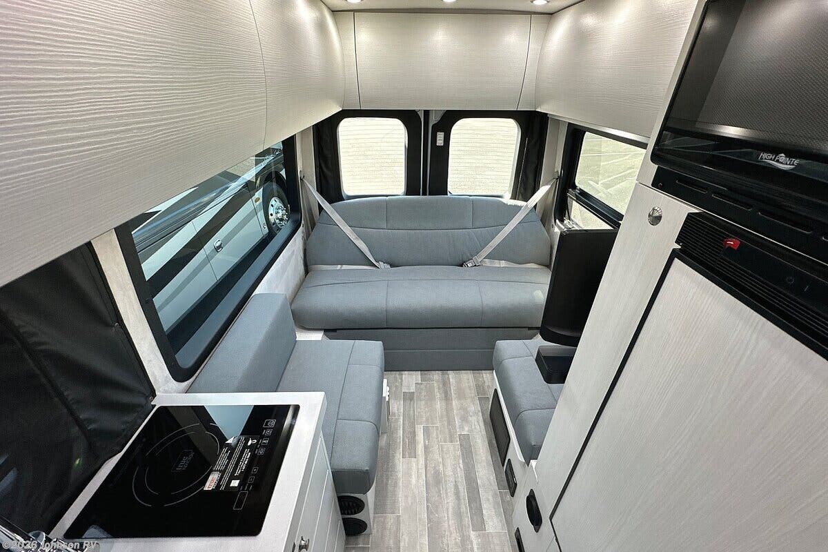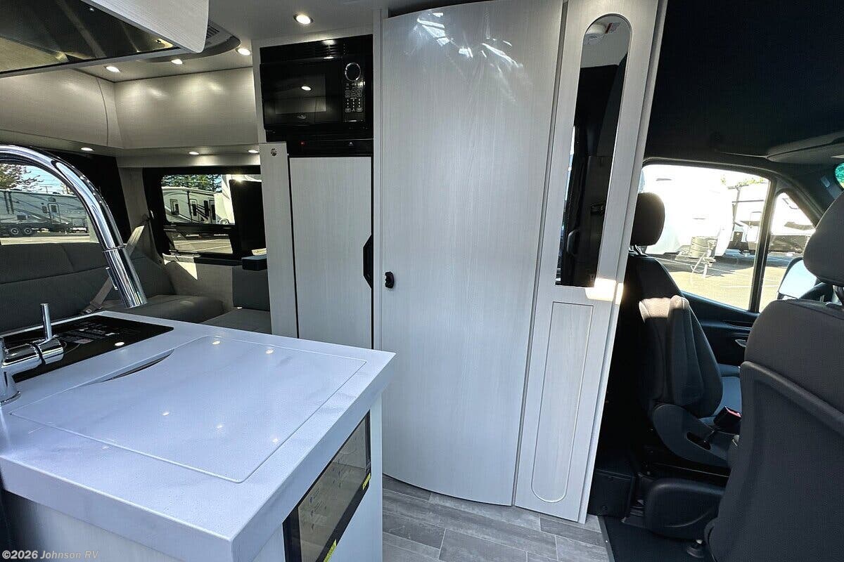 Features Include: 144-inch Wheelbase, 211 HP, 4 Seat Belts, Active Brake Assist, Attention Assist, Blind Spot Assist, Crosswind Assist, Drive Away Assist, LED Headlamps, Locking Fuel Fill, Keyless Ignition, Ultraleather, Power, Memory, Swivel, Heated Seats, Lumbar Support, AC and Heat, Power Side-Mirrors, LED Porch Light, Vinyl Flooring, 75-inch High Ceiling, Pull-Out Pantry, Corian Sink Cover, Induction Cooktop, Microwave Oven, Power Sofa, Enclosed Wet Bath, Mirror, Shower Curtain