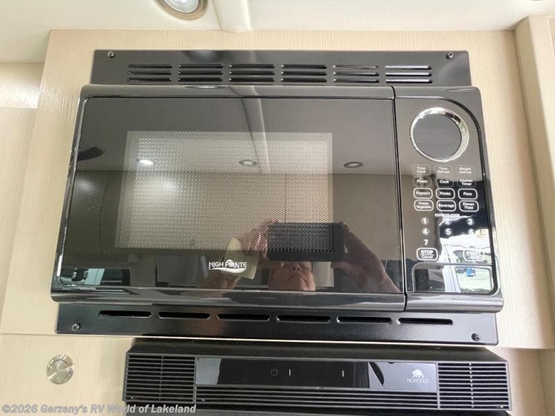 This Plateau Class B diesel motorhome features two dining locations for you to enjoy your delicious meals at thanks to the innovative Lagun table. There is also an array of storage options between the overhead cabinets, the soft-close drawers, and the pull-out pantry. If you have to get a little bit of work done while on the road, then you will love the front lounge workstation with a 120V power outlet, USB charging ports, and an extended Corian countertop with a privacy shade and storage cabinets too. The microwave makes it easy for you to pop a bag of popcorn and enjoy eating it while you relax on the power sofa with memory foam sofa cushions!