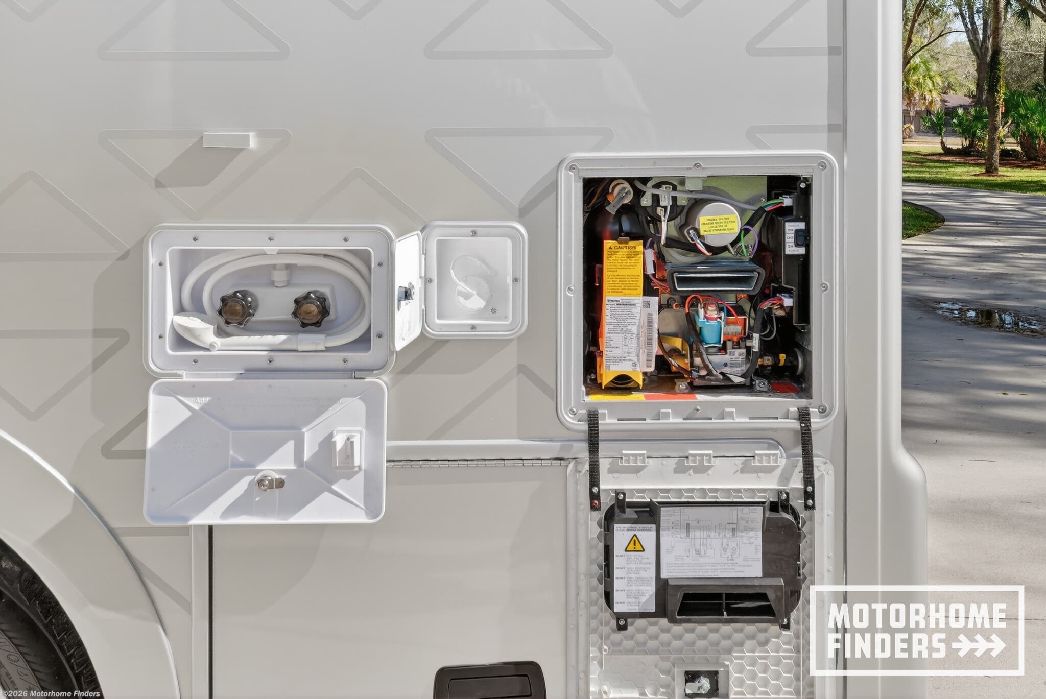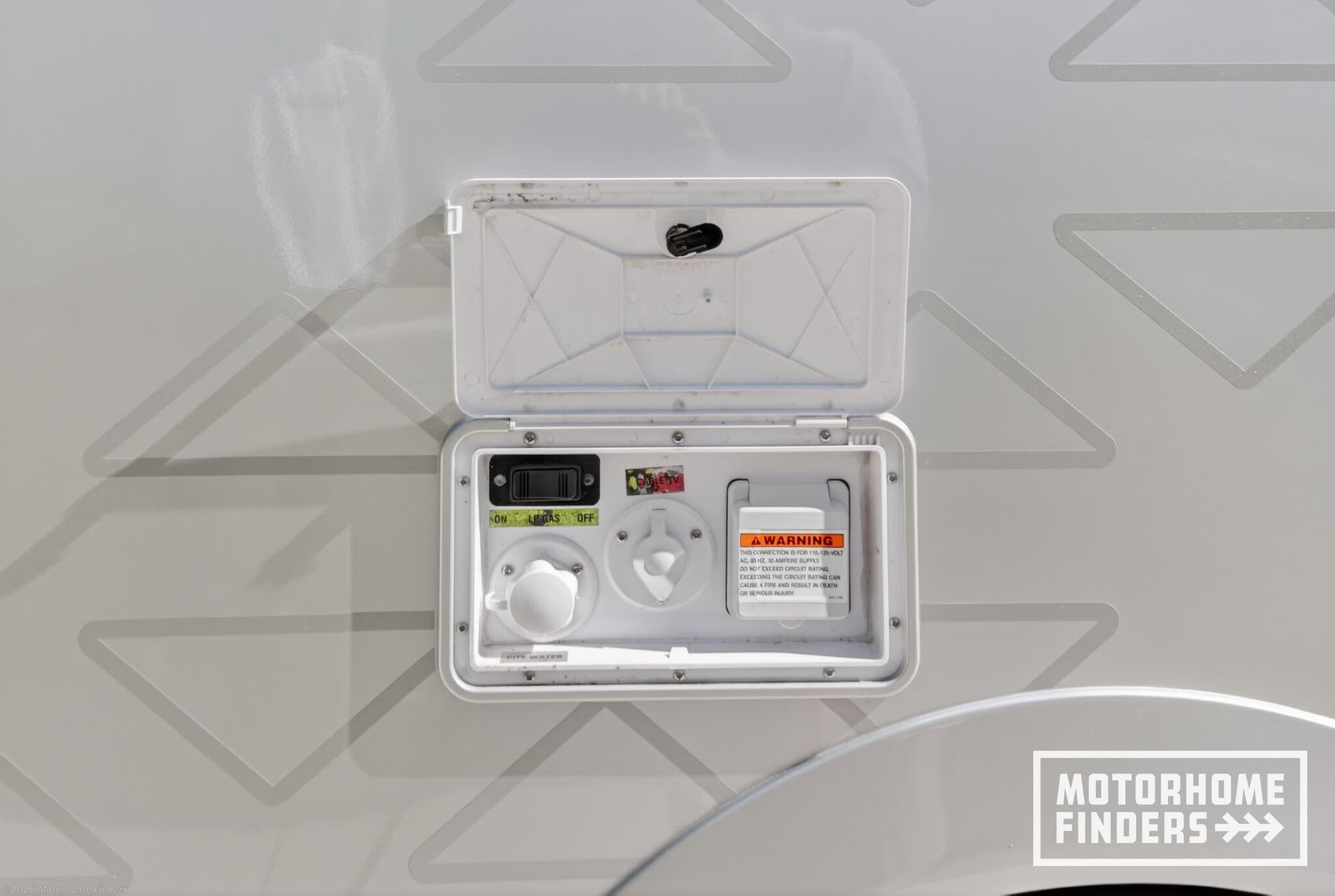 Backup Camera, Fire Extinguisher, GPS Navigation, Propane, Smoke Detector, TV -