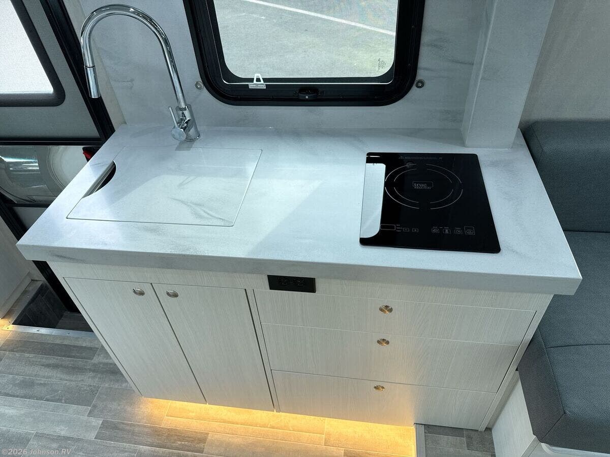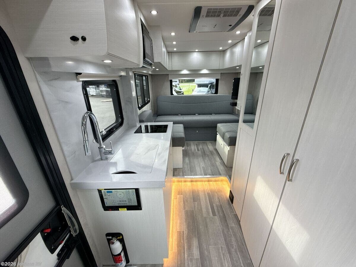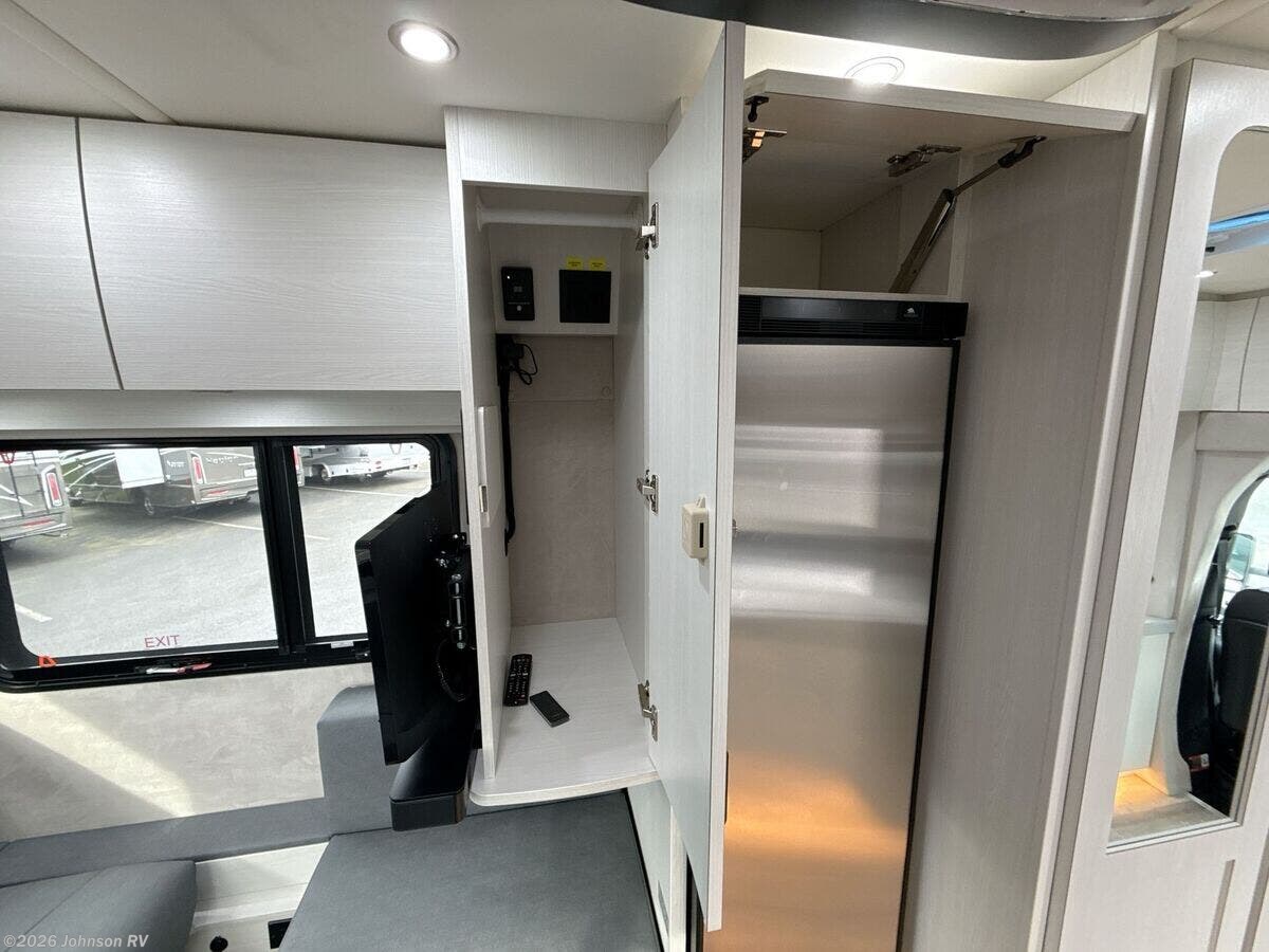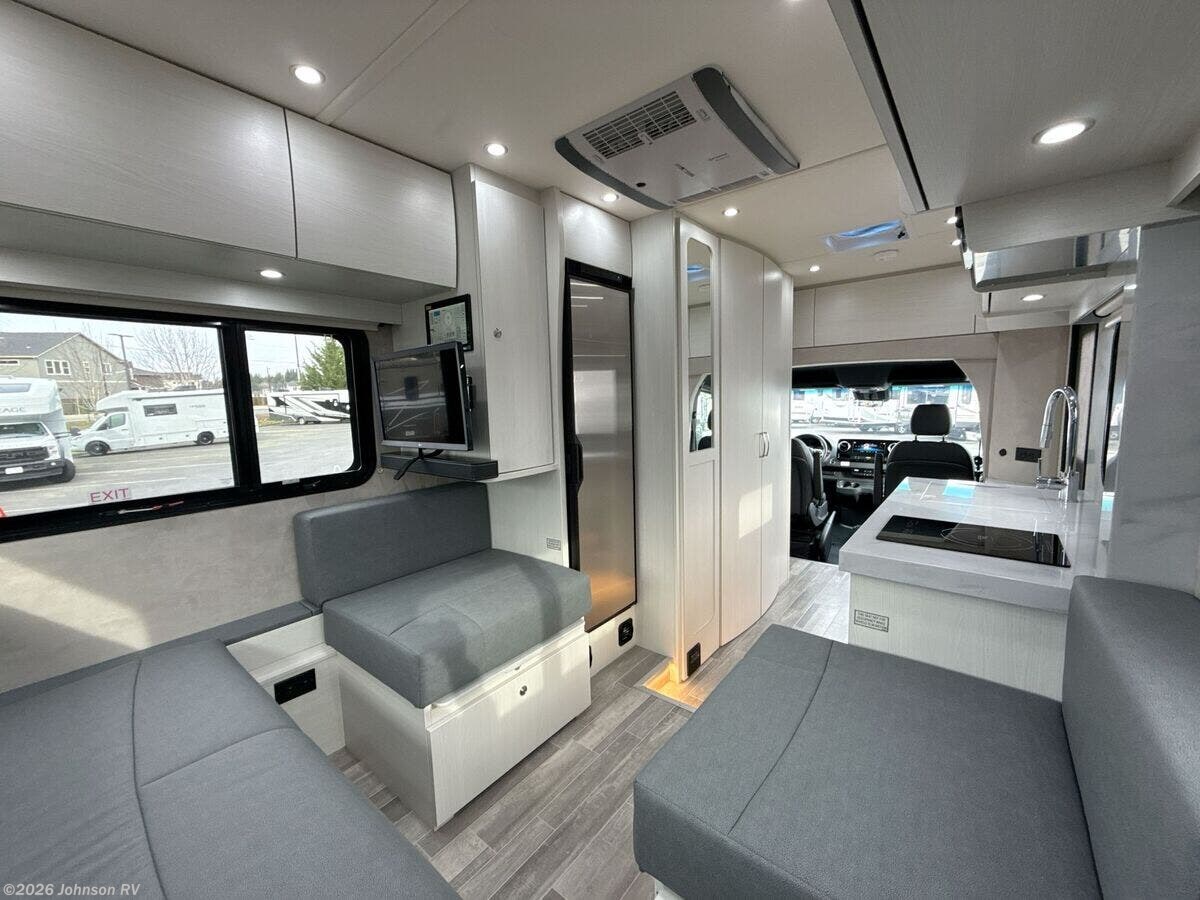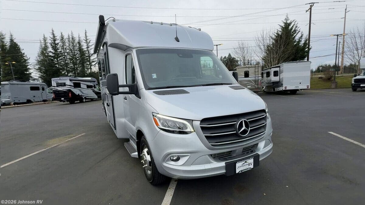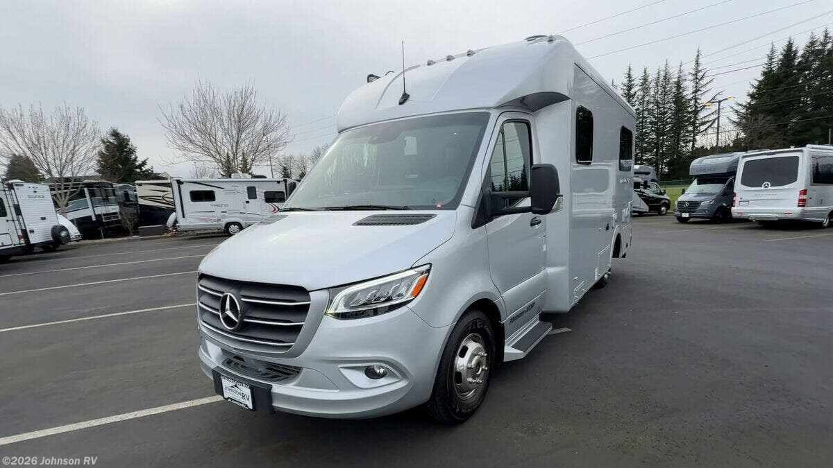 2024 Pleasure-Way Plateau XLTS Mercedes-Benz Welcome to the luxury and comfort of the 2024 Pleasure-Way Plateau XLTS Mercedes-Benz, a Class B RV designed to elevate your travel experience. Built on the durable Mercedes-Benz Sprinter 3500 chassis, this RV combines elegance with functionality, making it perfect for both short getaways and extended excursions. **Performance and Chassis** - Powered by a robust 4-Cylinder OM 654 HO Diesel engine - Features a 9G-Tronic transmission - Equipped with 4-wheel disc brakes and ABS for enhanced safety - Adaptive Electronic Stability and Traction control for smooth handling - 4,220-lb hitch with a 7-pin connector for towing **Entertainment and Connectivity** - 24-inch Smart LED TV with a swing-out mount for versatile viewing - Bose soundbar with Bluetooth connectivity - Winegard Rayzar Automatic HDTV antenna for reliable reception - Cable TV hookup and multiple USB-A and USB-C charging ports **Interior Comforts** - Ambient LED accent lighting throughout - Blackout roller shades with magnetic catches for privacy - Folding privacy/sun shades for windshield and cab door windows - Inflatable air bed fitting over cab seats for added sleeping space - Lagun table mount in the front living area, perfect for dining or work - High-quality Blum cabinet hinges and door stays for durable storage solutions - Recessed LED lighting under cabinets and along the roof - Vinyl soft-touch headliner and premium vinyl flooring for a plush feel **Kitchen and Galley Amenities** - 12V, 5.3 cu.ft. Norcold refrigerator/freezer - 1-burner induction cooktop and microwave for convenient meal preparation - Large undermount stainless steel sink with Corian cover - Corian solid surface countertops with backsplash - Full-extension drawers with soft-close features **Bathroom Experience** - Enclosed dry bathroom with separate shower - 32-inch Corian-lined corner shower with accent lighting - Stainless steel sink with a single-handle faucet - Residential-style ceramic bowl toilet with a foot flush - Ample storage with a large vanity and dual medicine cabinets **Advanced Electrical Systems** - Dual 10-inch touchscreen control panels for intuitive operation - 600Ah Eco-Ion Earth Smart Lithium (LiFePO4) coach batteries - 500-Watt Go Power! solar package with MPPT controller for eco-friendly power - Onboard 2.5 KW Onan QG 2500i LP generator with automatic starting capabilities - Multiplex wiring and dimmable LED lighting for efficiency **Exterior Features** - Fiamma power awning with integrated LED lights for outdoor enjoyment - Frameless awning style windows and full-size entry door with a screen door - Passenger and driver side storage compartments with locking doors - Exterior shower with handheld wand for convenience **Climate Control and Plumbing** - Truma VarioHeat 11,500 BTU Furnace and Truma Aventa Eco 13,500 BTU air conditioner for year-round comfort - Truma AquaGo comfort plus instant water heater - Dual monitoring of LP, fresh, grey, and black water tanks **Rear Seating Area** - Power sofa with two seat belts and memory foam cushions wrapped in ultraleather fabric - Lagun table mount system with a 360-degree swivel tabletop - Cup holders on both driver and passenger sides for added convenience With its luxurious features and innovative design, the 2024 Pleasure-Way Plateau XLTS offers both style and functionality, ideal for travelers seeking a premium RV experience. Enjoy your adventures with the confidence and reliability provided by this well-crafted vehicle. ?????