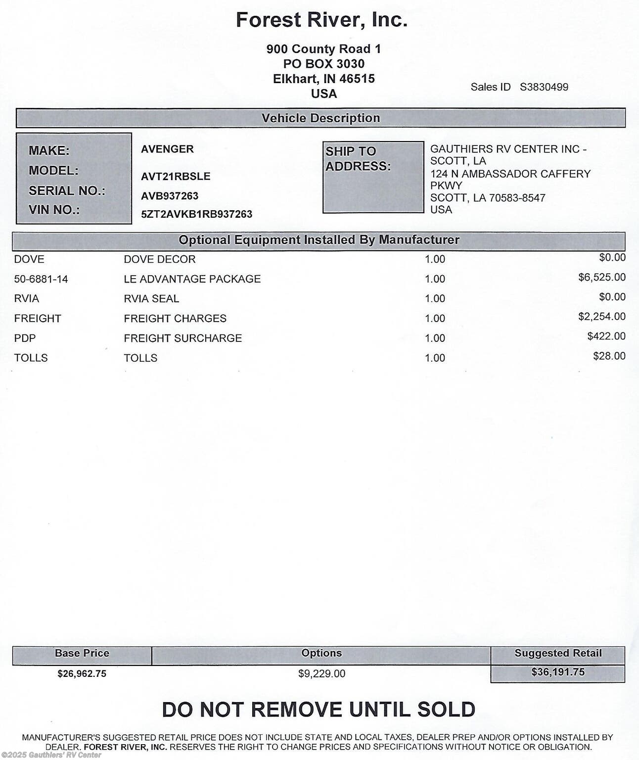 Looking to buy a 2024 Prime Time Avenger LE Travel Trailer RV?