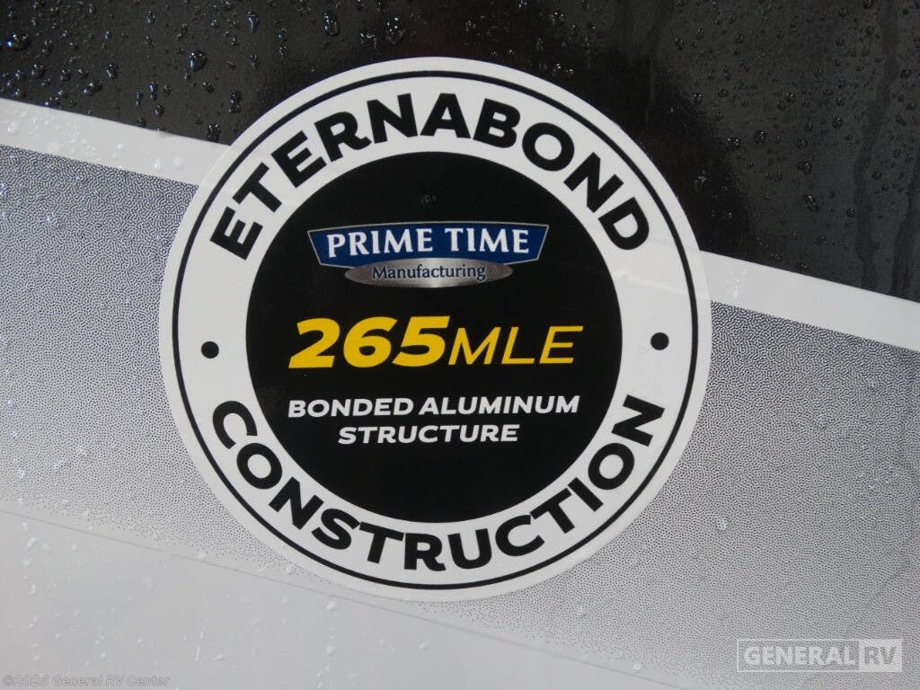 ## Prime Time Crusader half-ton fifth wheel 265MLE highlights - Outside Kitchen - Queen Bed - Kitchen Hutch - Three Burner Cooktop This is the perfect couple's trailer for all your outdoor excursions. The front private bedroom includes a queen bed, wardrobe slide, and dual nightstands to keep your clothes tidy. You can relax each day on the theater seating within the slide out, and the TV is in perfect viewing for movie night. The rear kitchen includes ample counter space, a three burner cooktop, plus a 16 cu. ft. refrigerator to keep food fresh. There is even a walk-in pantry for snacks! A booth dinette will be perfect for dining or to let an extra guests sleep over. And don't worry about leaving your RV in the middle of the night to use the restroom; this model includes a full bath just like at home! The Crusader fifth wheels by Prime Time RV are a step above the rest and it's not hard to see why. Each model has been constructed to last with its exclusive Eternabond construction, a one-piece TPO roof, and high gloss gel coat fiberglass exterior. The auto leveling system and the comprehensive universal docking center will have you set up to camp in no-time, and there is a convenient bottle opener and Doggy D-ring for your furry companions. You will fall in love with the interior that includes solid surface countertops, designer Carefree linoleum with Scotchgard technology, hardwood cabinet doors, and many more residential comforts. The Crusader also comes standard with dual "Whisper Quiet" ducted A/C's, a 35,000 BTU high capacity gas furnace, and the Extreme Thermal Package Plus, making your camping season year-around!