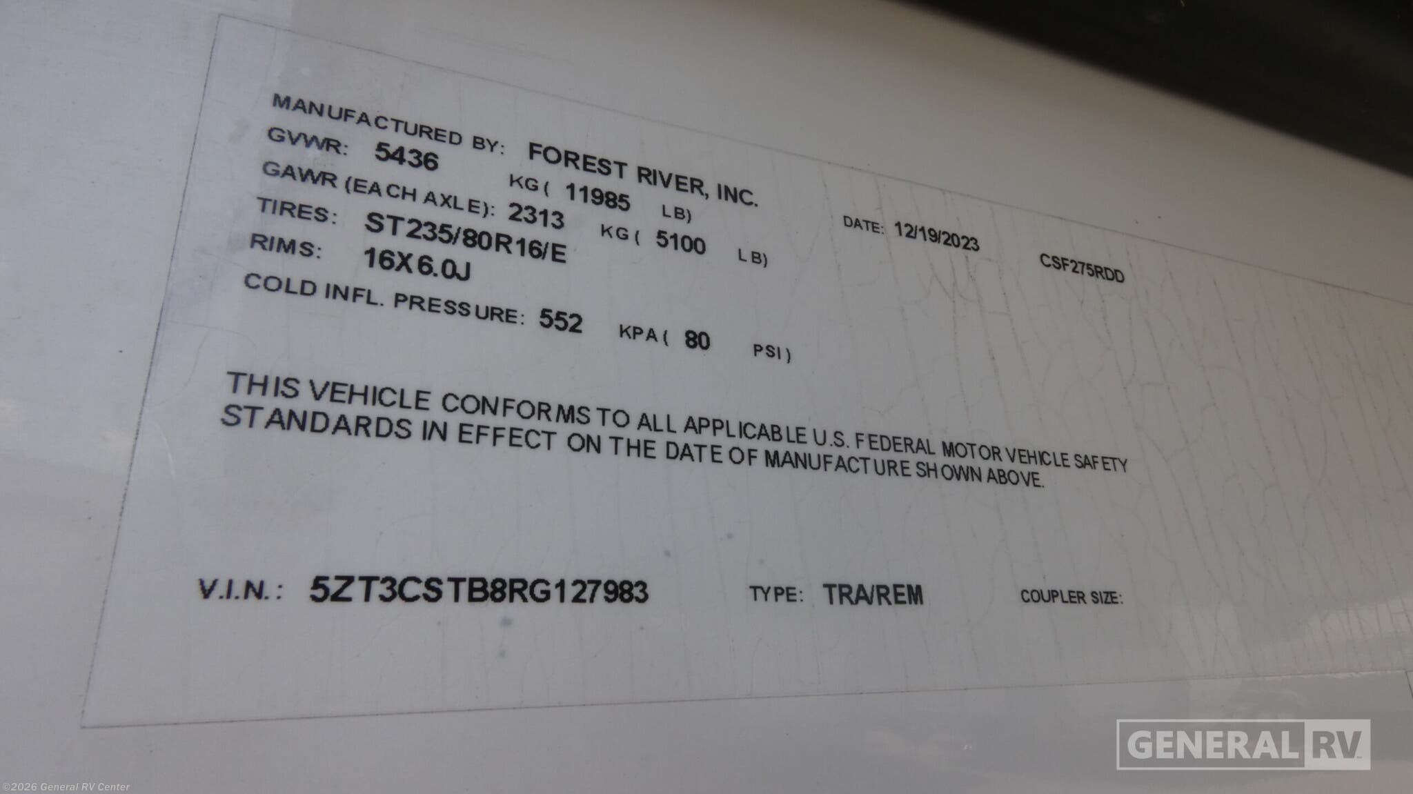 - VIN5ZT3CSTB8RG127983