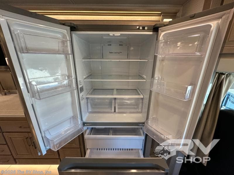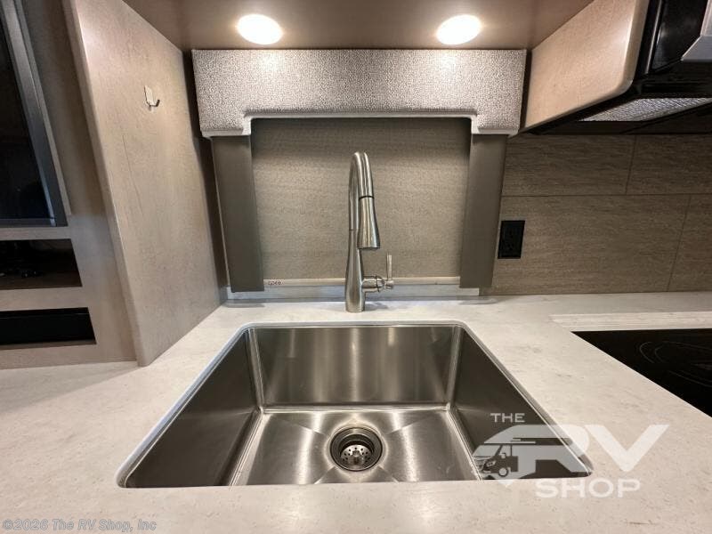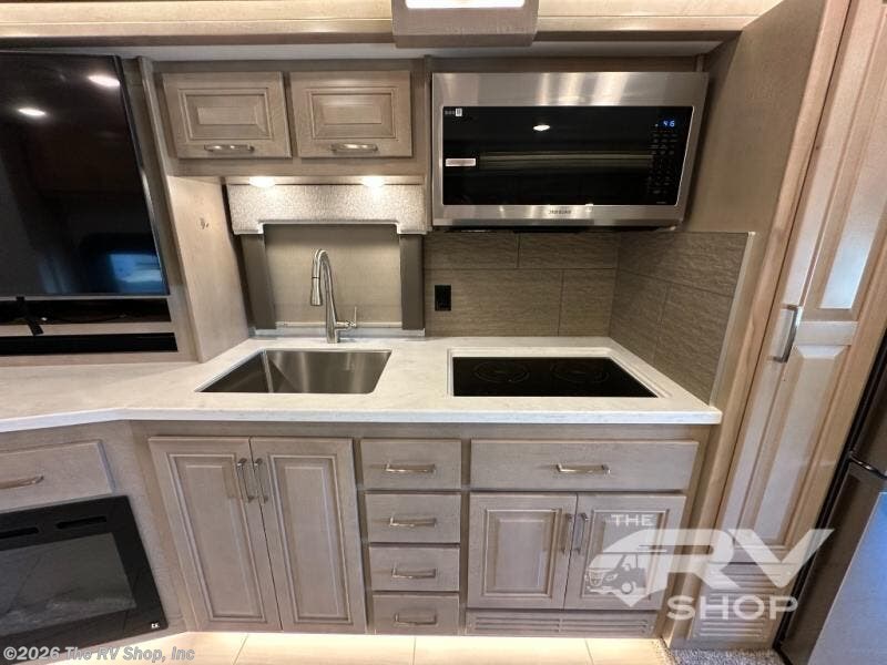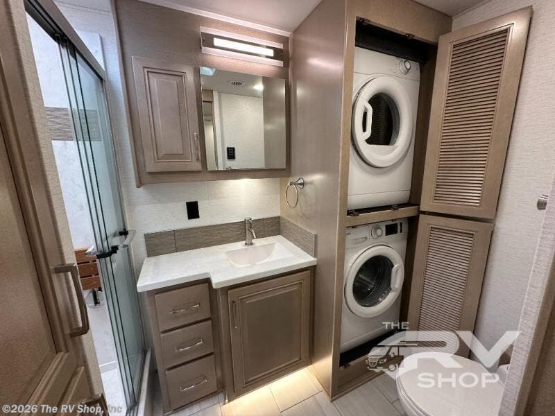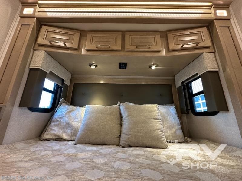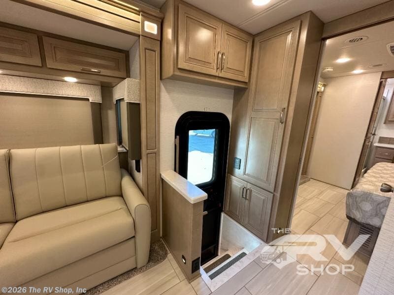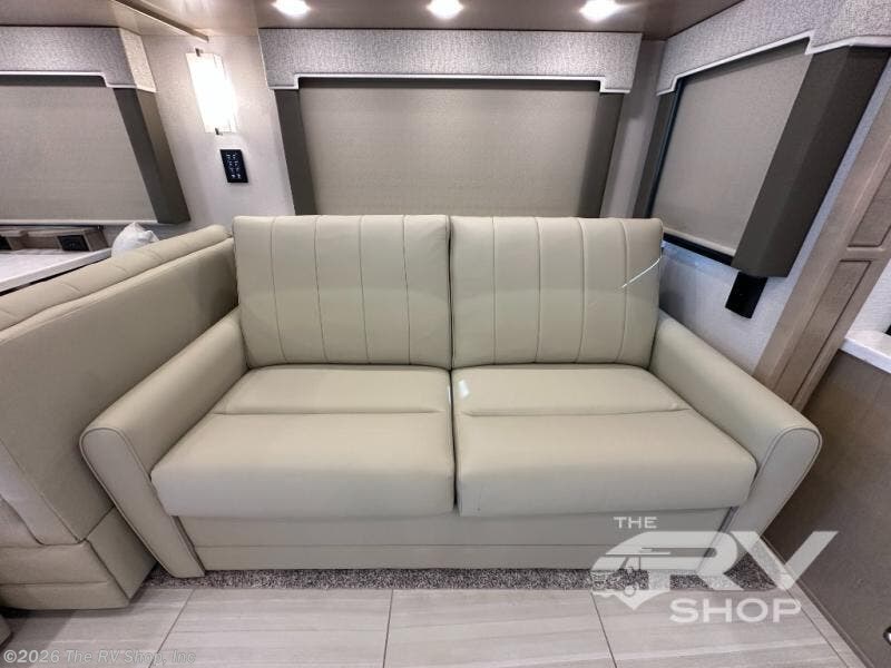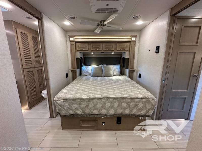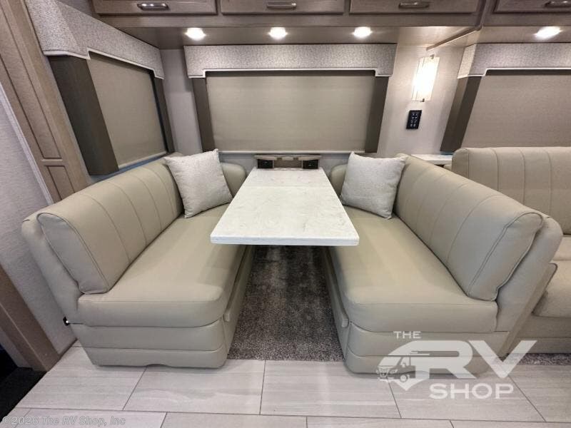 This Explorer Super C diesel motorhome is an advantageous coach that has all of the essentials and then some! With modern appliances and stylish décor, this coach stands out from the rest of the competition. The kitchen is packed full with an 18-cubic foot French door refrigerator, stainless steel convection microwave, and two-burner induction cooktop, and the full bathroom inside of the master suite has a shower skylight and LED vanity light. Out in the main living area, you will find a sofa sleeper so that you can relax at the end of a long and exhausting day, and you are also going to find a booth dinette right next to the sofa so that you can easily sit down with a hot meal each night.