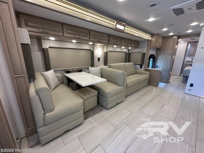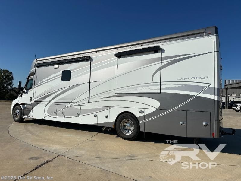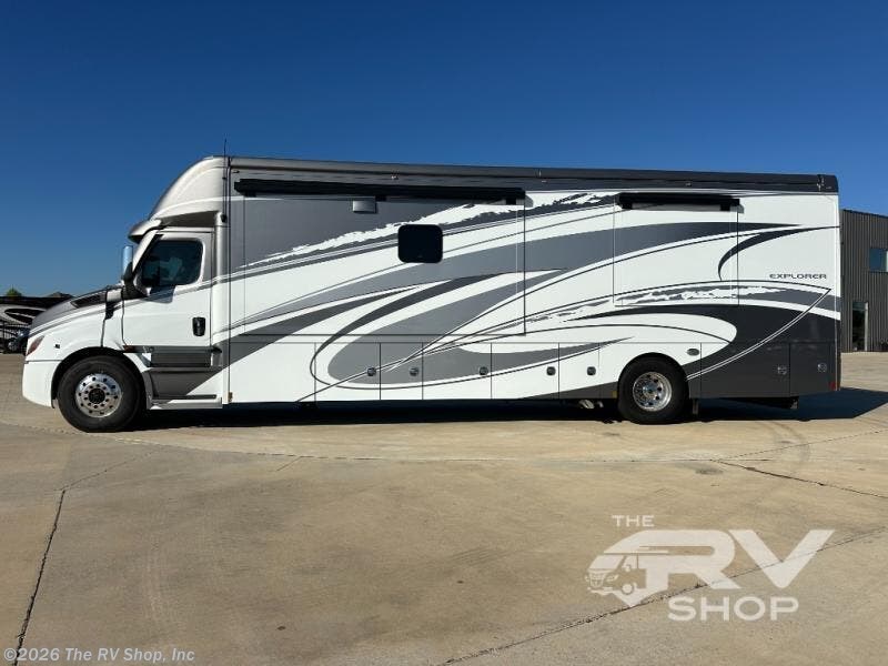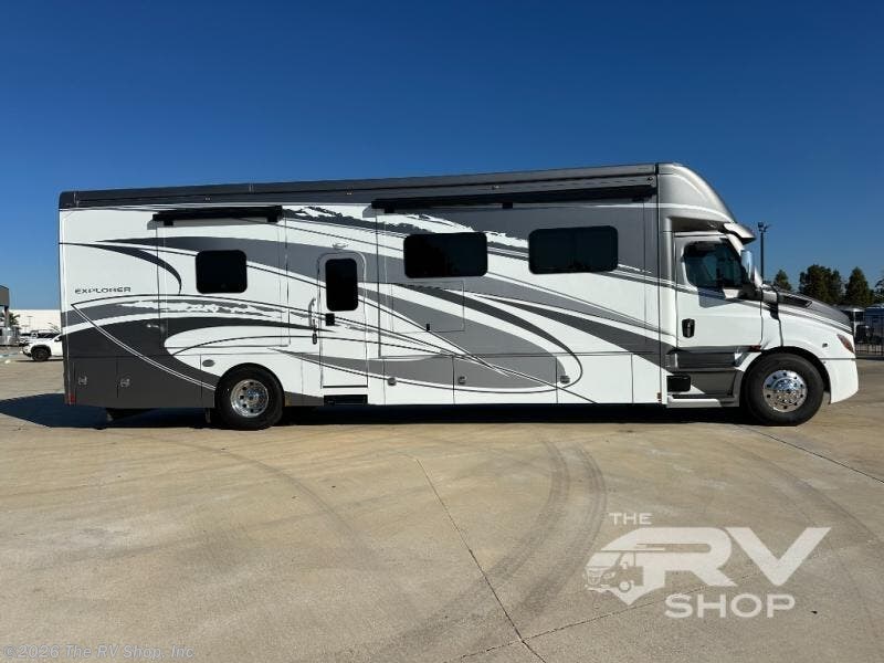 Extreme luxury, extreme purpose, and extreme durability is what you will find in each one of these Renegade Explorer Super C diesel motorhomes! They are more advanced than ever with a Freightliner Cascadia 116 chassis with an Allison TRV4000 transmission, a Detroit DD13 engine, and 525HP. The spacious interior is beautifully designed with tile floors, full maple, hardwood residential style cabinets, tile backsplashes, and ultra soft touch vinyl furniture upholstery. A multiplex system comes with Bluetooth app control so you can use it at the touch of a finger, and the Girard 2-Stage lateral arm rooftop awning with LED lights will protect you rain or shine and night or day. The exterior also has seven full body paint treatment colors to choose from and a 4 point automatic hydraulic leveling system. Start driving in style today!