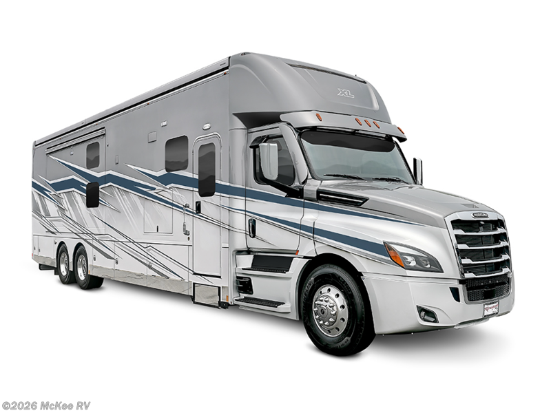 A legend of luxury is what you will find in each one of these Renegade XL Super C diesel motorhomes! Their ultra sleek interiors have been thoughtfully designed with simplified luxury and many unparalleled features like Cambria Quartz countertops throughout and Mastrotto Italian hide leather furniture. The 4-point automatic hydraulic leveling system makes life easier, the multiplex system with color touch panel and Bluetooth app control lets you adjust things with the touch of a finger, and the Aqua-Hot 600D hydronic water and zone heating system provides hot water where ever you go. With seven Colorway paint options and three interior decor options, you can be sure to have the one that fits your style. You will appreciate the electrical systems with dual 3,000W True Sine wave inverters, a 12.5kW Onan quiet diesel generator, two 330 ah AGM house batteries, and more features to keep you powered up. Head outdoors to find dual roof-mounted Girard awnings, and steel storage compartments to keep your gear secure. And we haven't even touched on the cab conveniences, like the digital dash cluster and 10" infotainment system, the 360 degree camera system and upgraded cab sound system, plus the Freightliner Safety Assurance Package with collision mitigation, lane departure warning, and more!