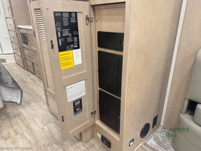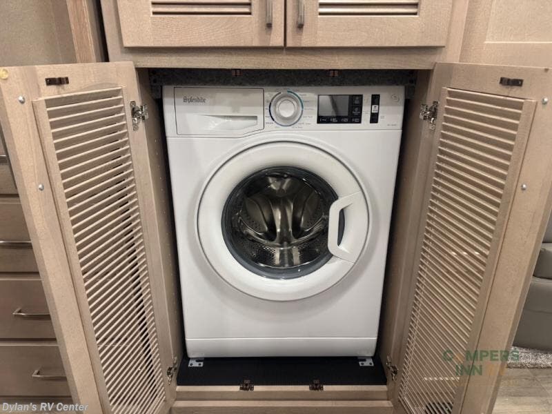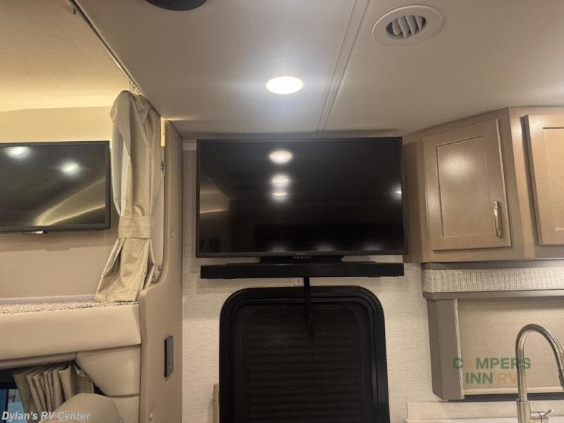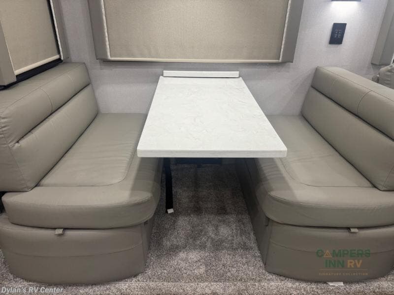 Start traveling the right way with this motorhome! There is plenty of entertainment throughout the inside and outside between the exterior entertainment center with a 32" Smart LED TV, a 39" Smart LED TV in the living area, and a 32" Smart LED TV in the private bedroom. Across from the half bathroom is an area pre-wired and plumbed for an optional washer and dryer so you can have clean clothes for your entire trip if you choose. The master suite has a 72" x 74" king bed to lay your head on at night and access to the full rear bathroom which has a radius shower with a skylight above for natural lighting and overhead cabinets to store your toiletries. The sofa sleeper and booth dinette offer comfortable places to enjoy meals, socialize, and even transform into sleeping spaces! Each one of these Renegade Valencia Super C diesel motorhomes offer ultimate comfort and durable construction! They have a Freightliner S2RV chassis for a refined ride with responsive handling, as well as a powerful Cummins ISB 360 HP engine with a 3,000MH Alison transmission and a single 100 gallon fuel tank to get you farther. A few of the beautifully designed interior features are the solid hardwood cabinets, the polished solid surface countertops, and the stainless-steel appliances. Travel in comfort and style with the modern furniture and abundant storage areas like the exterior steel storage compartments with carpeted lining. You will also appreciate the four point automatic hydraulic leveling system and the multiplex system with Bluetooth app control. With six Colorway paint options and three interior décor options, you can be sure to find the right one for you!