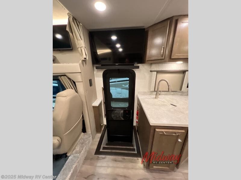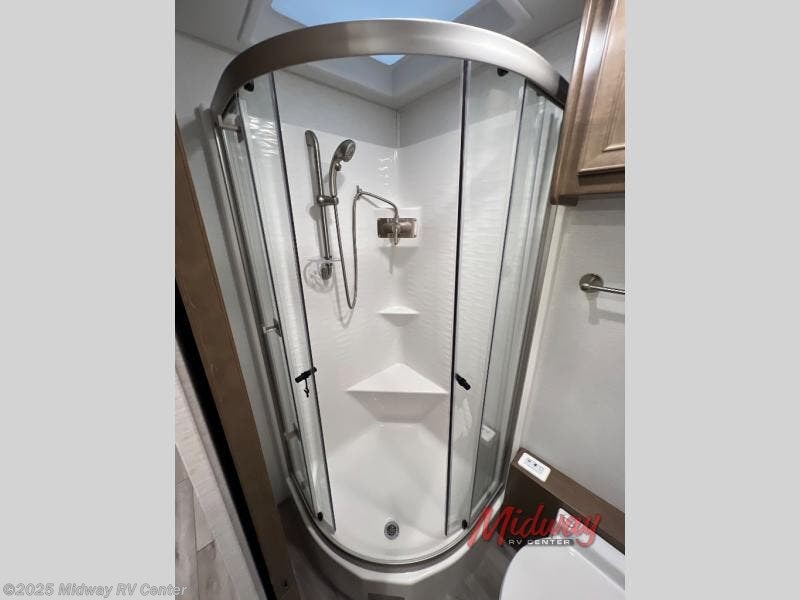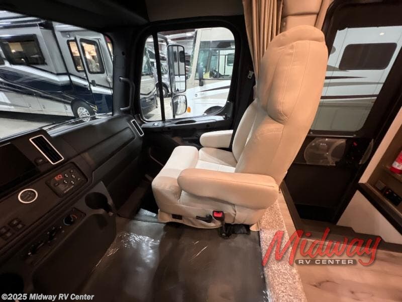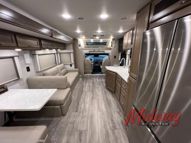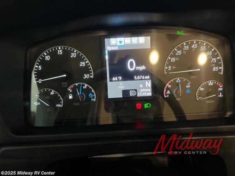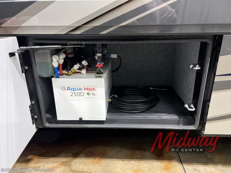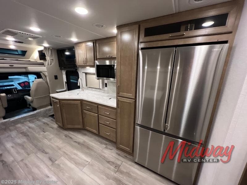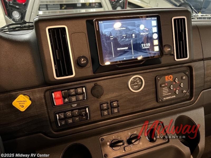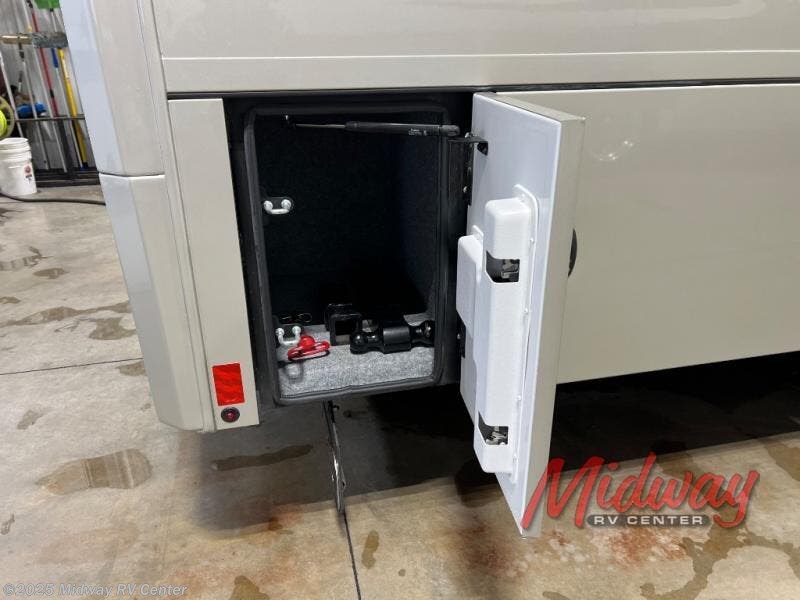 Whether you travel while you work or enjoy long-trips in your RV, this coach provides all the luxury, flexibility and comfort you could want! The main living and kitchen area is spacious with a furniture slide which includes a booth dinette and a slide-a-bed sofa which both offer sleeping space when needed for guests. The cook will love using the stainless steel convection microwave oven and the induction cooktop when making meals, and the French door residential refrigerator will hold lots of cold food. The separated bathroom allows two people to get ready at once, and the king bed slide gives you more floor space in the bedroom to get to the closets and dresser. You will find a 32" 4K Smart LED TV in the bedroom to watch before bedtime, and the exterior offers a 32" LED TV to watch the big game while relaxing under the electric awning with LED lights. And you might like to add the washer/dryer option to the prepped closet to keep everything clean while on the road.